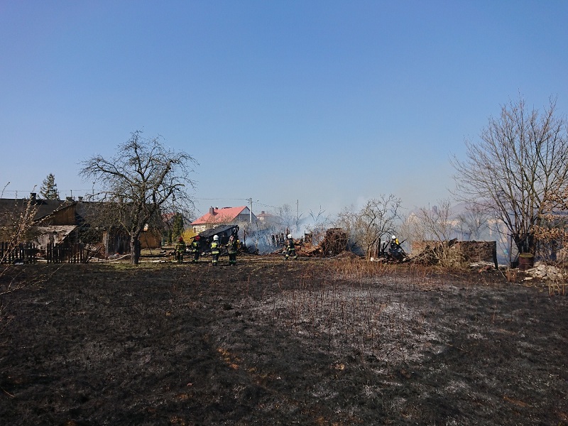 Po przybyciu na miejsce akcji stwierdzono, że palą się 3 drewniane i 1 murowany budynek gospodarczy oraz trawa na powierzchni 0,5 ha. Istniało zagrożenie rozprzestrzenienie się pożaru na budynek mieszkalny. Działania ratowników polegały na zabezpieczeniu miejsca zdarzenia, oraz ugaszeniu pożaru, po czym przystąpiono do rozbiórki obiektów w celu dokładnego przelania ich wodą.