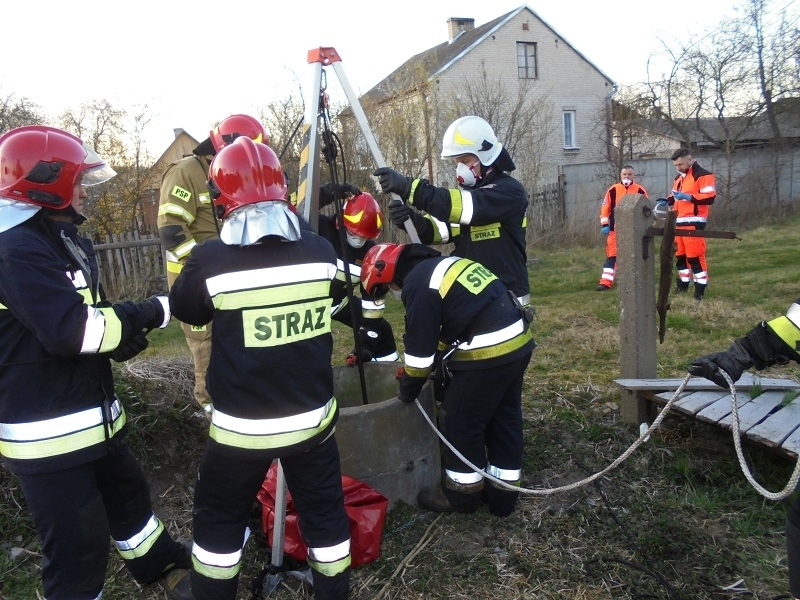 Poszkodowana osoba nie przejawiała oznak życia i nie reagowała na nawoływania. Na miejscu zdarzenia obecny był patrol Policji oraz ZRM. Działania zastępów polegały na zabezpieczeniu miejsca zdarzenia, następnie po sprawieniu trójnogu ratowniczego wprowadzono do wewnątrz studni ratownika w ubraniu typu Tychem wyposażonego w aparat ochrony dróg oddechowych w celu wydobycia poszkodowanej osoby. Po odpowiednim zabezpieczeniu poszkodowany został ewakuowany ze studni na zewnątrz i przekazany Zespołowi Ratownictwa Medycznego którego lekarz stwierdził zgon mężczyzny. W trakcie działań monitorowano powietrze w studni przy użyciu mierników. Następnie zabezpieczono doraźnie studnię.