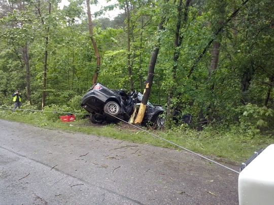 Jak wynika ze wstępnych ustaleń policji, 28-letni mężczyzna kierujący pojazdem osobowym, na prostym odcinku drogi, z niewyjaśnionych dotąd przyczyn zjechał z drogi i uderzył w przydrożne drzewo. Badanie alkomatem wykazało, że we krwi kierowcy jest około 1,5 promila alkoholu. Autem podróżowały 3 osoby. Na miejscu zginął 37-letni pasażer. Kierowca oraz drugi pasażer trafili do szpitala z ciężkimi obrażeniami ciała. Trwają czynności wyjaśniające.
