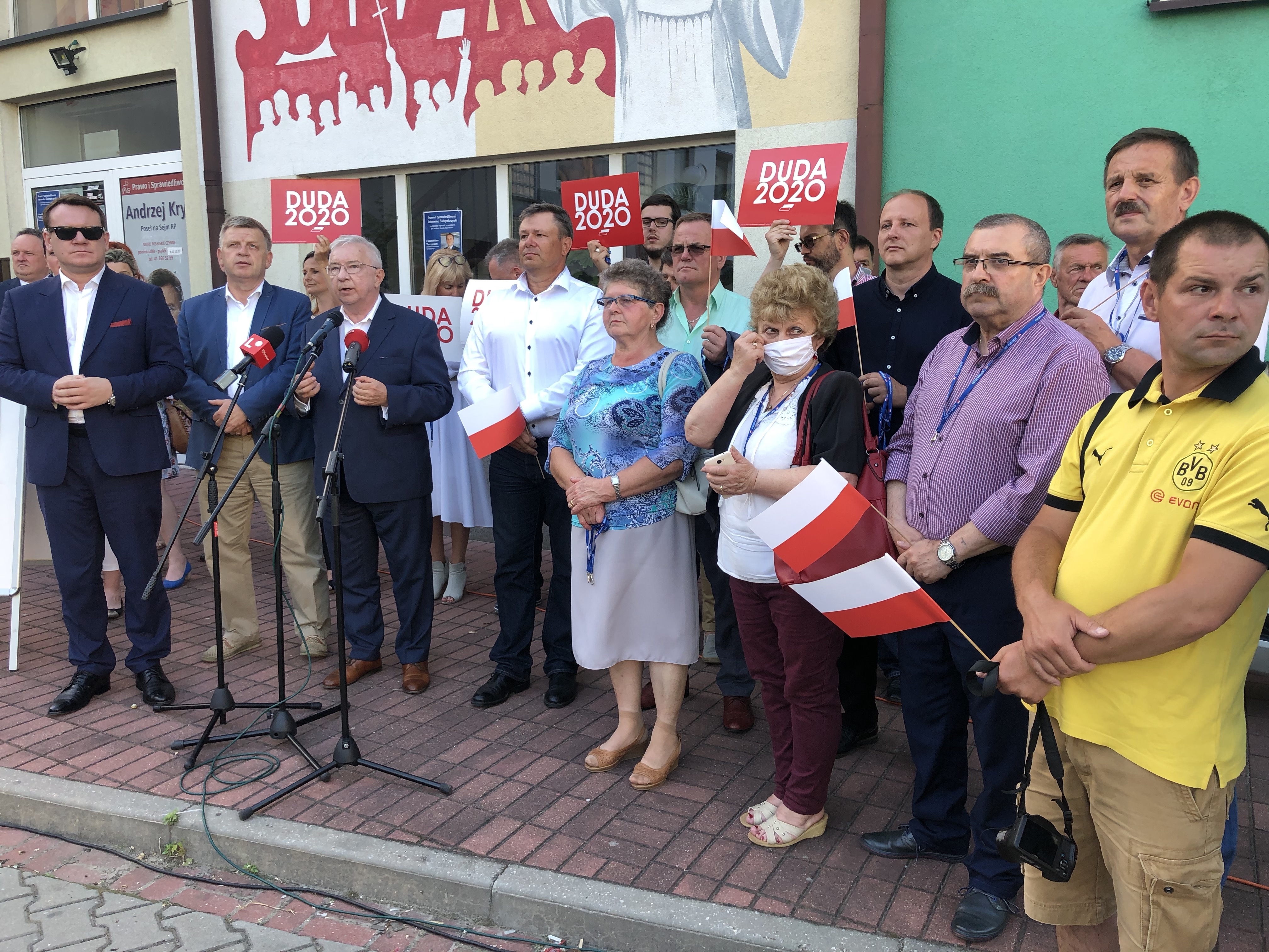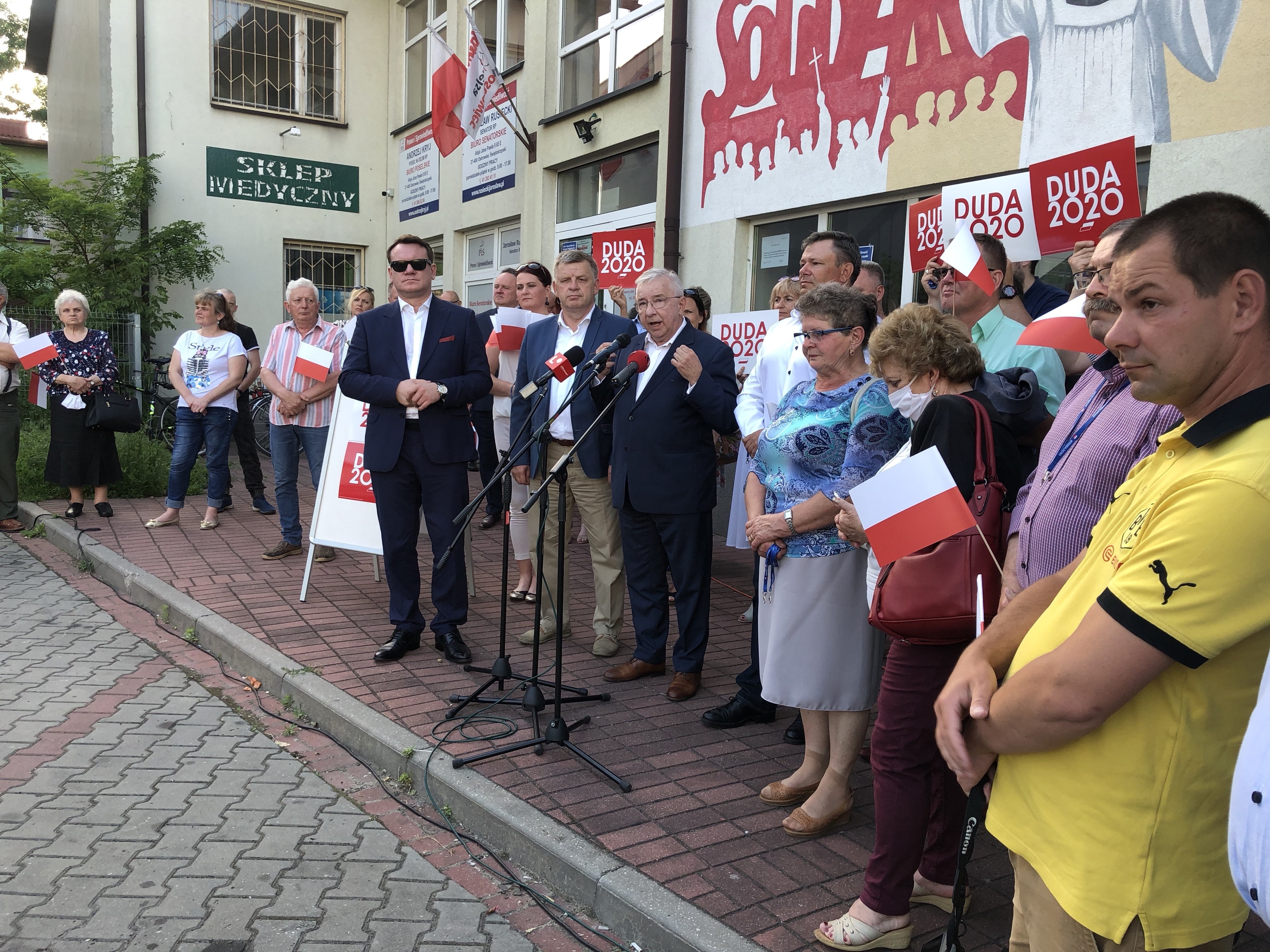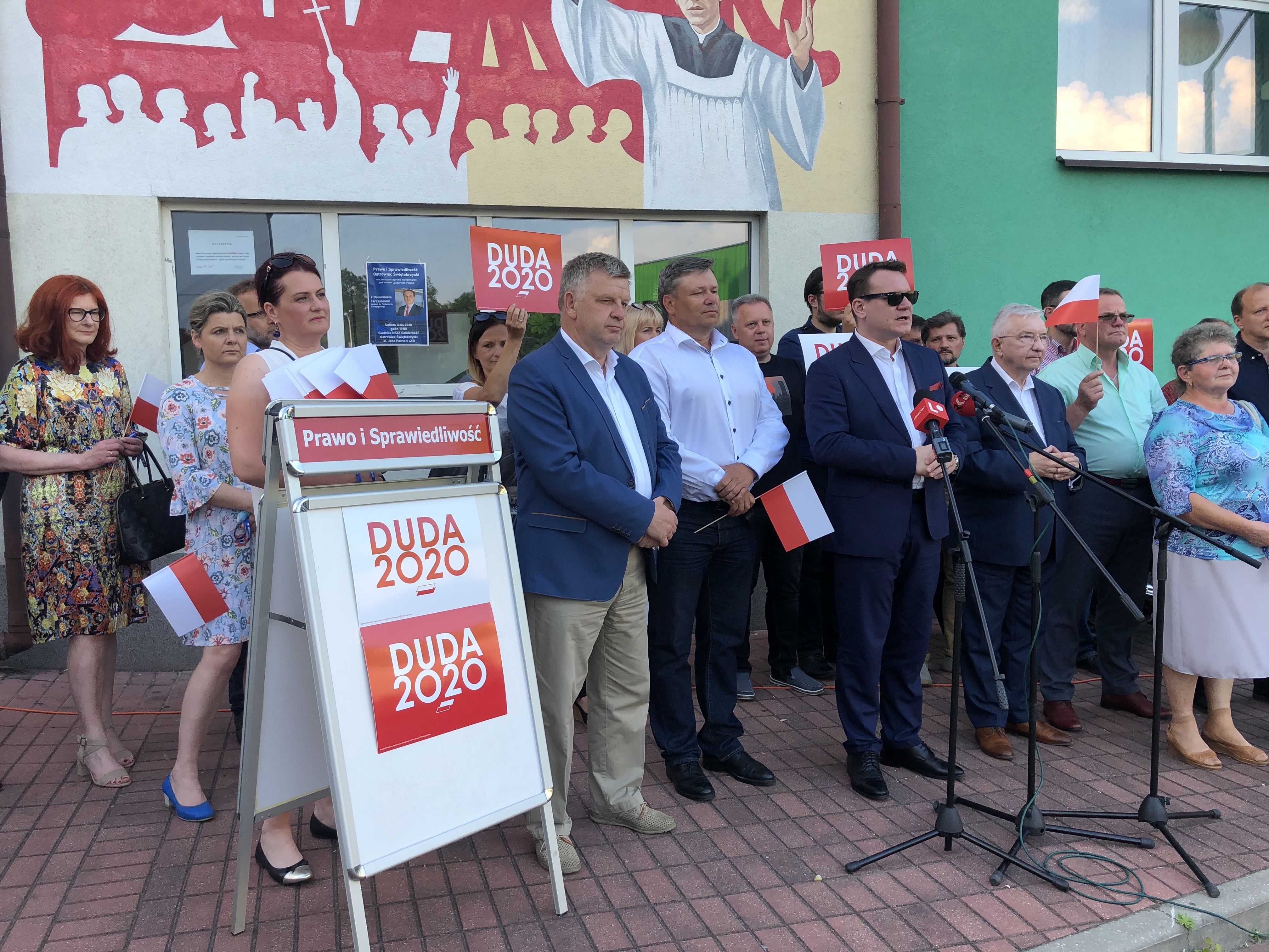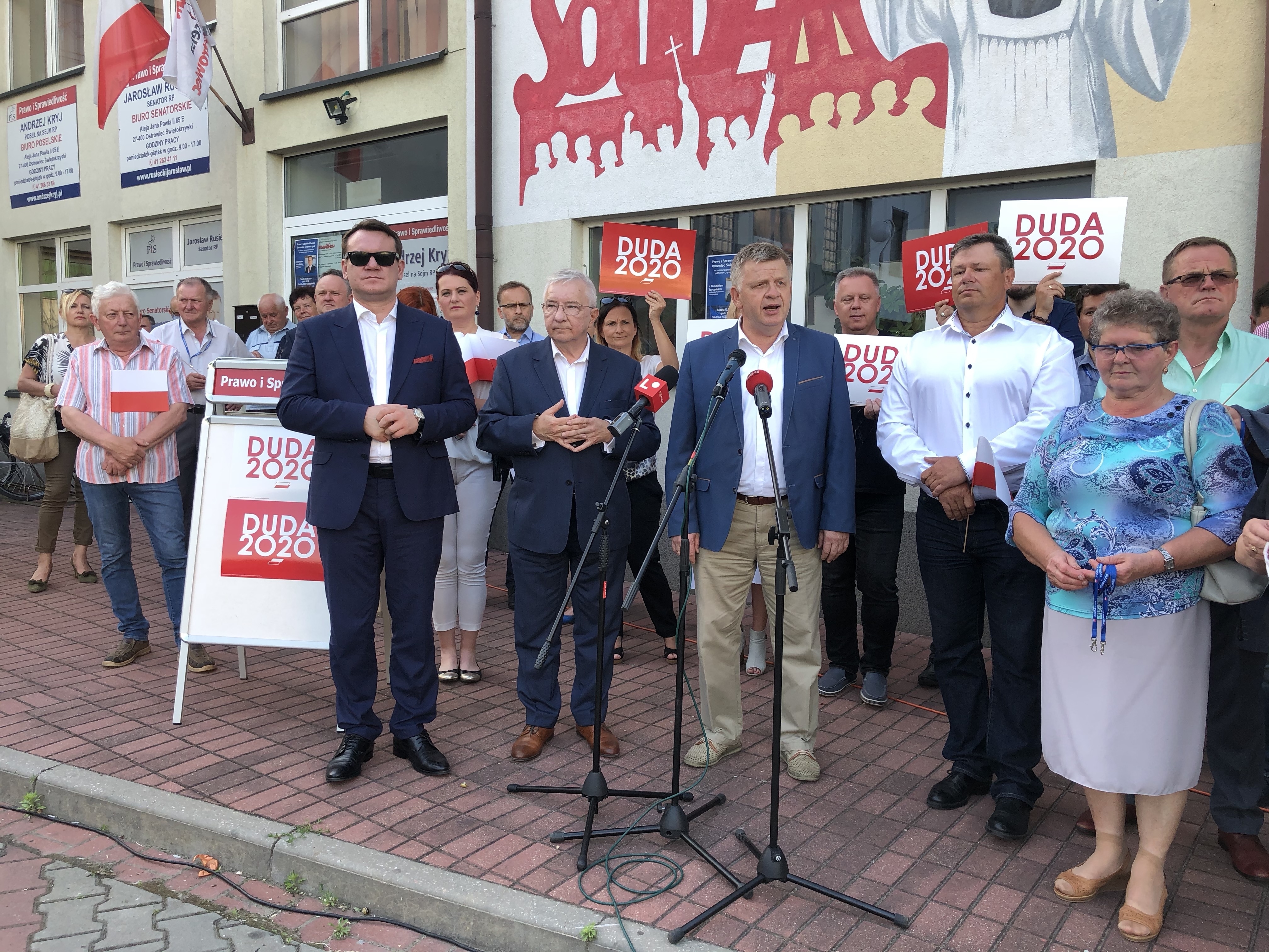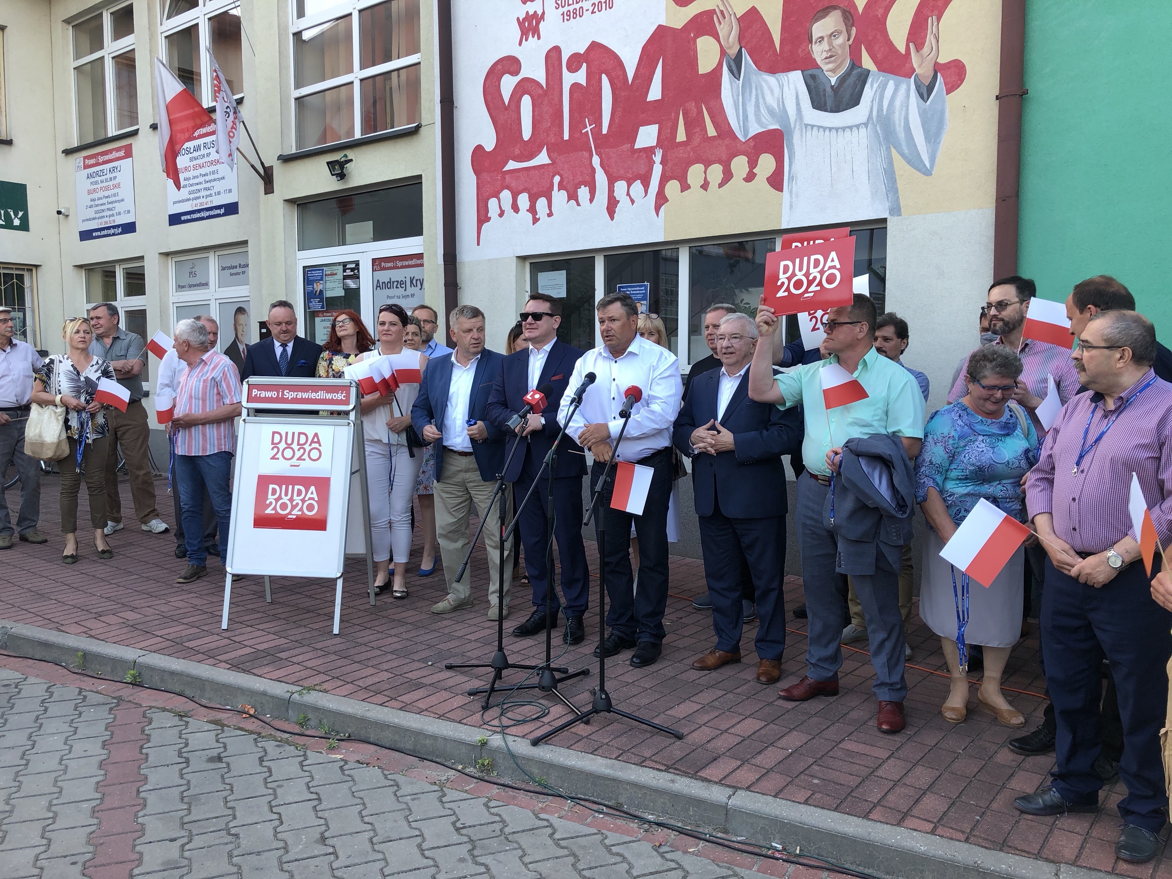 Przed siedzibą "Solidarności" w Ostrowcu Świętokrzyskim, w sobotnie popołudnie (13 czerwca) odbyło się spotkanie działaczy Prawa i Sprawiedliwości. Gościem honorowym był europoseł Dominik Tarczyński. Przesłaniem, które za pośrednictwem mediów ma dotrzeć do społeczeństwa jest, aby pójść 28 czerwca na wybory i oddać głos na kandydata Zjednoczonej Prawicy - Andrzeja Dudę.