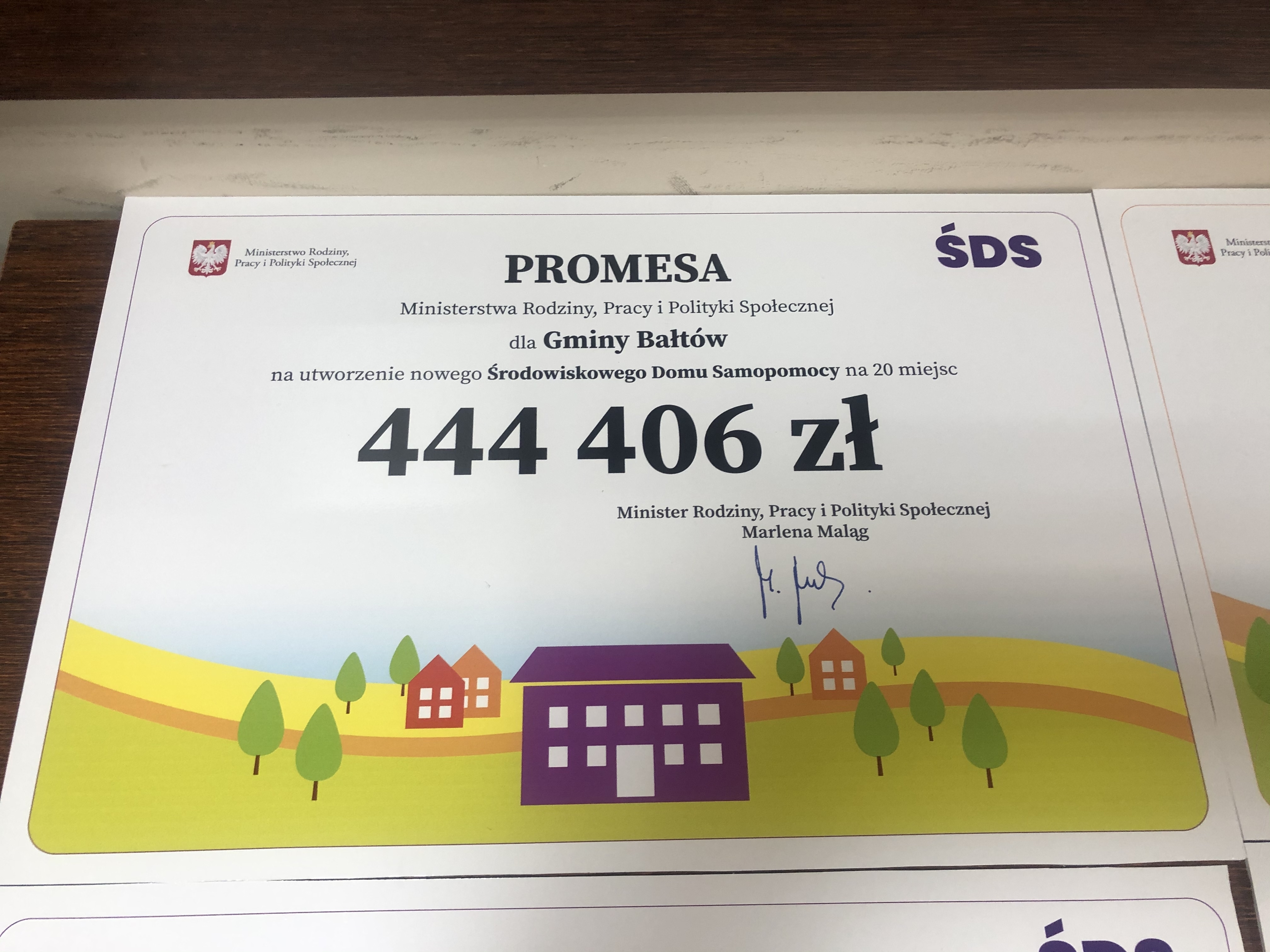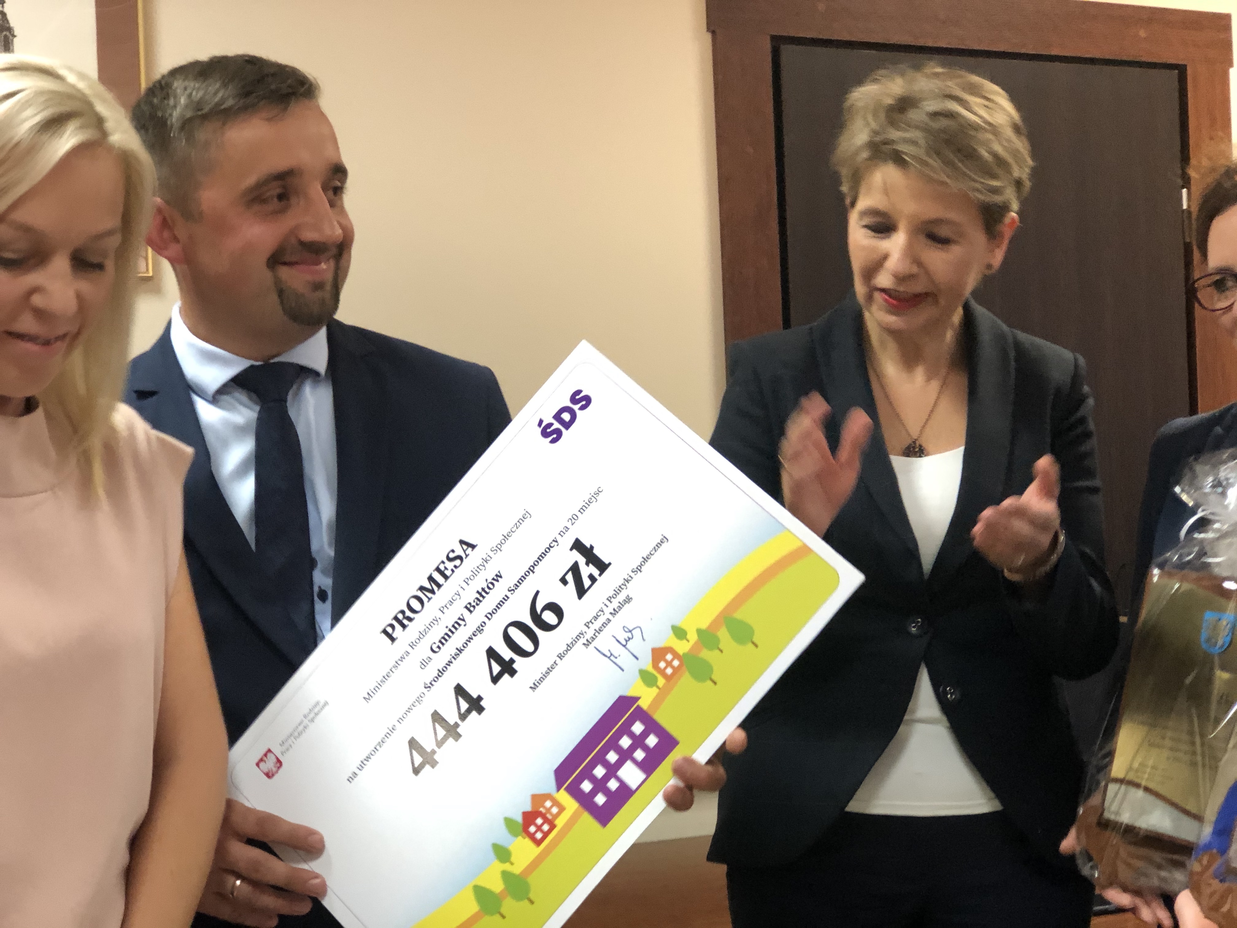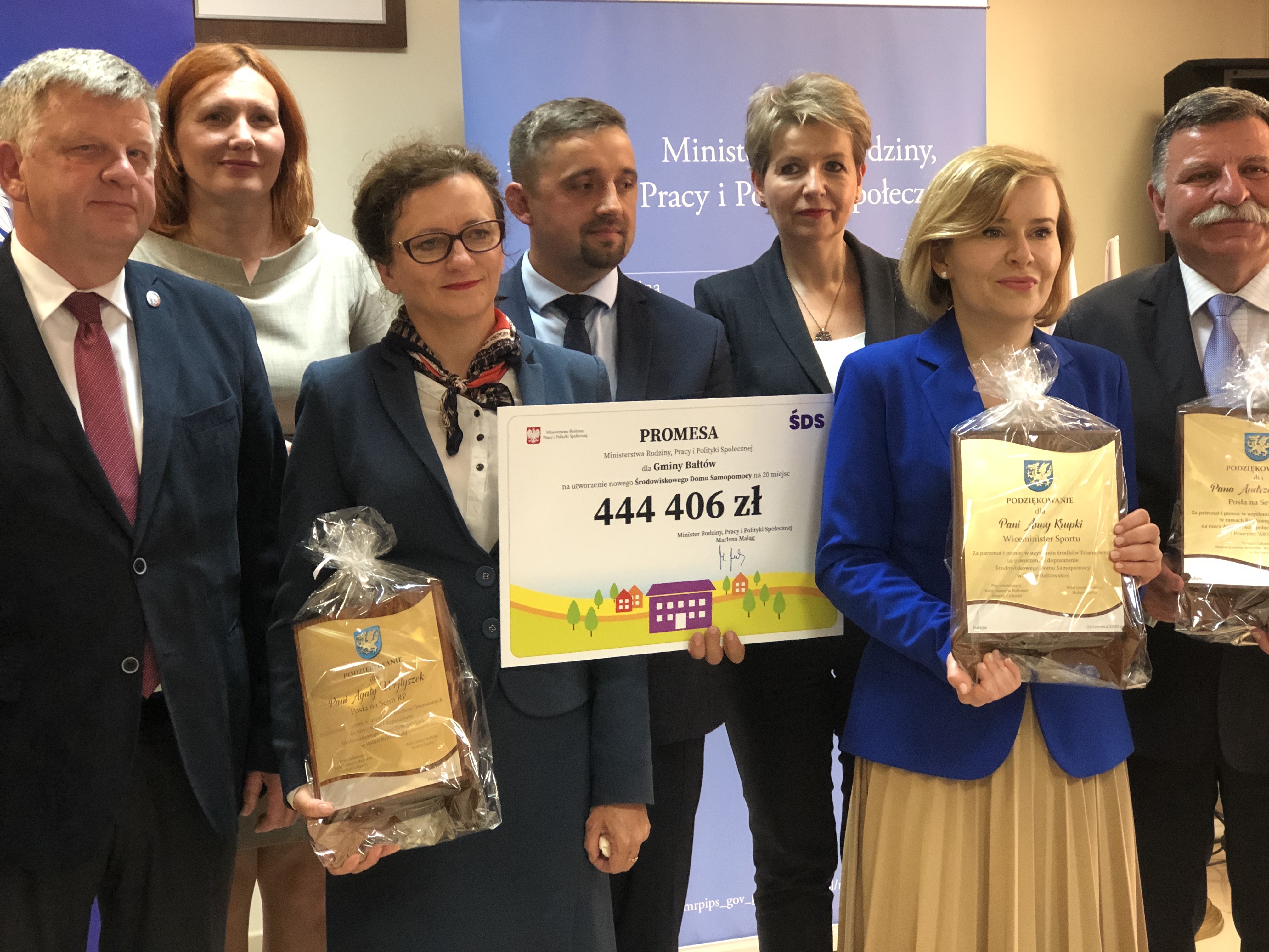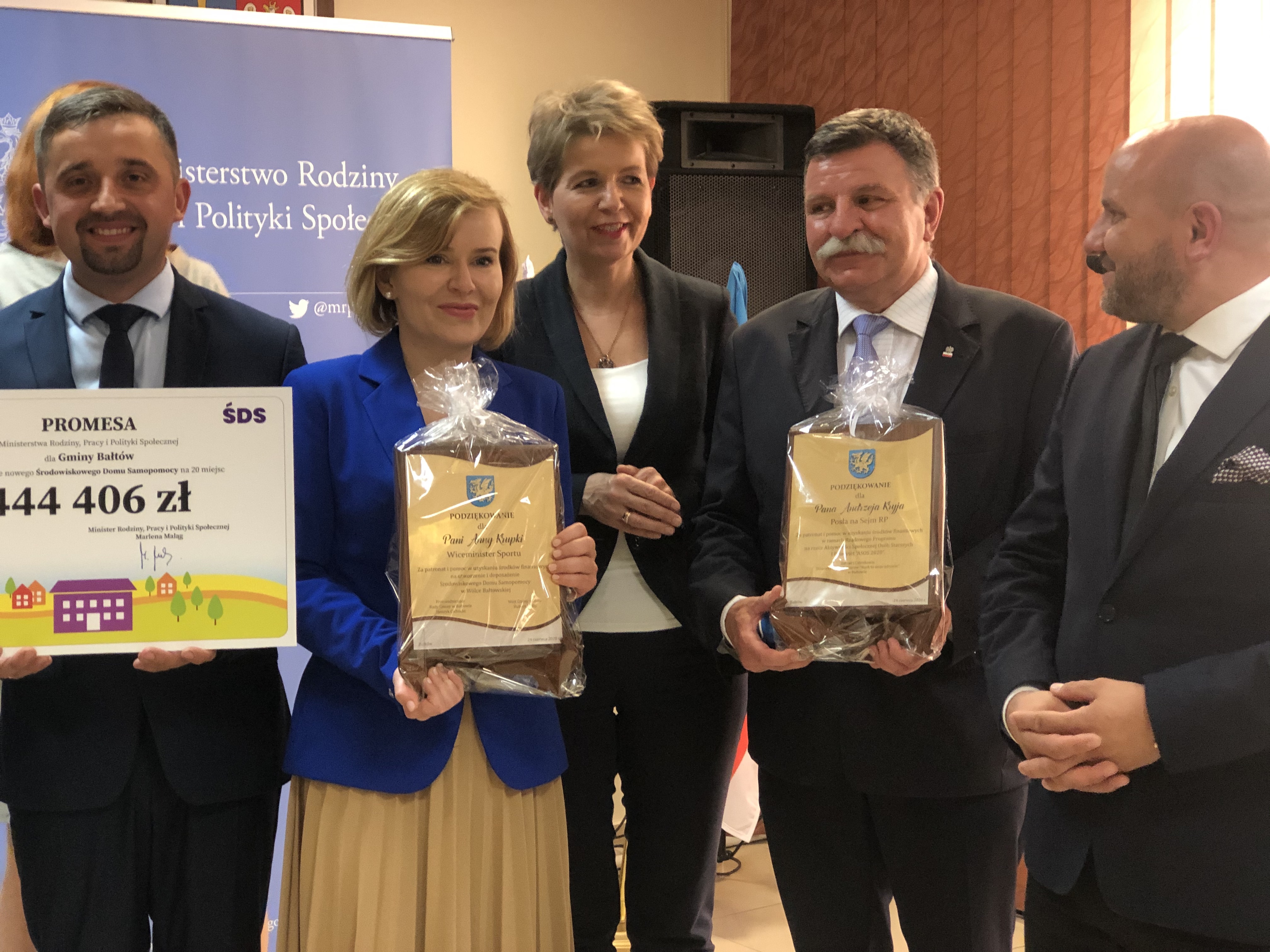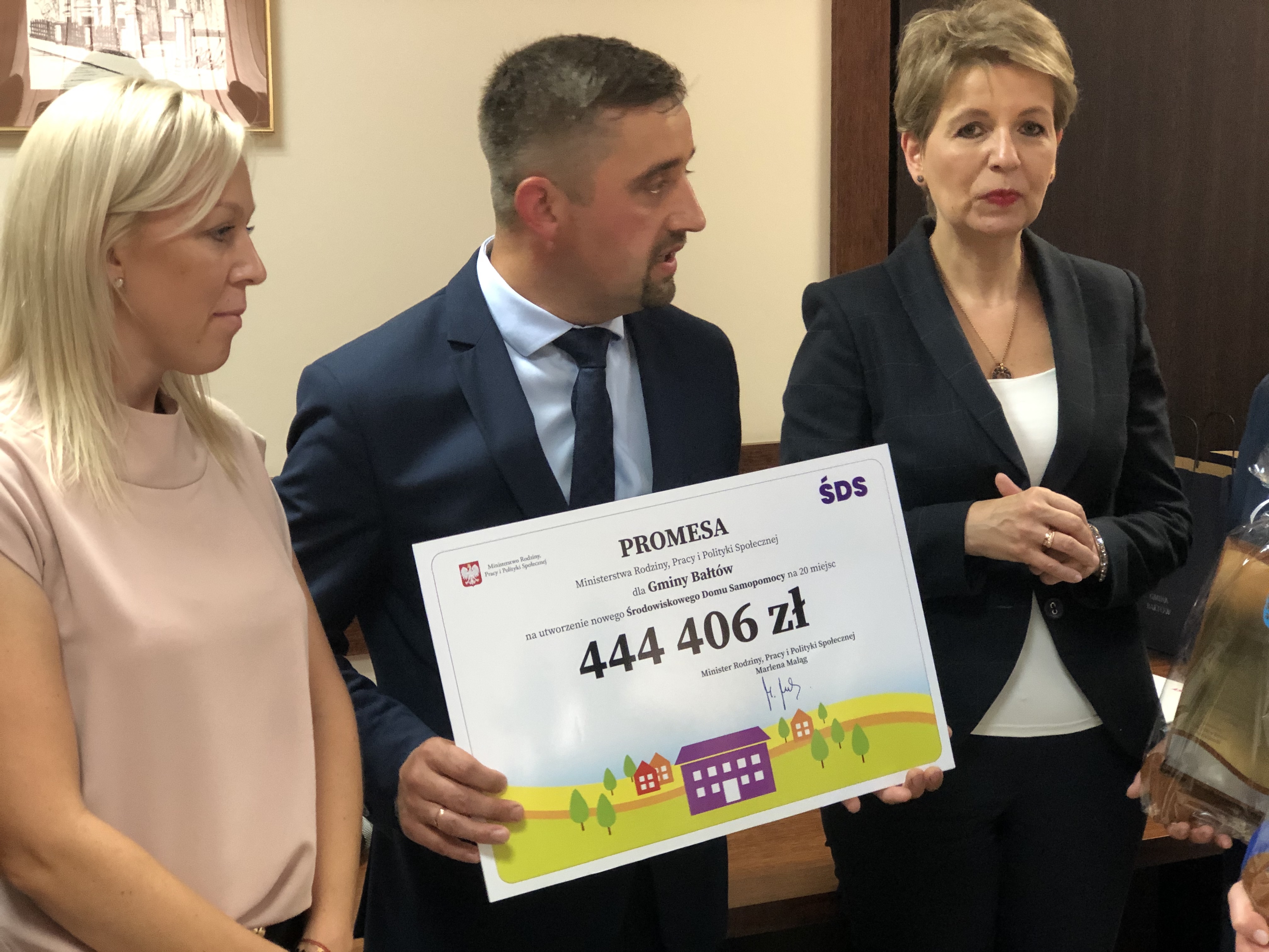 24 czerwca gminę Bałtów odwiedziła Alina Nowak - wiceminister rodziny, pracy i polityki społecznej, która na ręce wójta Huberta Żądło przekazała promesę na ponad 444 tysięcy złotych na utworzenie Środowiskowego Domu Samopomocy dla 20 pensjonariuszy w miejscowości Wólka Bałtowska.