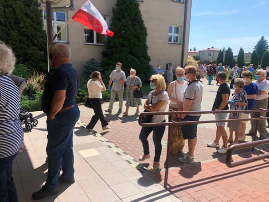 Przed niektórymi lokalami wyborczymi ustawiały się kolejki, spowodowane obostrzeniami sanitarnymi. Najgorzej było w godzinach dopołudniowych. [zobacz zdjęcia].