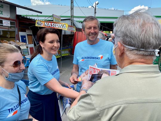 Targowisko Miejskie w Ostrowcu Świętokrzyskim zostało wybrane przez obie partie do prowadzenia kampanii wyborczej. Działaczy i sympatyków pracujących na rzecz kandydatów wsparli parlamentarzyści: Marzena Okła-Drewnowicz (PO), Bartłomiej Sienkiewicz (PO), Andrzej Kryj (PiS), Jarosław Rusiecki (PiS). Rozdawano ulotki i prowadzono rozmowy, które mają przekonać mieszkańców miasta i powiatu. II tura wyborów odbędzie się 12 lipca.