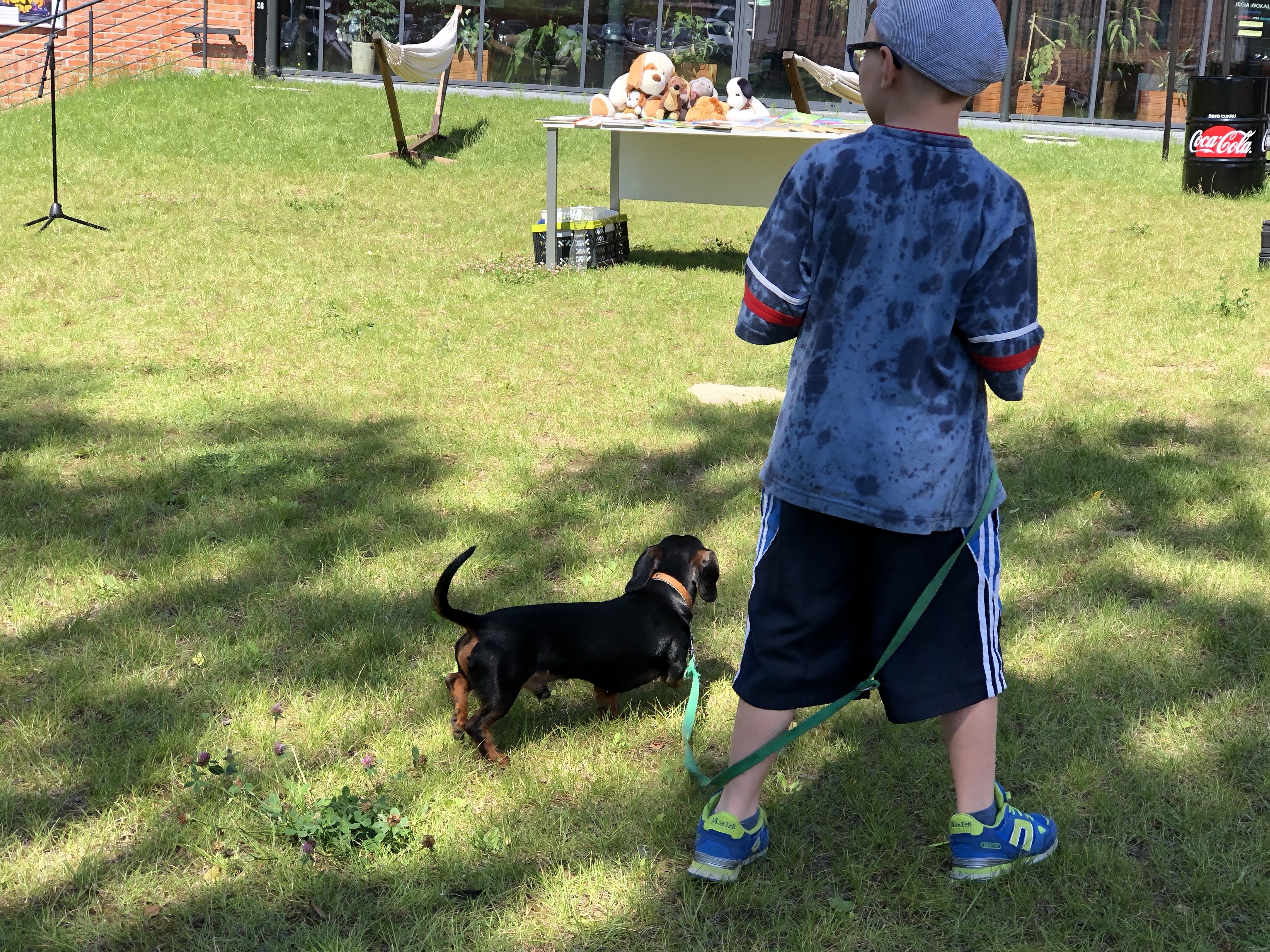 Były gry i zabawy, prezentowały się psiaki i ich opiekunowie, a pracownicy biblioteki pokazali duży wybór książek o zwierzętach. W spotkaniu wzięła również udział pani Basia ze Stowarzyszenia Animals, która tłumaczyła co zrobić kiedy spotkamy na swojej drodze bezdomnego psa lub kota.