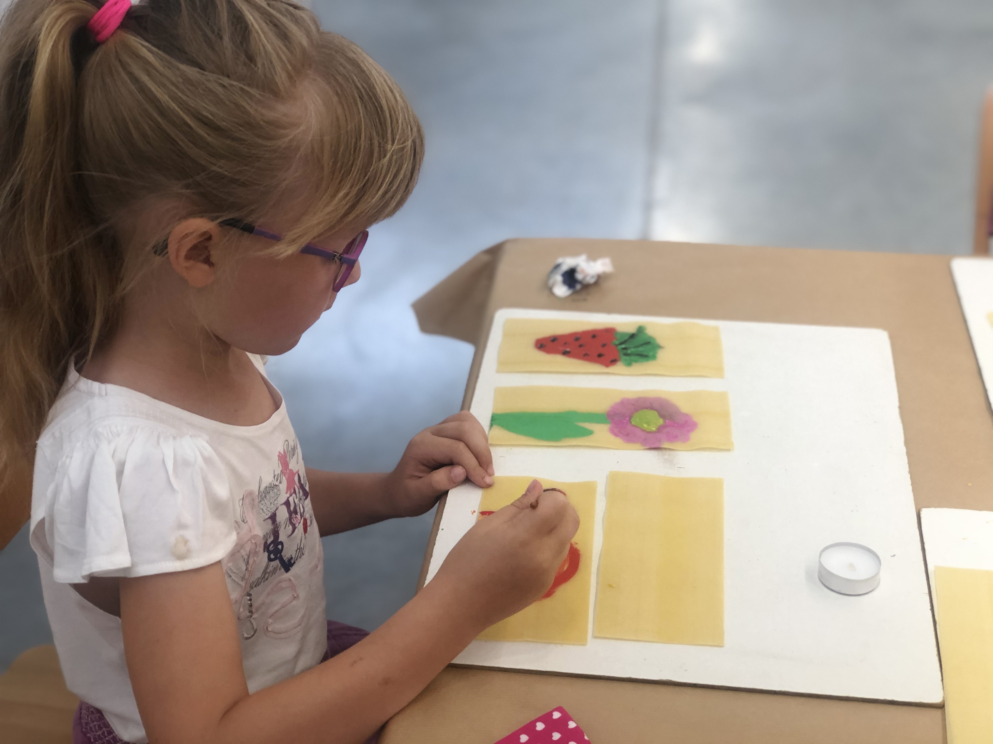 Galeria Biura Wystaw Artystycznych przynajmniej raz w tygodniu zamienia się w pracownię młodych twórców. Mali artyści wymyślają pod czujnym okiem instruktora swoje dzieła, wpisując się w temat, który przygotowywany jest na dane zajęcia i co najważniejsze na każde warsztaty jest on inny. W środę, 29 lipca powstawały przy użyciu farb, ale bez wody, "wakacyjne lampiony z lasagne", które po zajęciach można było zabrać do domu, odpowiednio podświetlić od spodu i rozświetlić nimi wakacyjne niebo,.