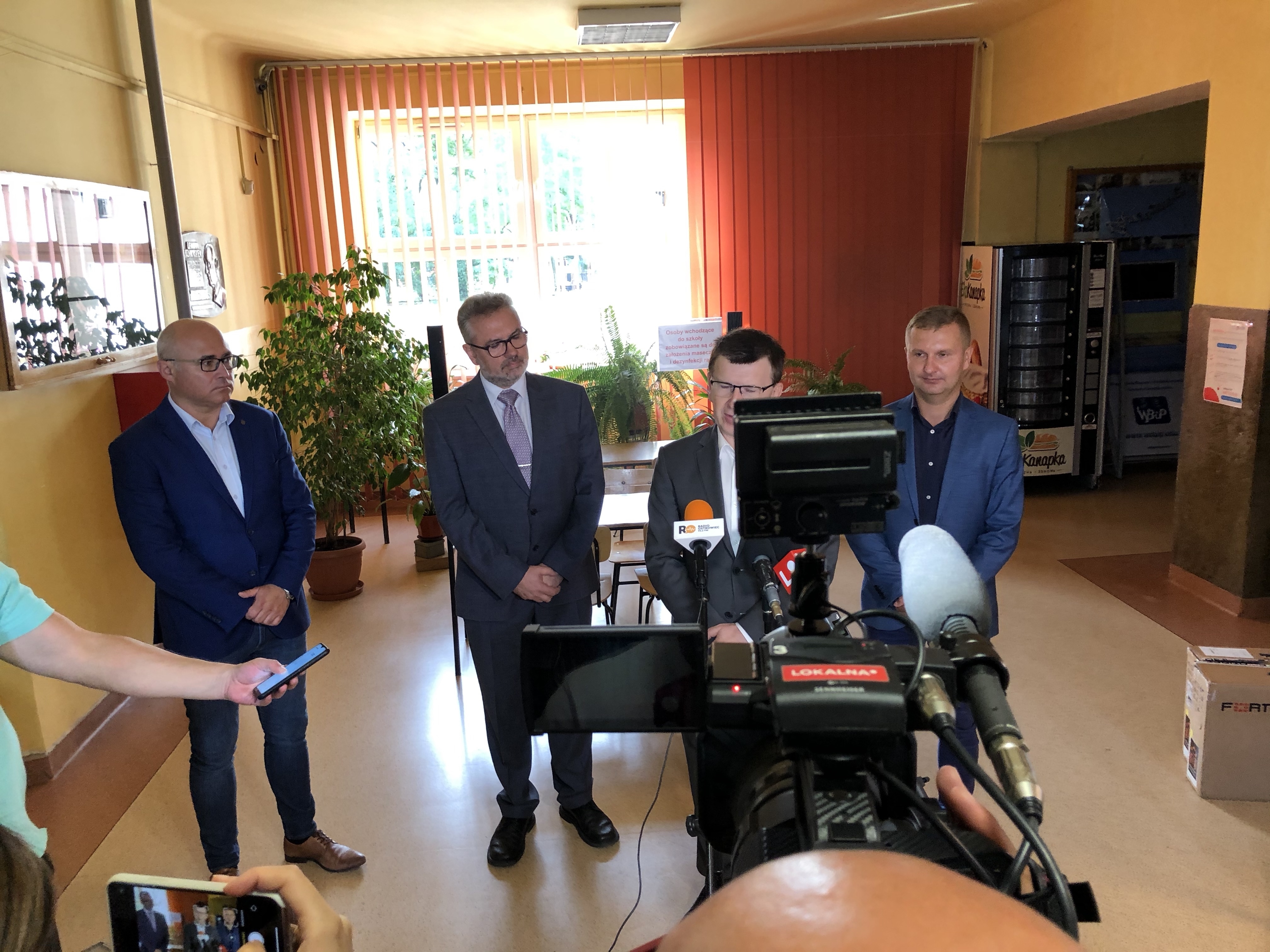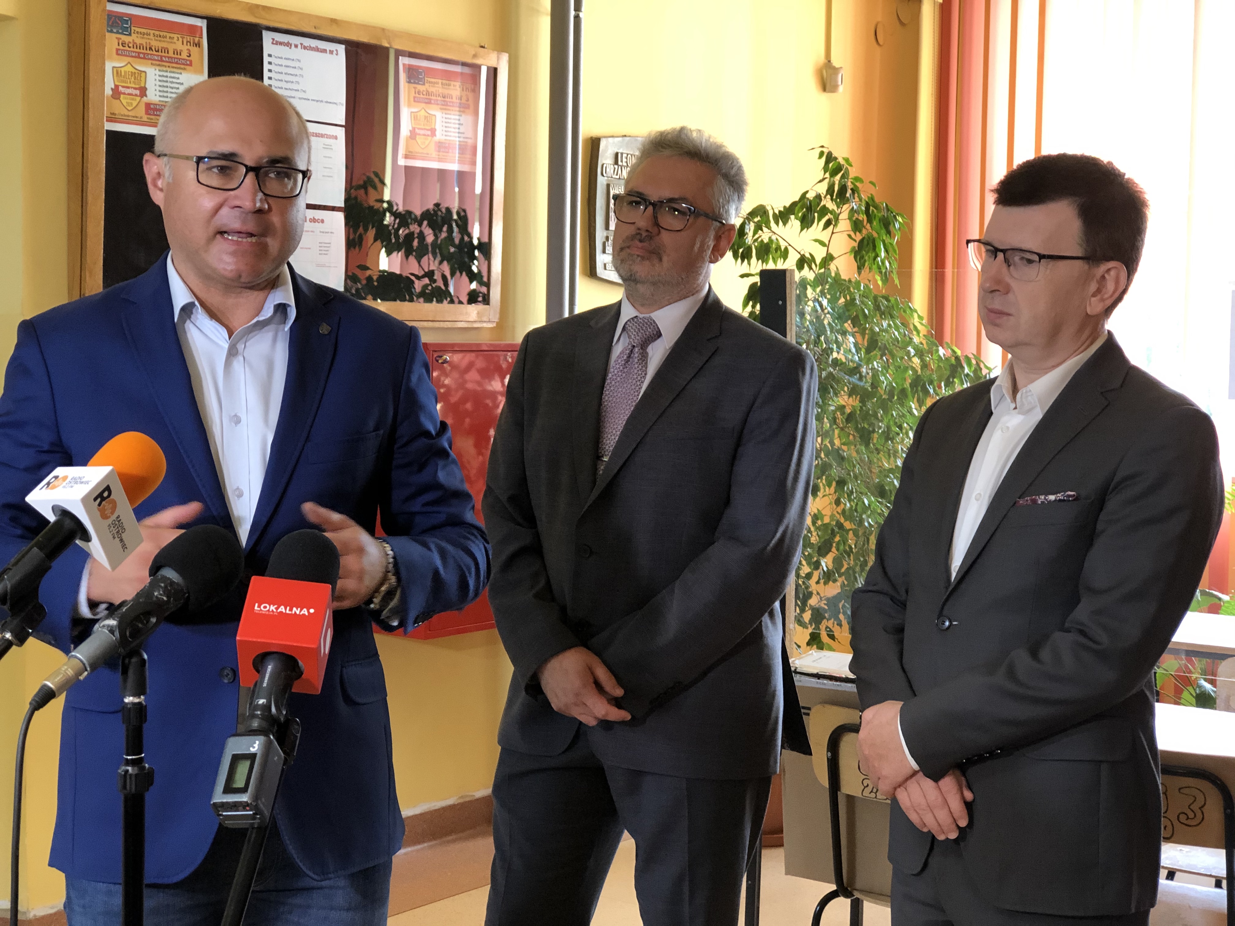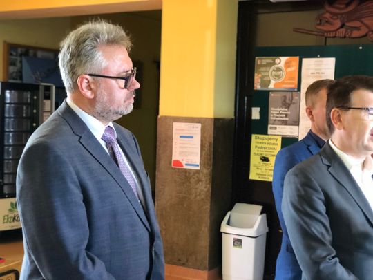Dzień przed rozpoczęciem nowego roku szkolnego w THM-ie spotkali się z dyrektorem szkoły: prezydent miasta, naczelnicy z UM i Starostwa, aby przekazać dla szkoły sprzęt do ochrony sieci publicznych, który zostanie wykorzystany na potrzeby szkoleniowe uczniów.