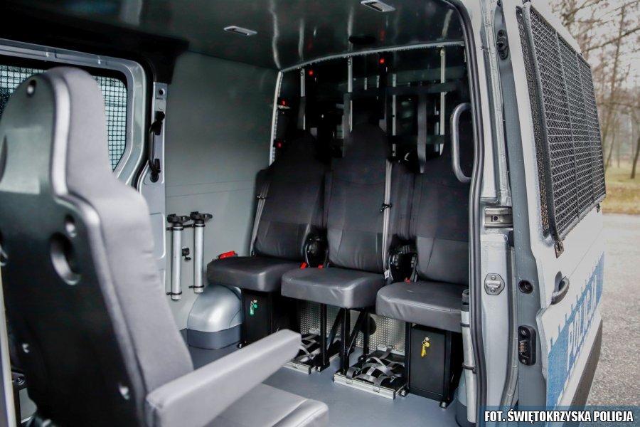 Wnętrze pojazdów zostało specjalnie zaprojektowane dla potrzeb funkcjonariuszy Oddziałów Prewencji Policji. W tylnej części volkswagena znalazła się zabudowa na osobiste wyposażenie policjantów oraz inne elementy sprzętu technicznego i śpb. Na autach zainstalowano również zestawy ochronne szyb oraz dodatkowe oświetlenie LED.