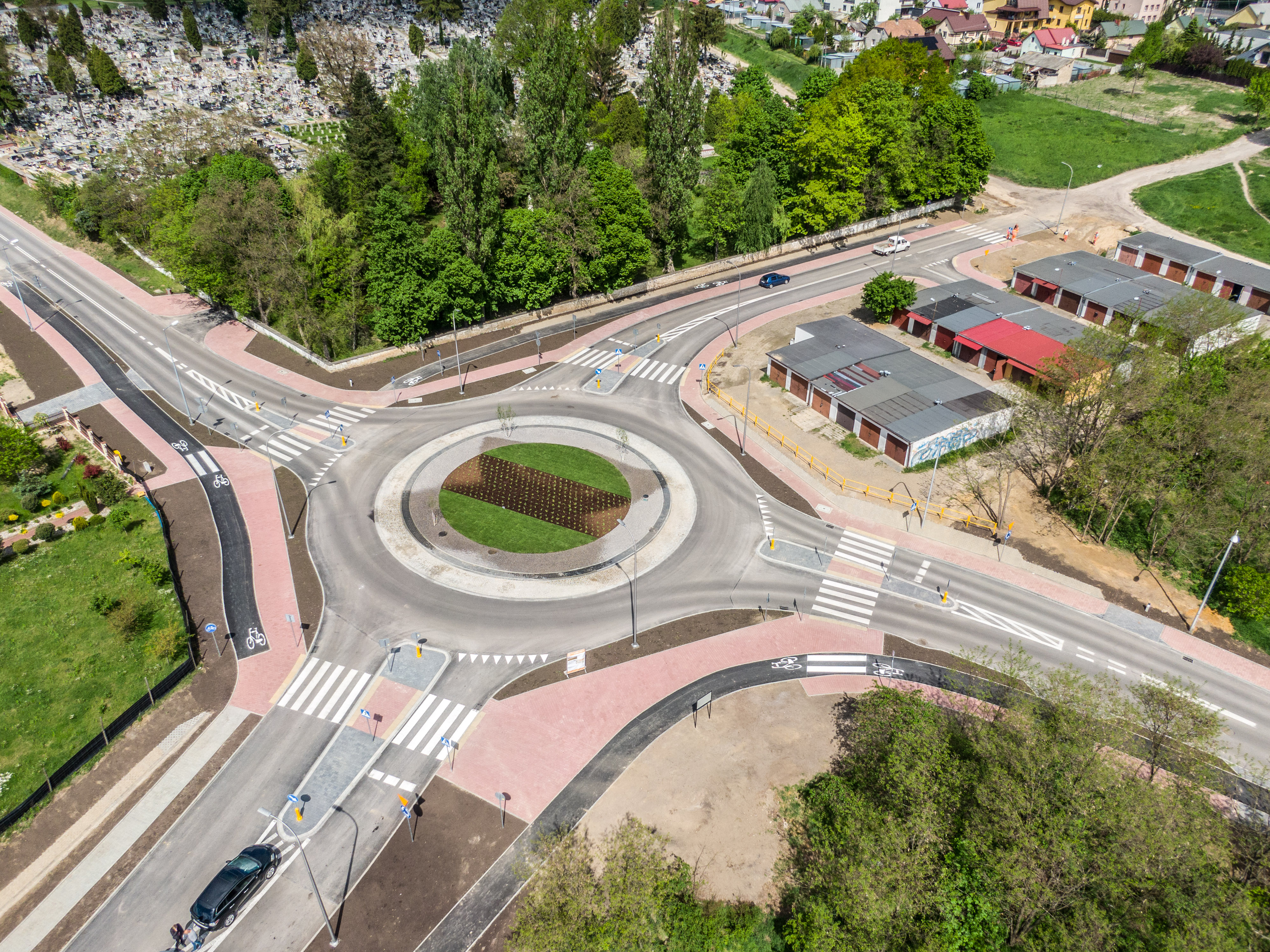 W ramach inwestycji wykonane zostało nowe, czterowylotowe rondo, wokół którego m.in. powstały chodniki, ścieżki rowerowe, kanalizacja deszczowa. Przy tworzeniu ronda zadbano również o estetykę oraz innowacyjne nawadnianie roślin.