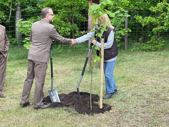 Na znak współpracy i tego, że łączą nas drzewa uczestnicy sobotniego wydarzenia posadzili na terenie leśnego kącika edukacyjnego miododajną lipę.
