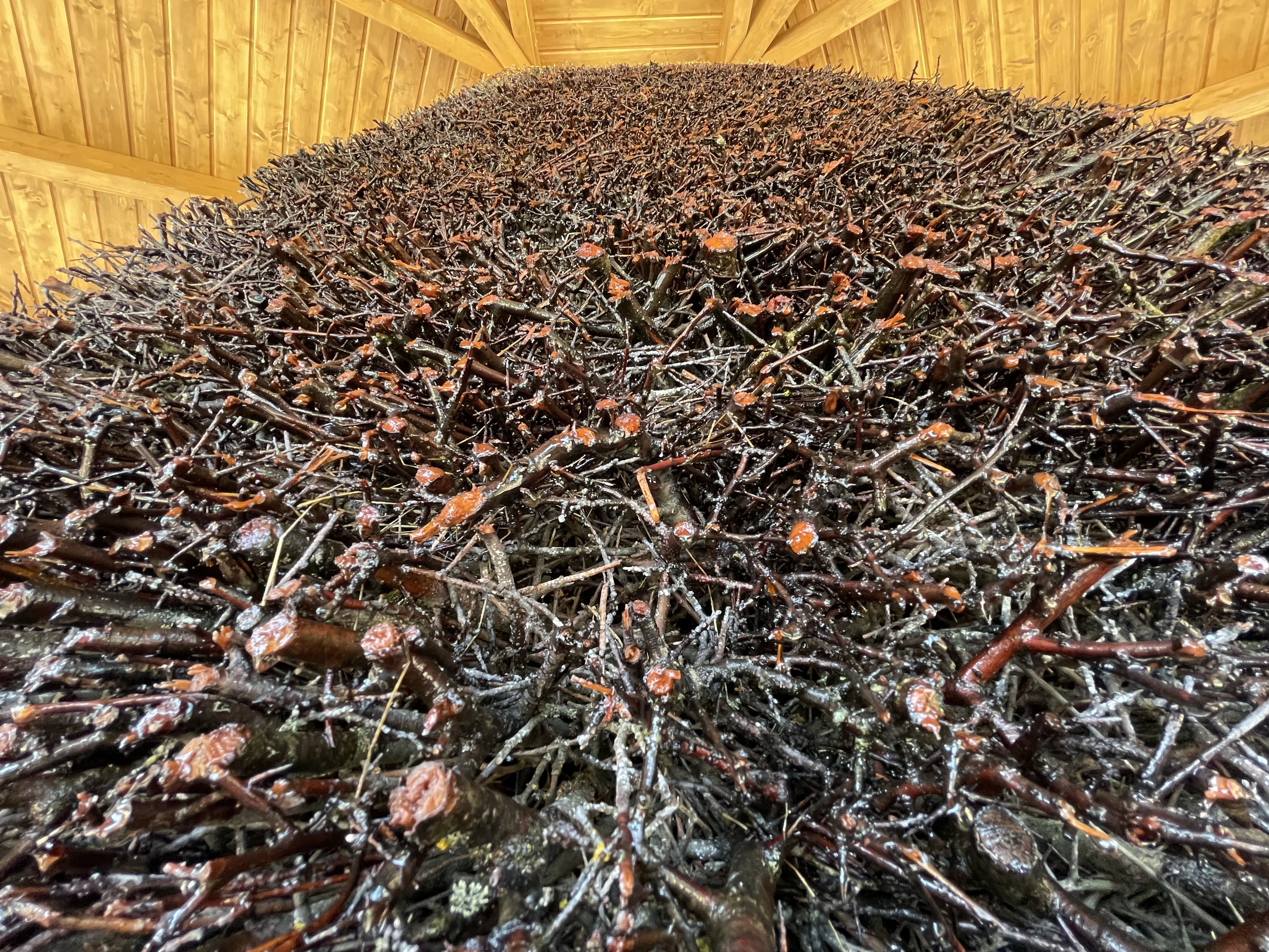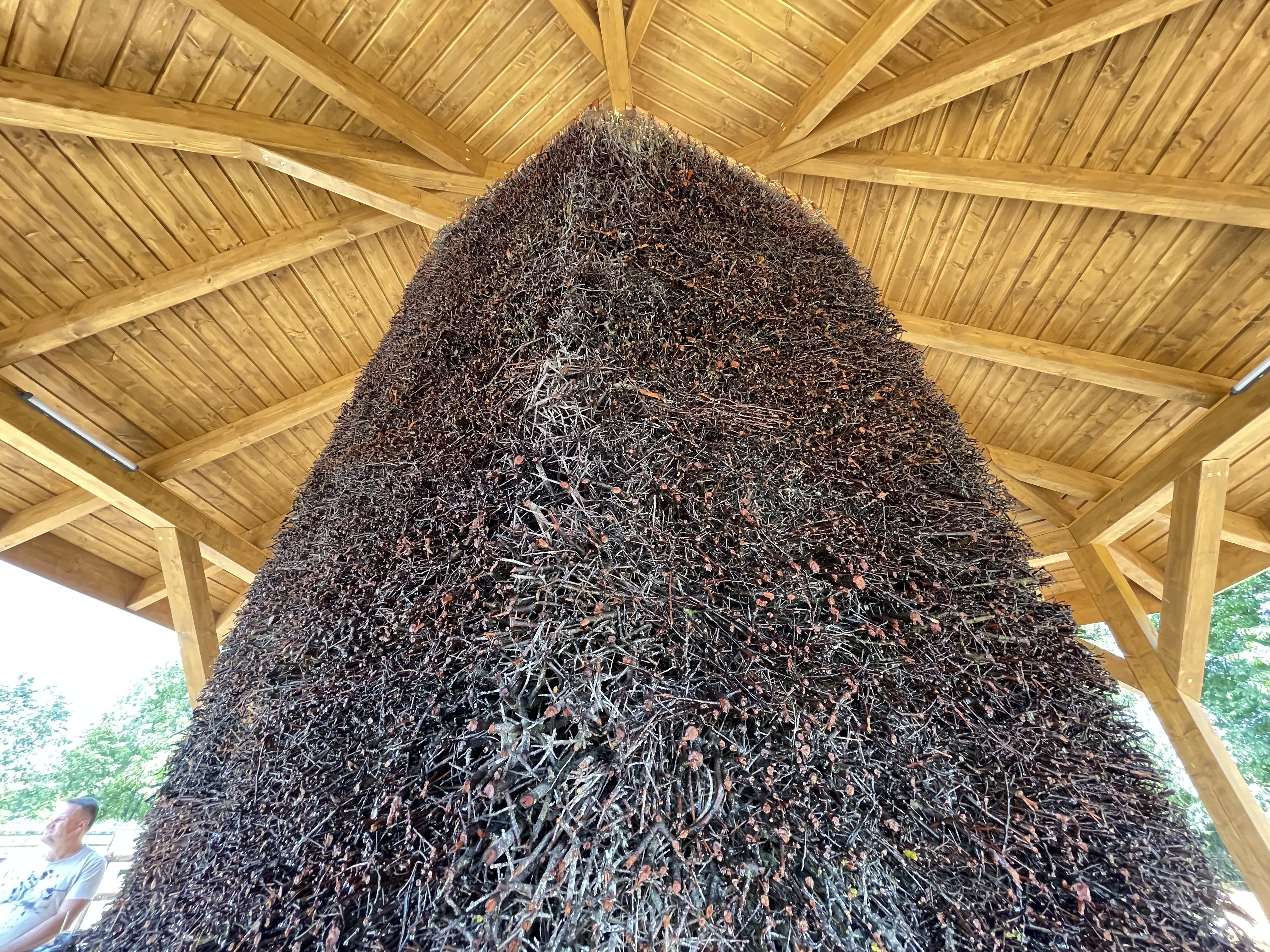 Drewniana konstrukcja przypomina na pierwszy rzut oka altanę, ze stosem usypanym z gałązek tarniny pośrodku. Zamontowana pod ziemią pompa na szczyt tego stosu transportuję solankę, która powoli spada między gałązkami. Pieniądze na tę inwestycje pochodziły w całości z budżetu powiatu opatowskiego, wydano ponad 200 tys zł.