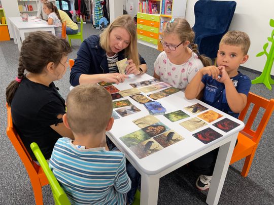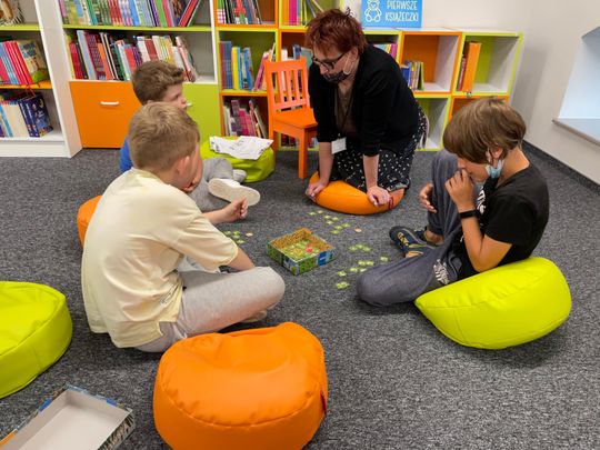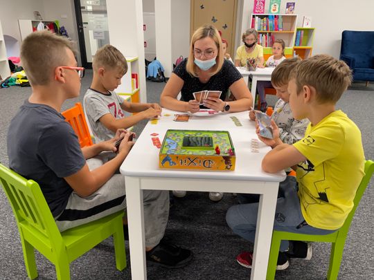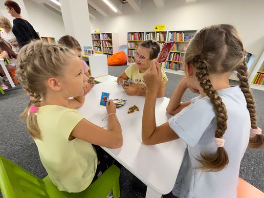 Druga edycja „Gier Offline”, podobnie jak pierwsza, przyciągnęła młodych entuzjastów planszówek i okazała się trafionym pomysłem na deszczową, nieprzyjemną pogodę. Główną atrakcją było „Decrypto”, ale nie była to jednak jedyna gra, którą przygotowano na dzisiejszy event w Miejskiej Bibliotece Publicznej. Niektórych pochłonęły karty, a przede wszystkim „Doble”. Jeszcze inni szukali odpowiedzi na pytanie „Kto to zrobił?”. Wszystko po to, aby przynajmniej na chwilę odciągnąć uczestników od świata elektroniki.