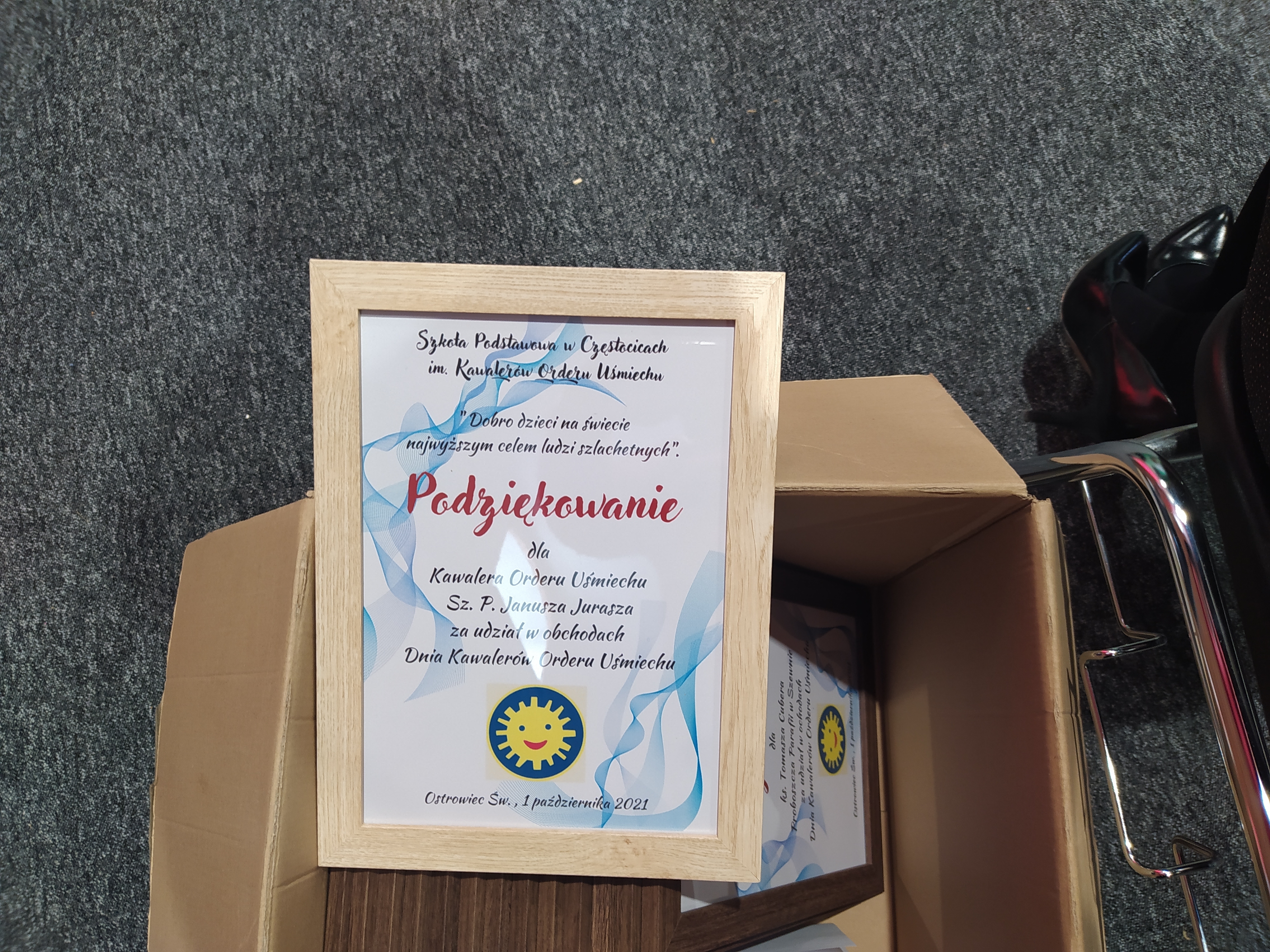 Społeczność Szkoły Podstawowej w Częstocicach, która nosi imię Kawalerów Orderu Uśmiechu, na święto swojego patrona zaprosiła uczniów z innych ostrowieckich placówek, prezydenta Ostrowca Świętokrzyskiego - Jarosława Górczyńskiego oraz Janusza Jurasza, założyciela Stowarzyszenia na rzecz Osób i Dzieci Niepełnosprawnych w Ostrowcu Świętokrzyskim, który jest Kawalerem Orderu Uśmiechu od 2004 roku.