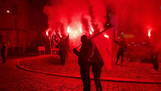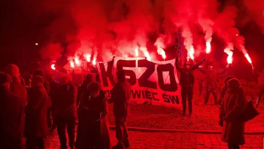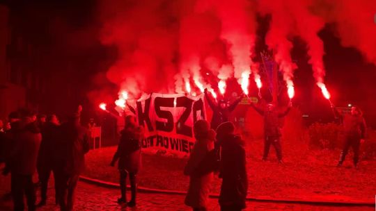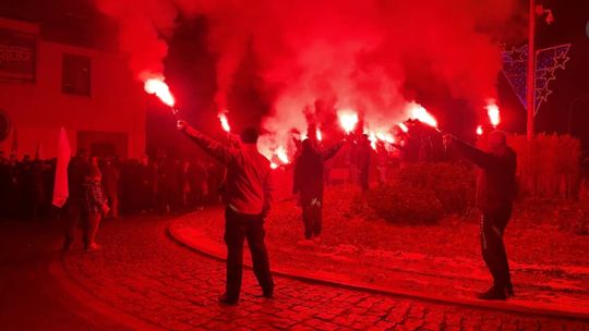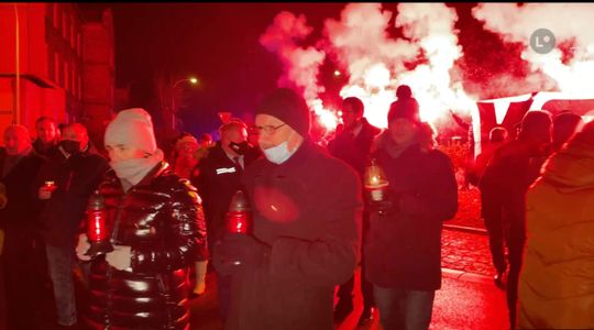 Po eucharystii uczestnicy uroczystości w „marszu milczenia” udali się ulicami Tadeusza Kościuszki i Stanisława Staszica w kierunku Ronda 25-lecia Solidarności, gdzie przy przed tablicę, gdzie dawniej znajdowała się brama prowadząca do starej huty złożono kwiaty i zapalono znicze. Kibice KSZO odpalili race.