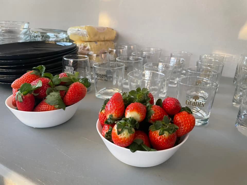 Dziś będzie koktajl z krewetek, taka przystaweczka w postaci sałatki. potem będzie polędwiczka w szynce parmeńskiej z pieczonym batatem i surówką z rukoli i potem mamy deser, to będzie taka chmurka waniliowa z truskawkami i biszkoptami moczonymi w ciemnym piwie.