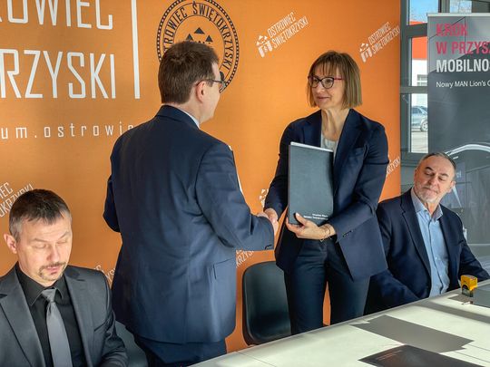 Dziś (28.02.2022 r.) Prezydent Ostrowca Świętokrzyskiego Jarosław Górczyński podpisał umowę z przedstawicielami firmy MAN, na dostarczenie 8 niskoemisyjnych elektrycznych autobusów.