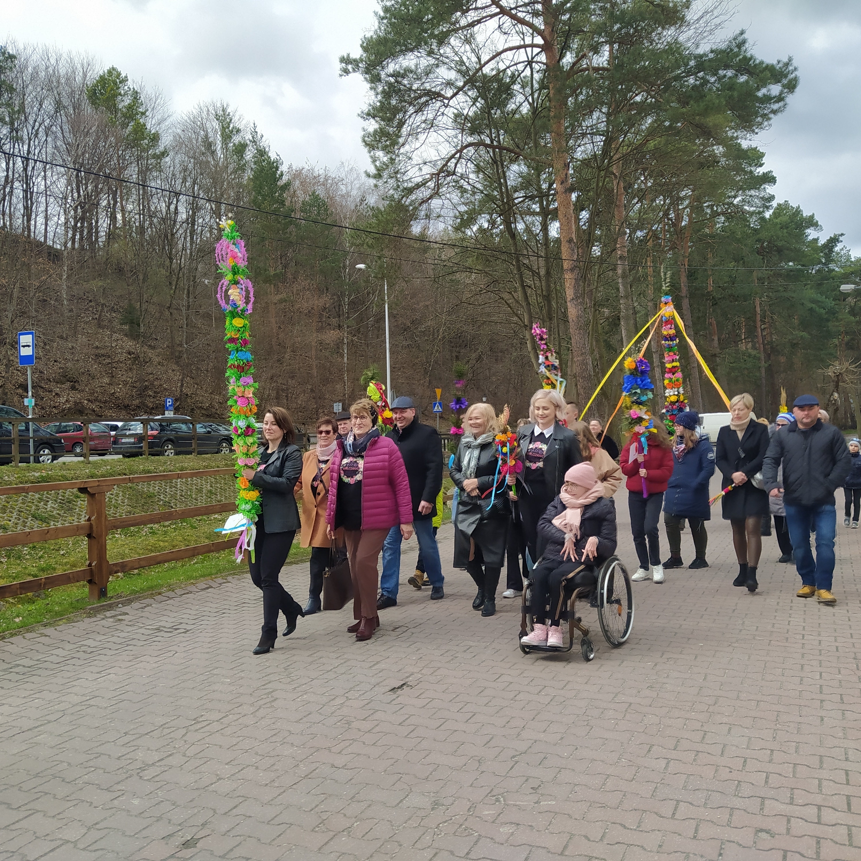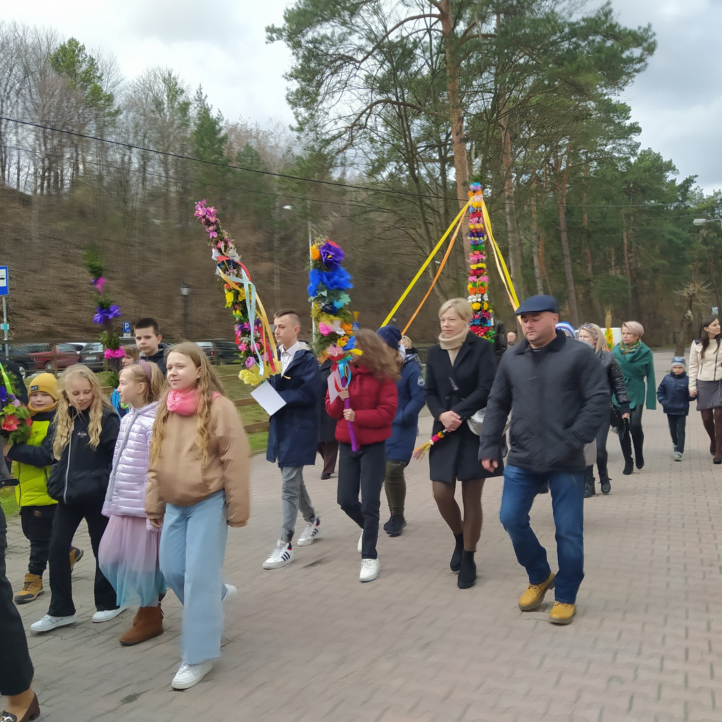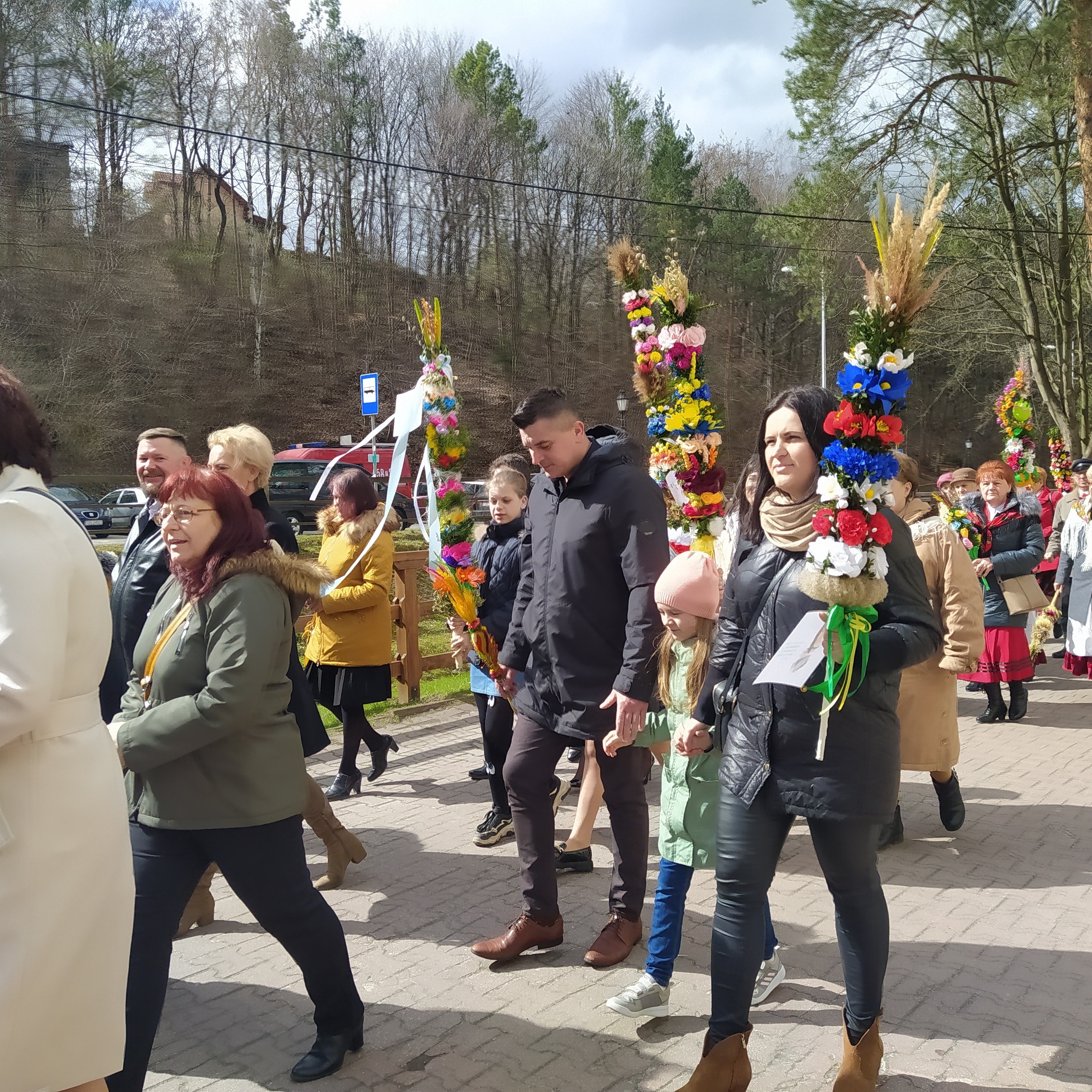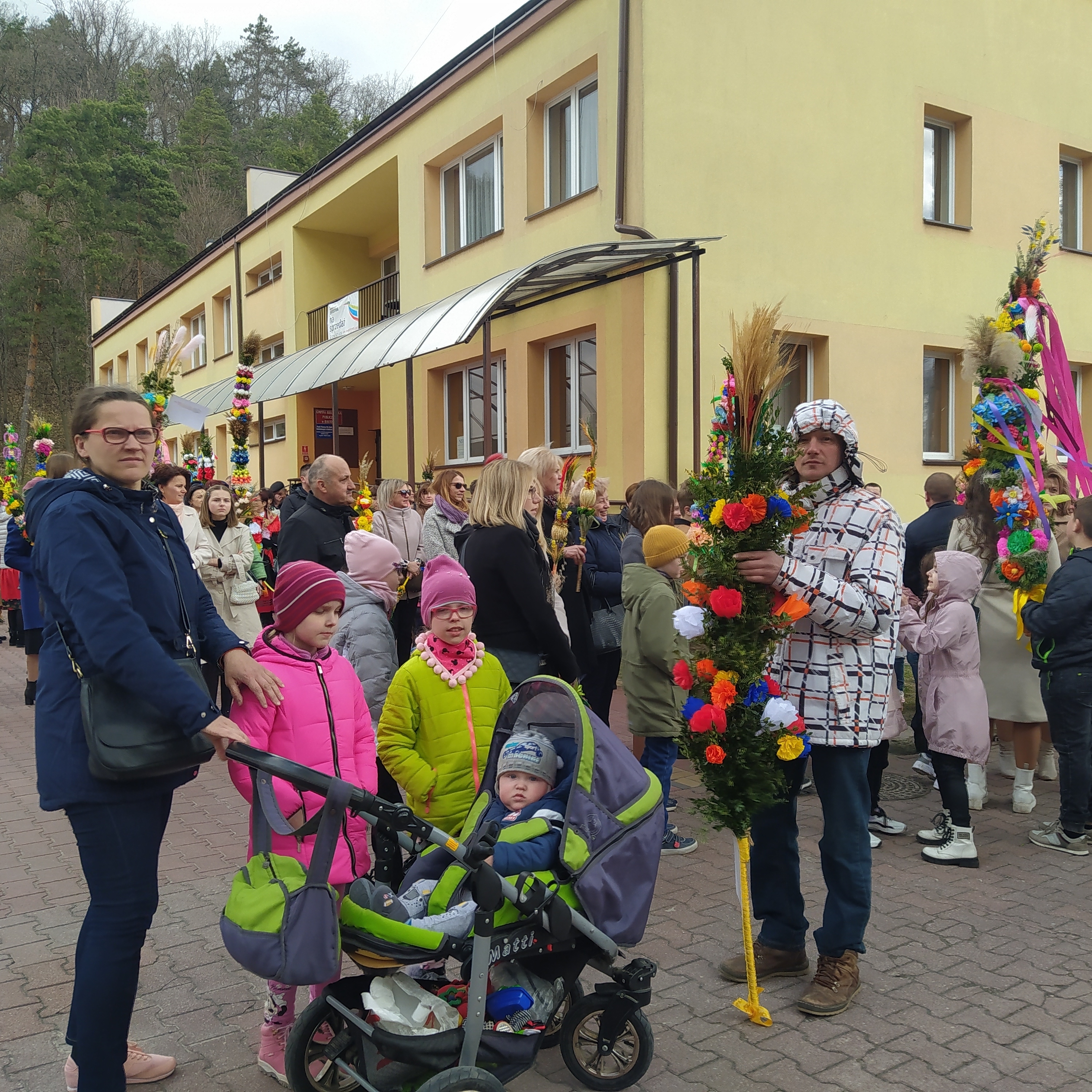 To taka nasza piękna tradycja, że w Niedzielę Palmową idziemy w uroczystym przemarszu do kościoła. Na mszy palmy są święcone. Po przerwie spowodowanej pandemią, powróciliśmy do tej tradycji. Na procesję zostało wykonanych około 30 palm. Jedne większe, inne mniejsze, ale wszystkie wyglądają bardzo okazale