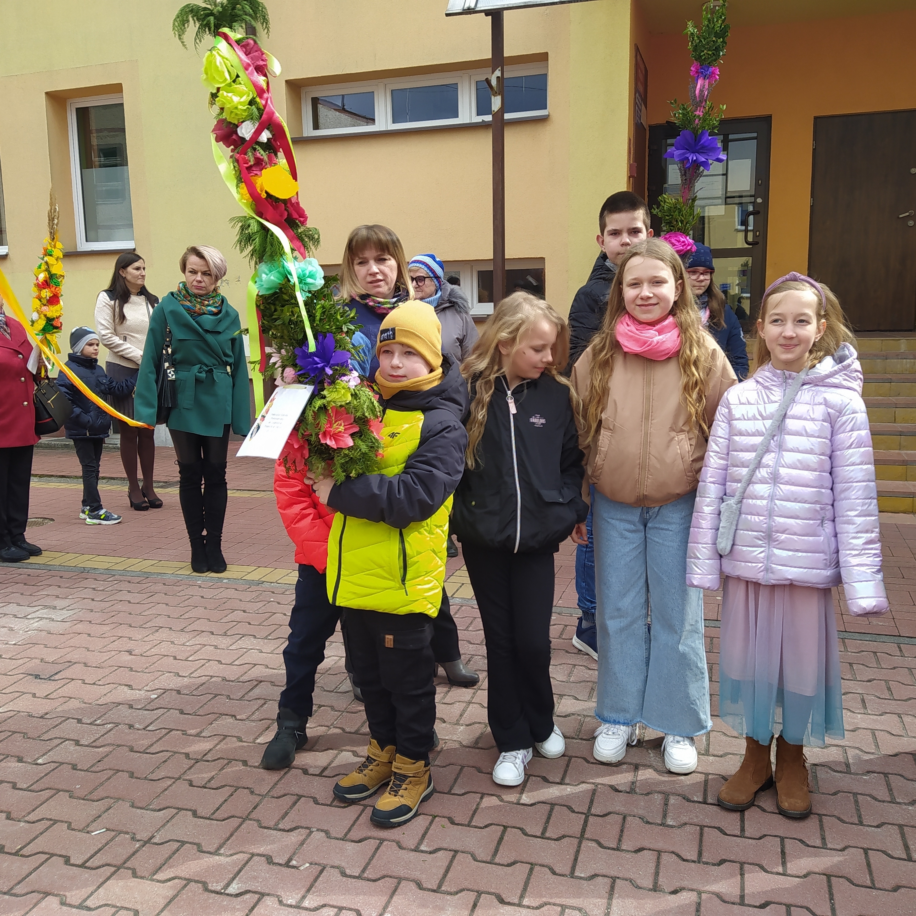 Symbolizujące zbliżające się święta palmy, udekorowane były kwiatami i wstążkami. jak nakazuje tradycja, to ważne, aby były barwne. Kolory palmy nie są przypadkowe. Zieleń symbolizuje nadzieję, fiolet oczekiwanie, czerwień miłość, żółty odrodzenie i siły witalne. Palmę wieńczy korona na cześć Chrystusa Króla, a spływające z niej wstążki symbolicznie łączą niebo z ziemią. Zielone gałązki to symbol budzącego się życia.