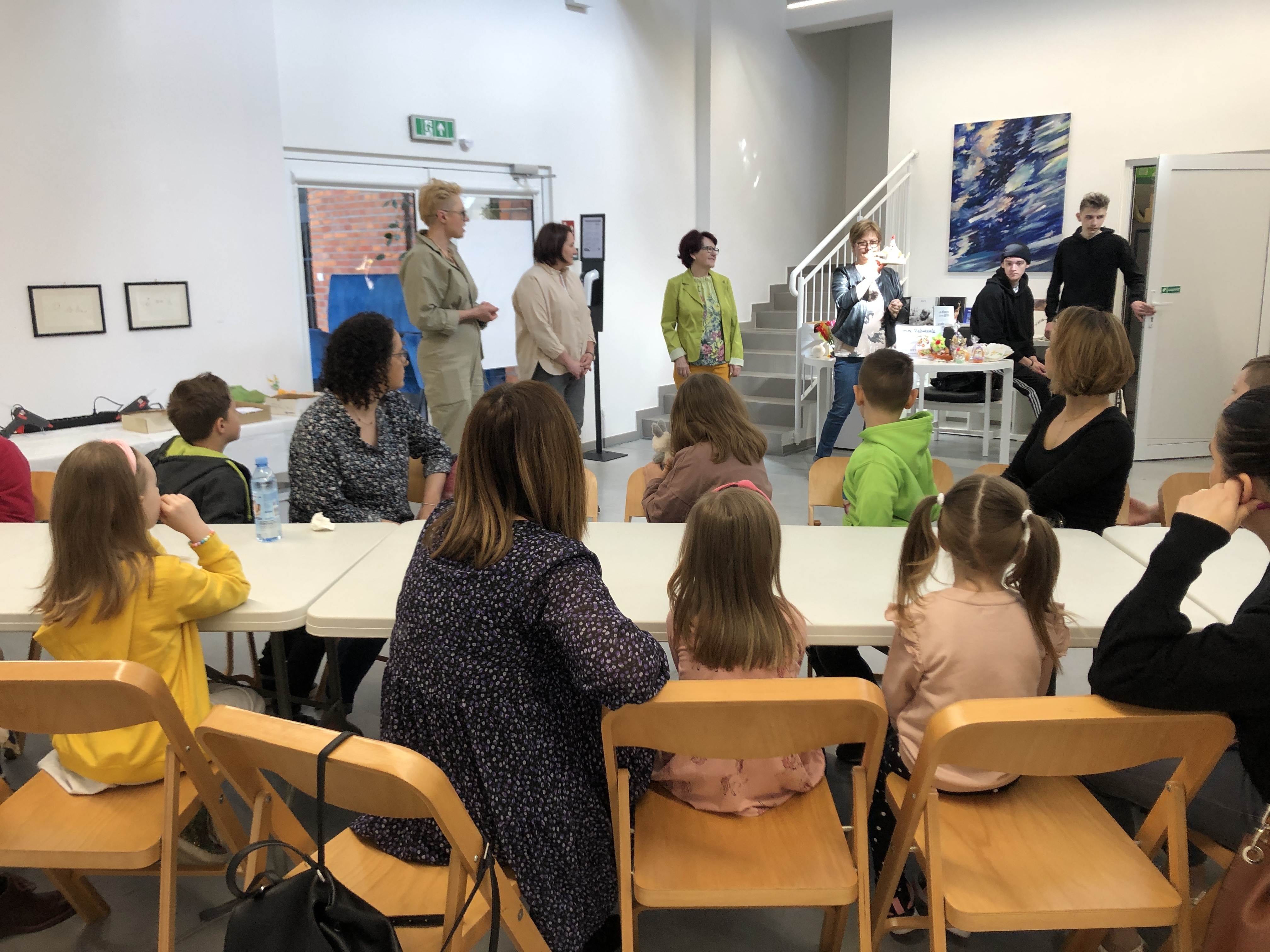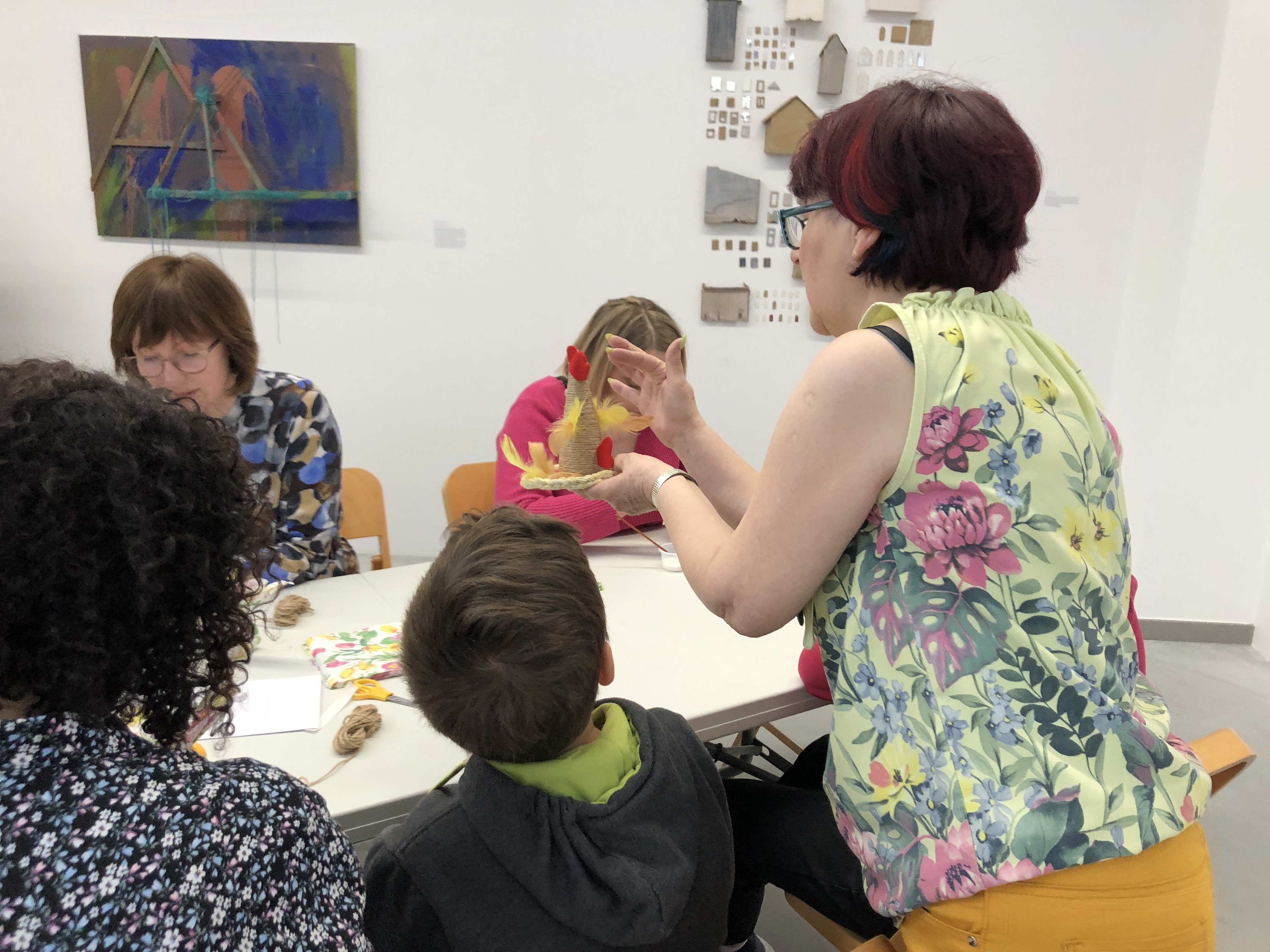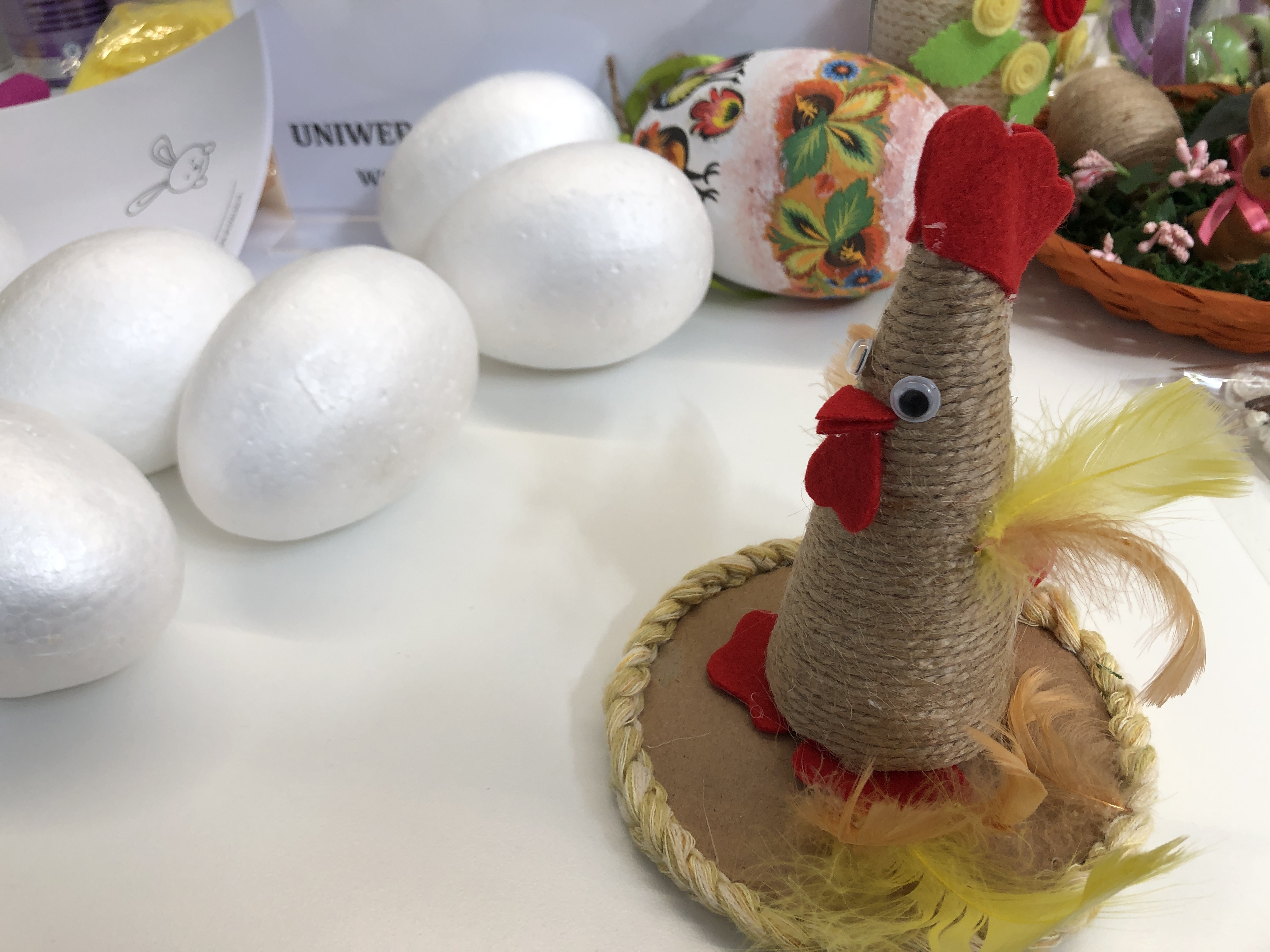 Bez kury nie byłoby jajka a bez jajka nie byłoby świątecznej tradycji. Przy pomocy kilku akcesoriów w ostrowieckiej galerii zrobiono kurki ze sznurka. Zdolności manualne poprzedziła wspólna zabawa integracyjna. Zadaniem dzieci było odnalezienie elementów potrzebnych im, do stworzenia własnej ozdoby świątecznej.