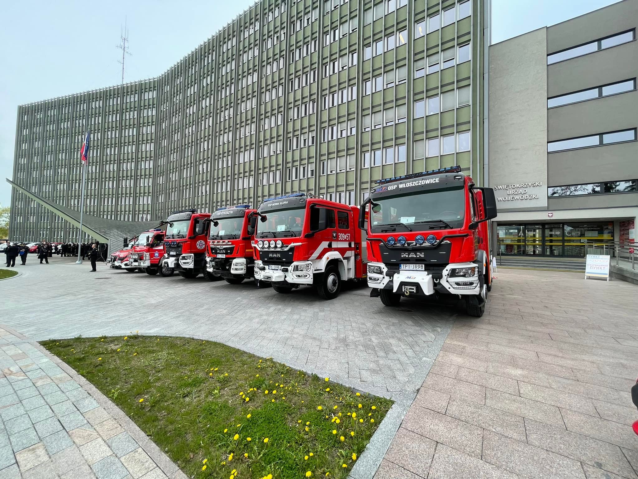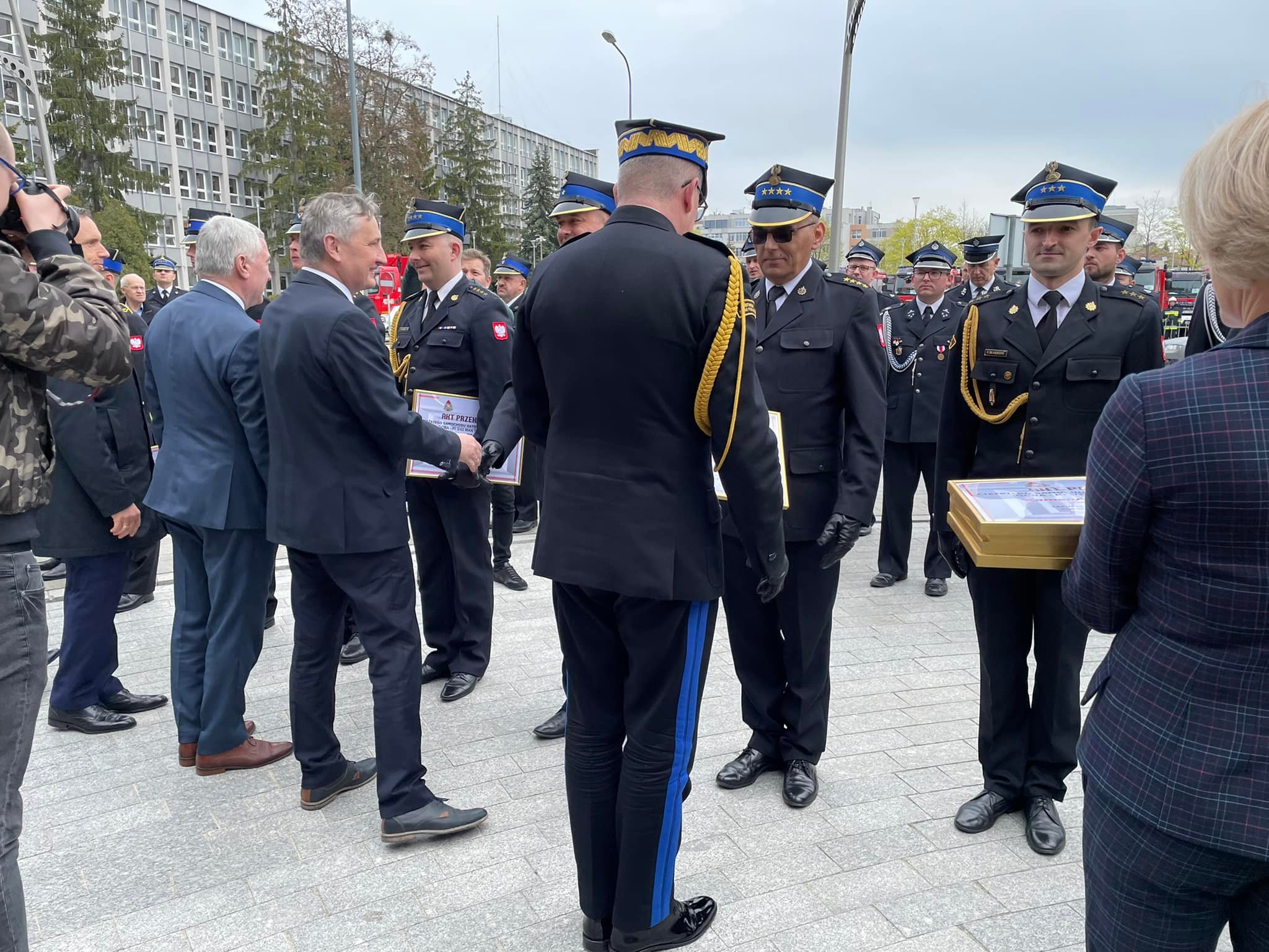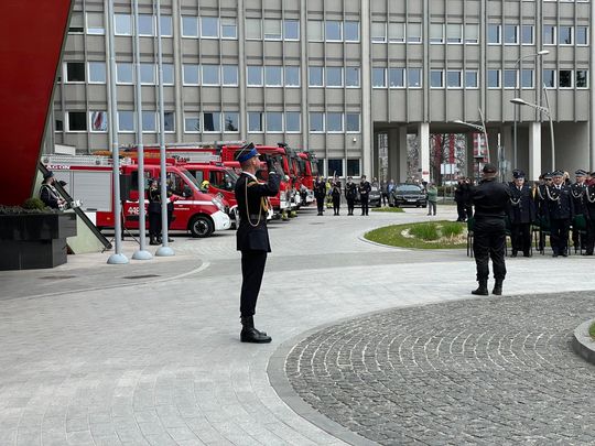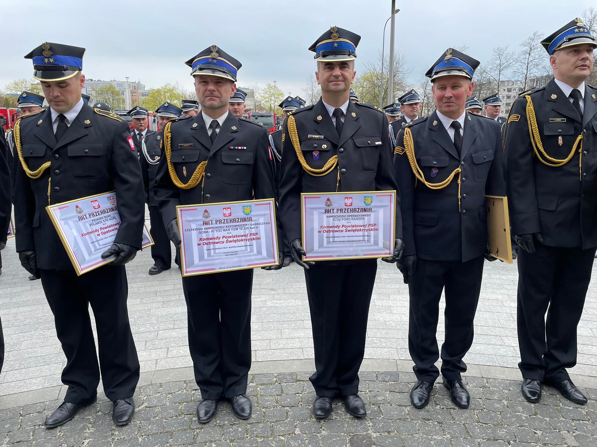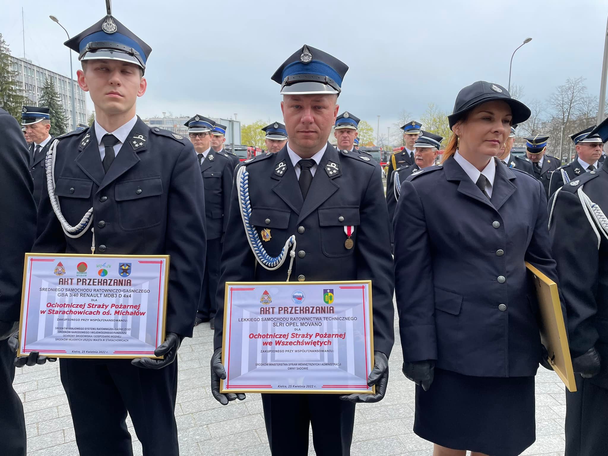 Akty przekazania wozów strażackich, promesy na zakup nowych pojazdów oraz decyzje o dodatku finansowym dla emerytowanych strażaków przekazano dziś na placu przy Świętokrzyskim Urzędzie Wojewódzkim w Kielcach.