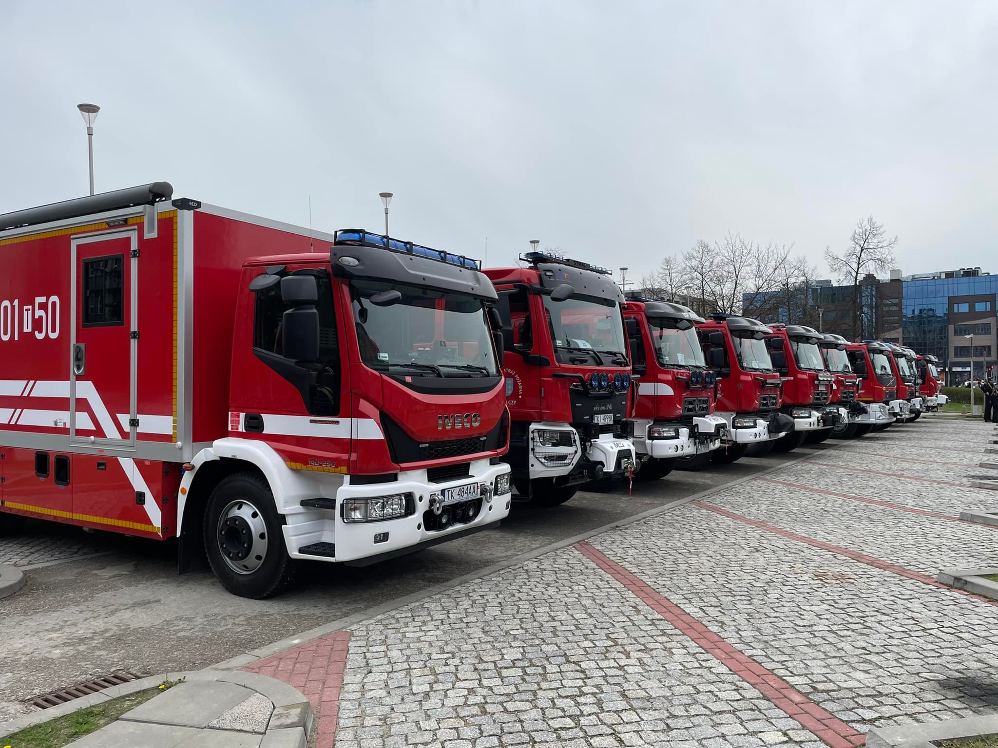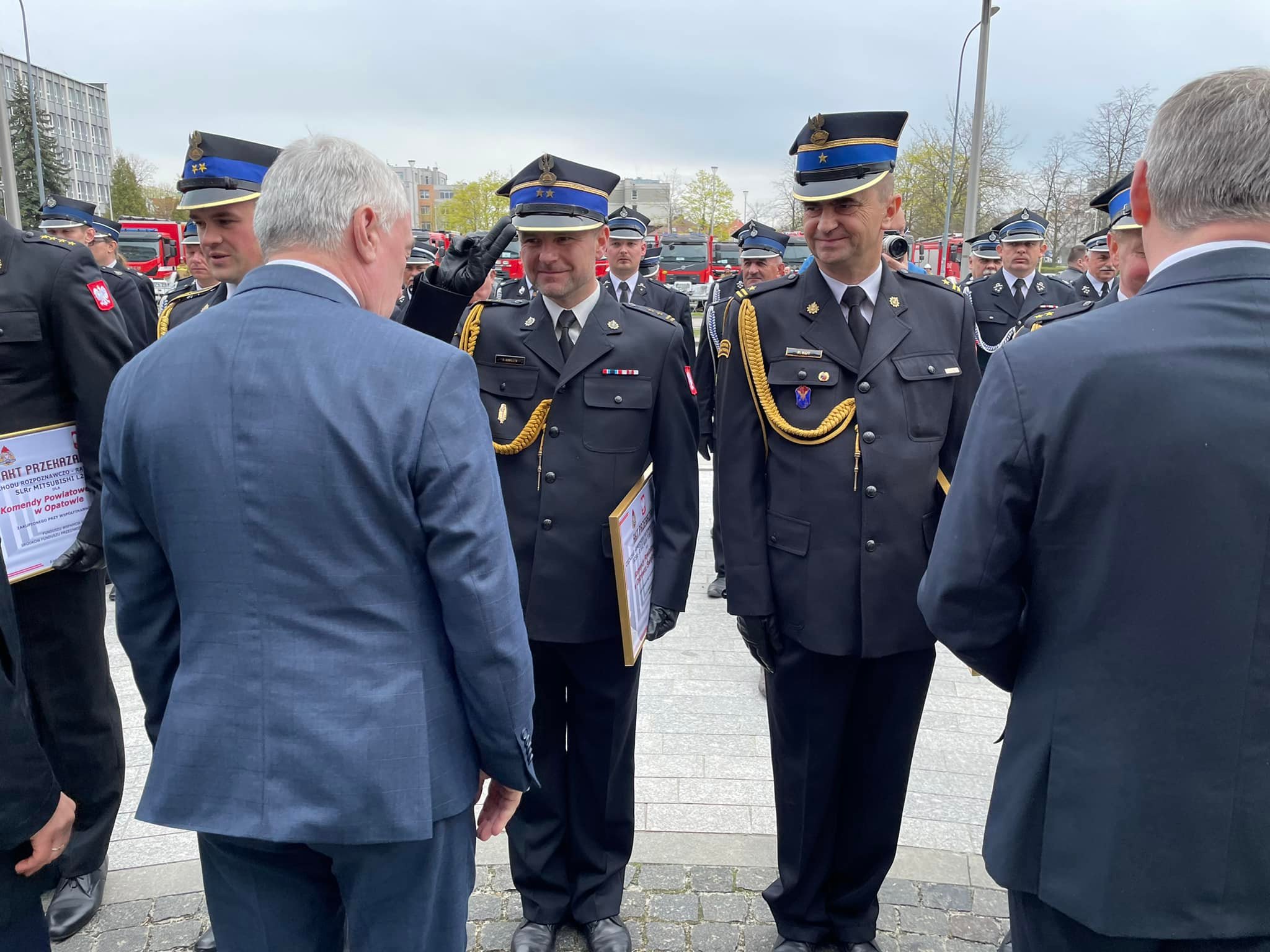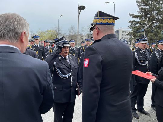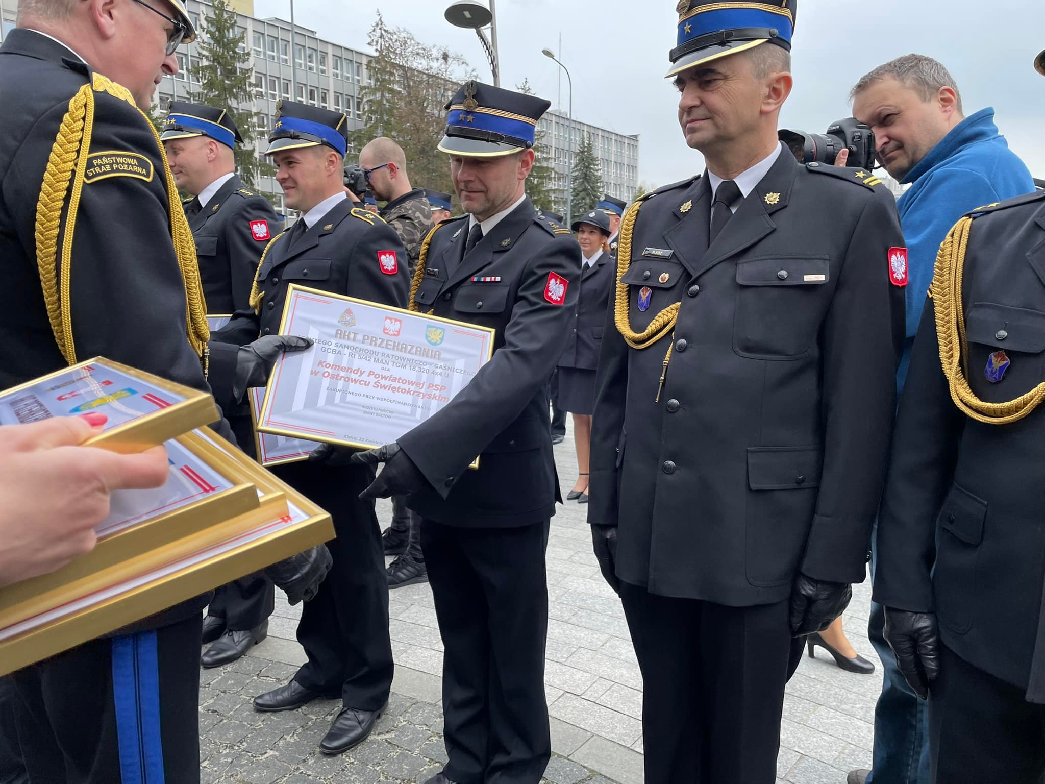 Akty przekazania wozów strażackich, promesy na zakup nowych pojazdów oraz decyzje o dodatku finansowym dla emerytowanych strażaków przekazano dziś na placu przy Świętokrzyskim Urzędzie Wojewódzkim w Kielcach.