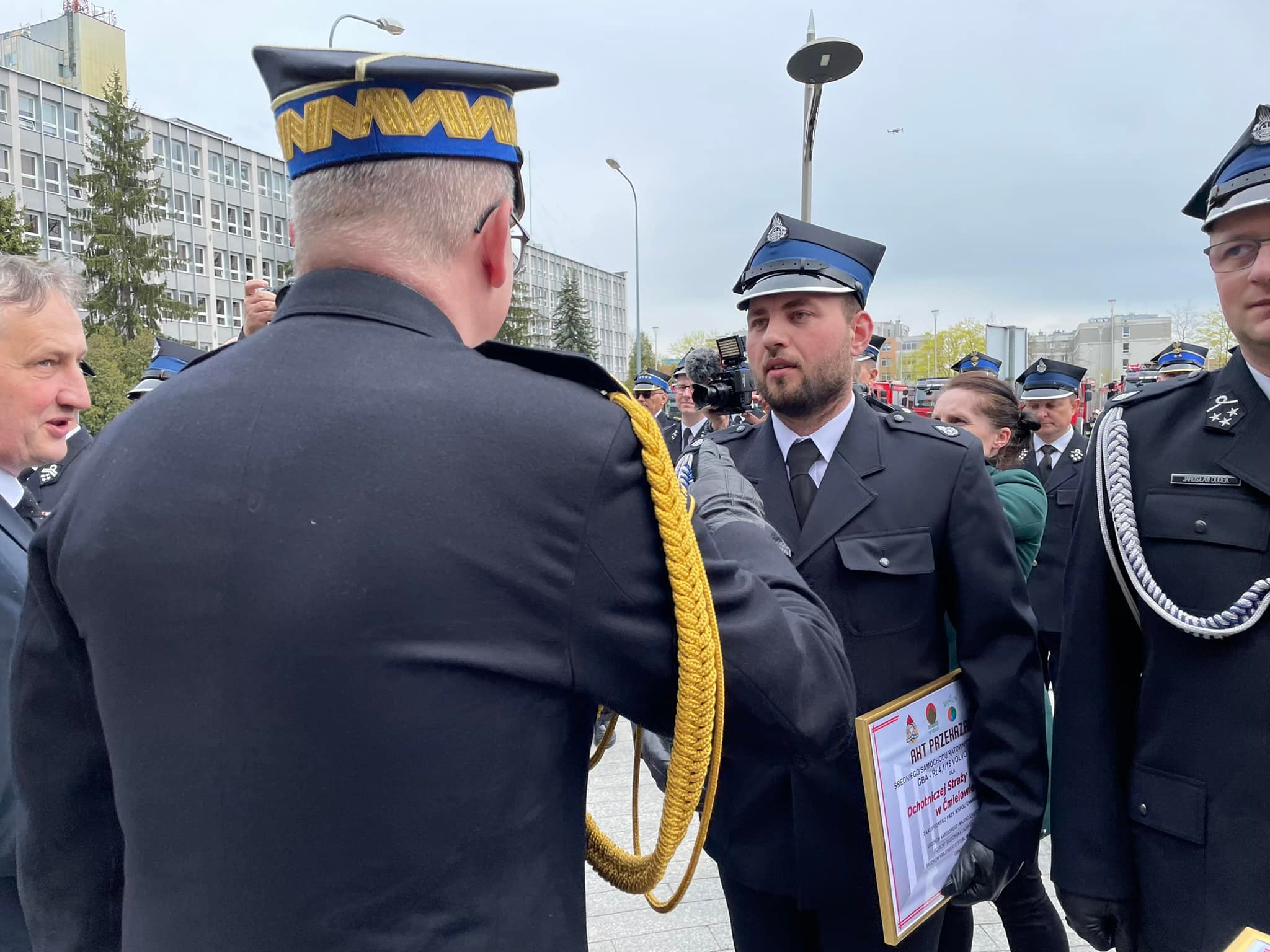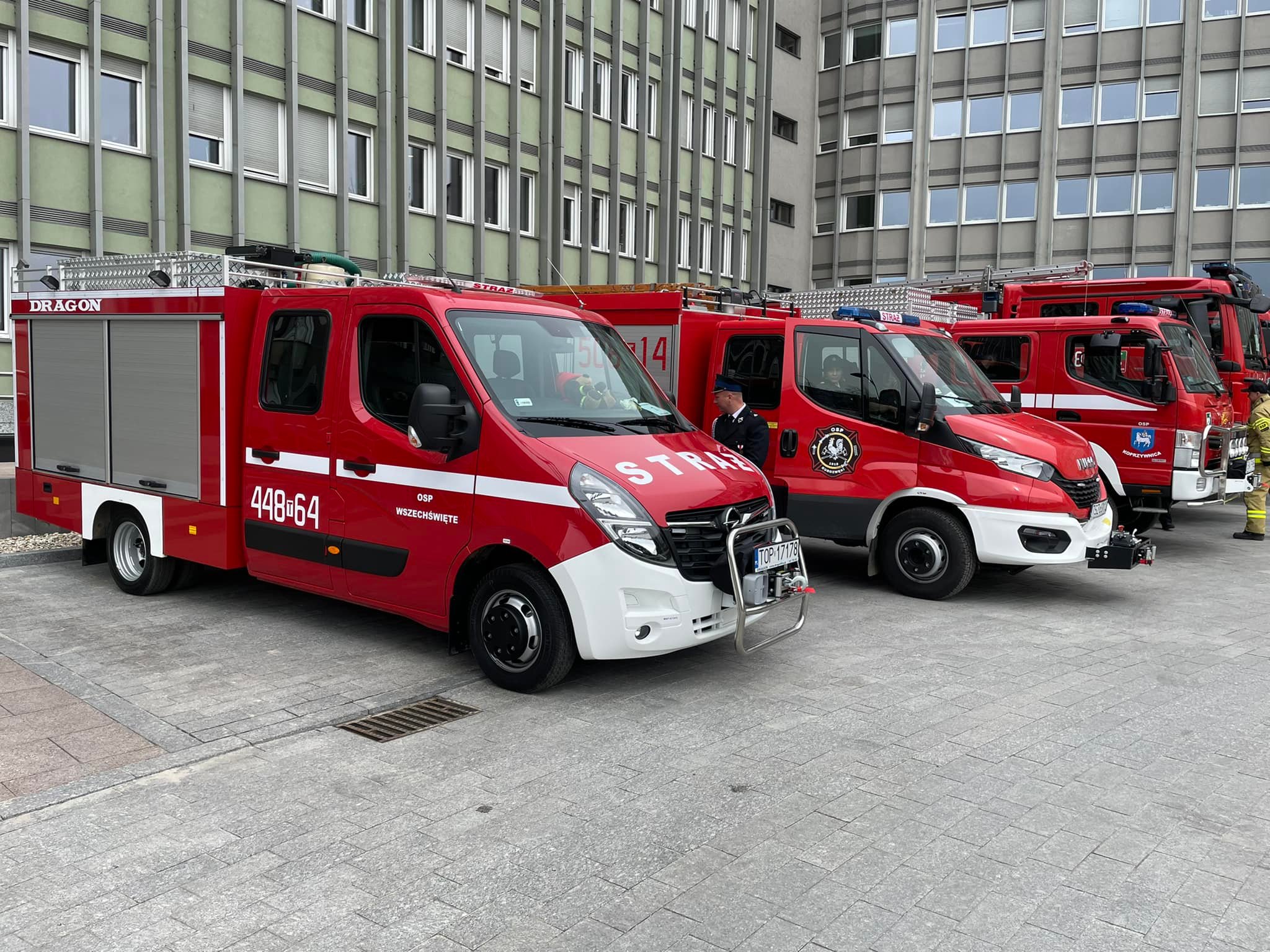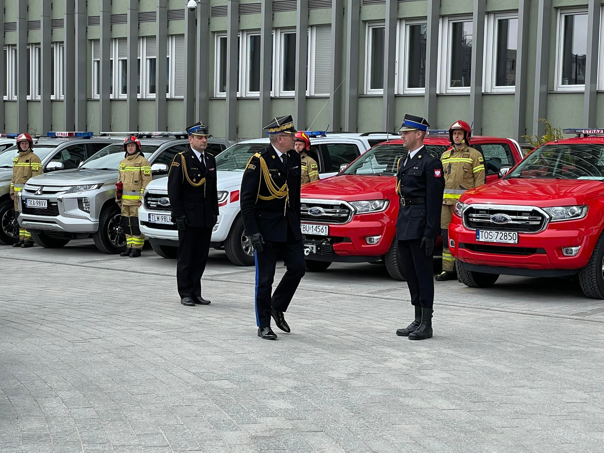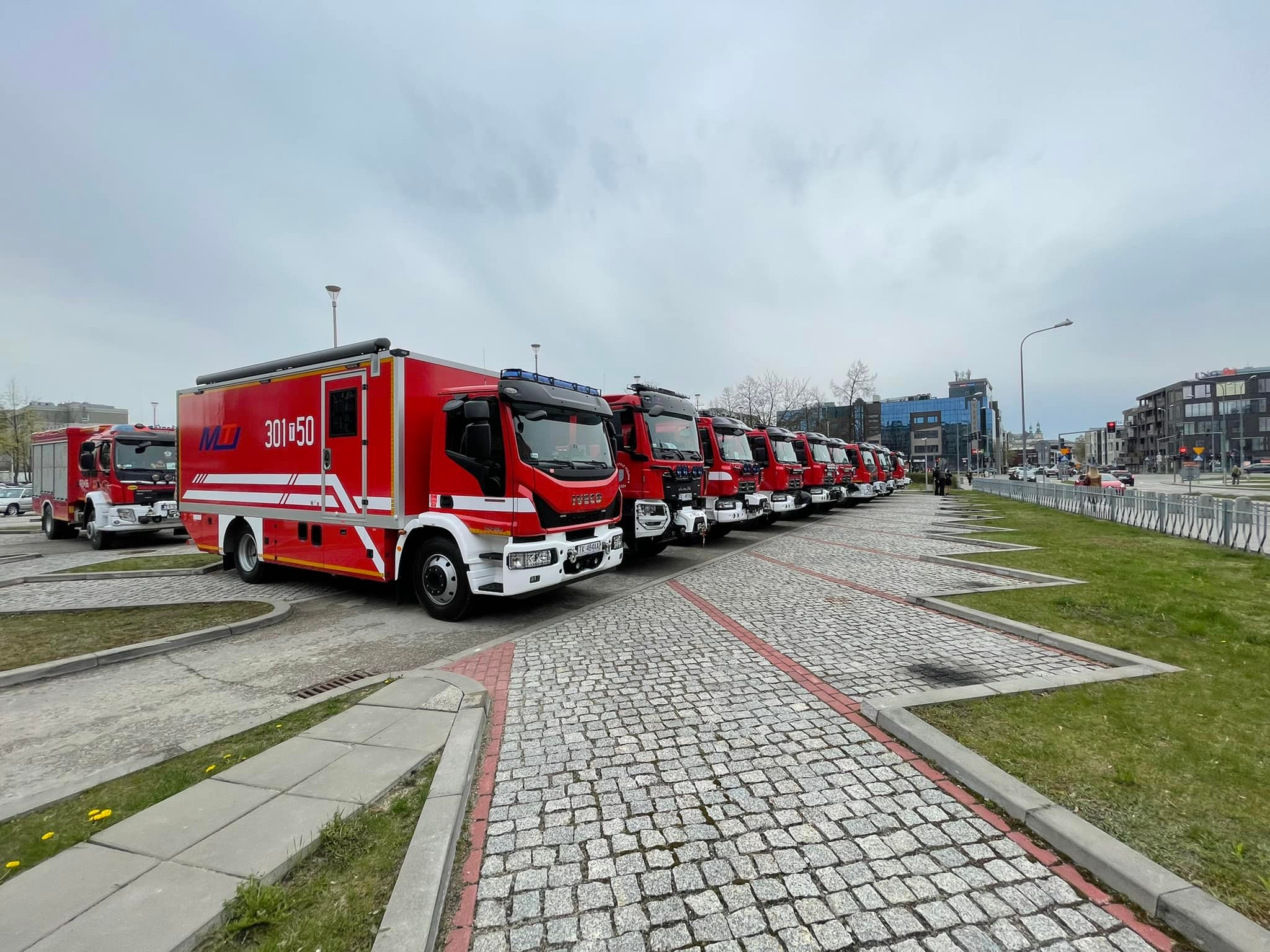Akty przekazania wozów strażackich, promesy na zakup nowych pojazdów oraz decyzje o dodatku finansowym dla emerytowanych strażaków przekazano dziś na placu przy Świętokrzyskim Urzędzie Wojewódzkim w Kielcach.