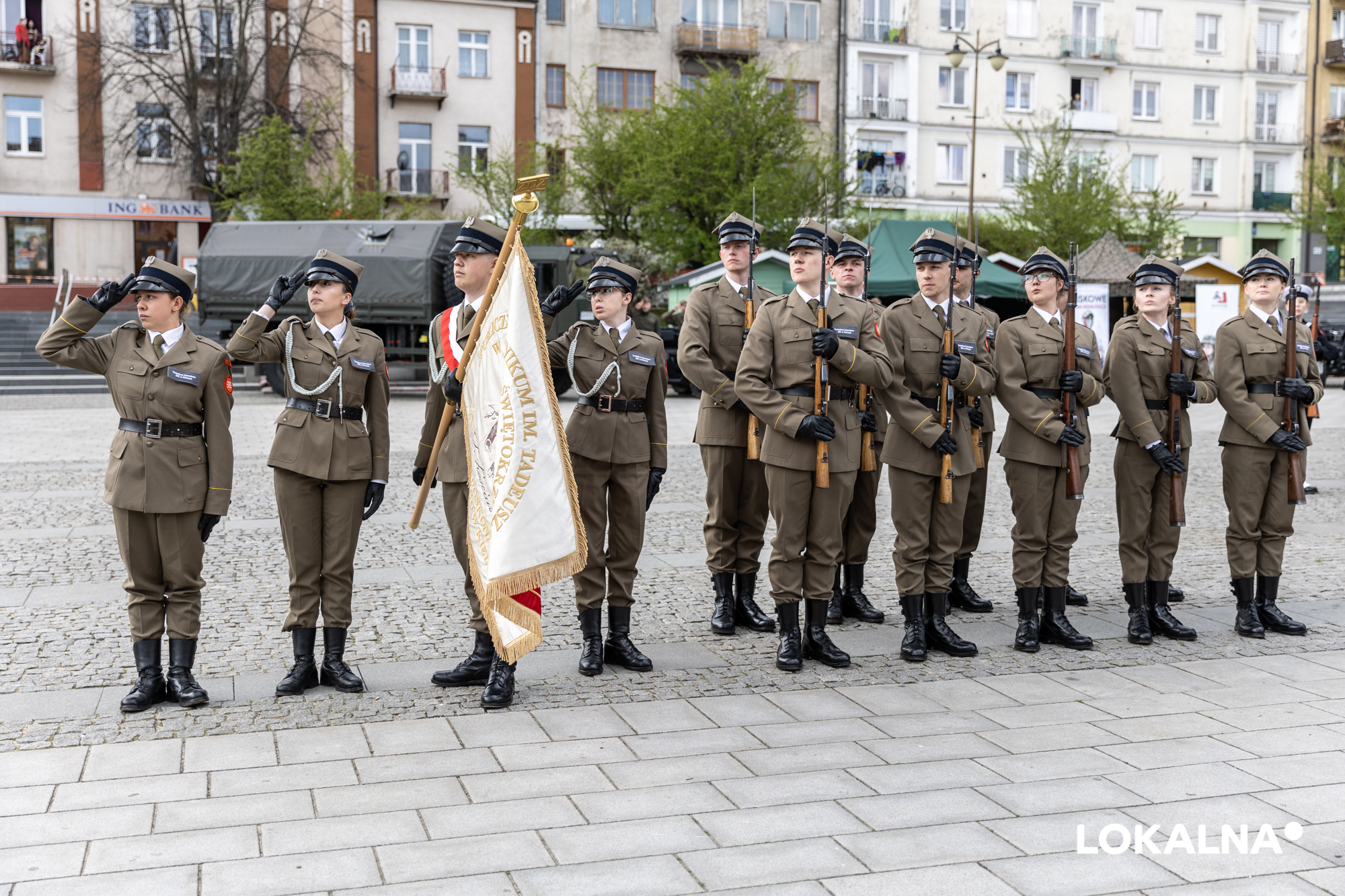 Zagrała Orkiestra Wojskowa Garnizonu Warszawskiego z Radomia, wystąpił zespół Aplauz z Krasocina, a pokaz historyczny zaprezentowała Chorągiew Ziemi Sandomierskiej. Wszystko to w ramach uroczystego ślubowania klas pierwszych Niepublicznego Technikum im. Tadeusza Kościuszki w Ostrowcu Świętokrzyskim. Nie zabrakło także grupy rekonstrukcyjnej Kościuszkowcy, która często bierze udział w uroczystościach miejskich i patriotycznych.