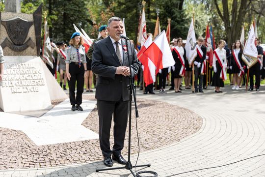 Dzisiaj świętujemy w bardzo znaczącym czasie. Jeszcze kilka miesięcy temu nie myśleliśmy chyba, że przyjdzie nam świętować w sytuacji kiedy za naszą wschodnią granicą trwa tak krwawa i tragiczna wojna. Wojna, którą narodowi ukraińskiemu przyniósł naród rosyjski, władze Rosji, prezydent Putin. To kolejna nauka dla nas. Na wschodzie zmieniają się władcy, czy to car, czy to Stalin, czy to Putin, państwo rosyjskie jest zagrożeniem dla demokracji. Państwo rosyjskie jest zagrożeniem dla suwerenności Polski i to powinniśmy zawsze mieć na względzie.