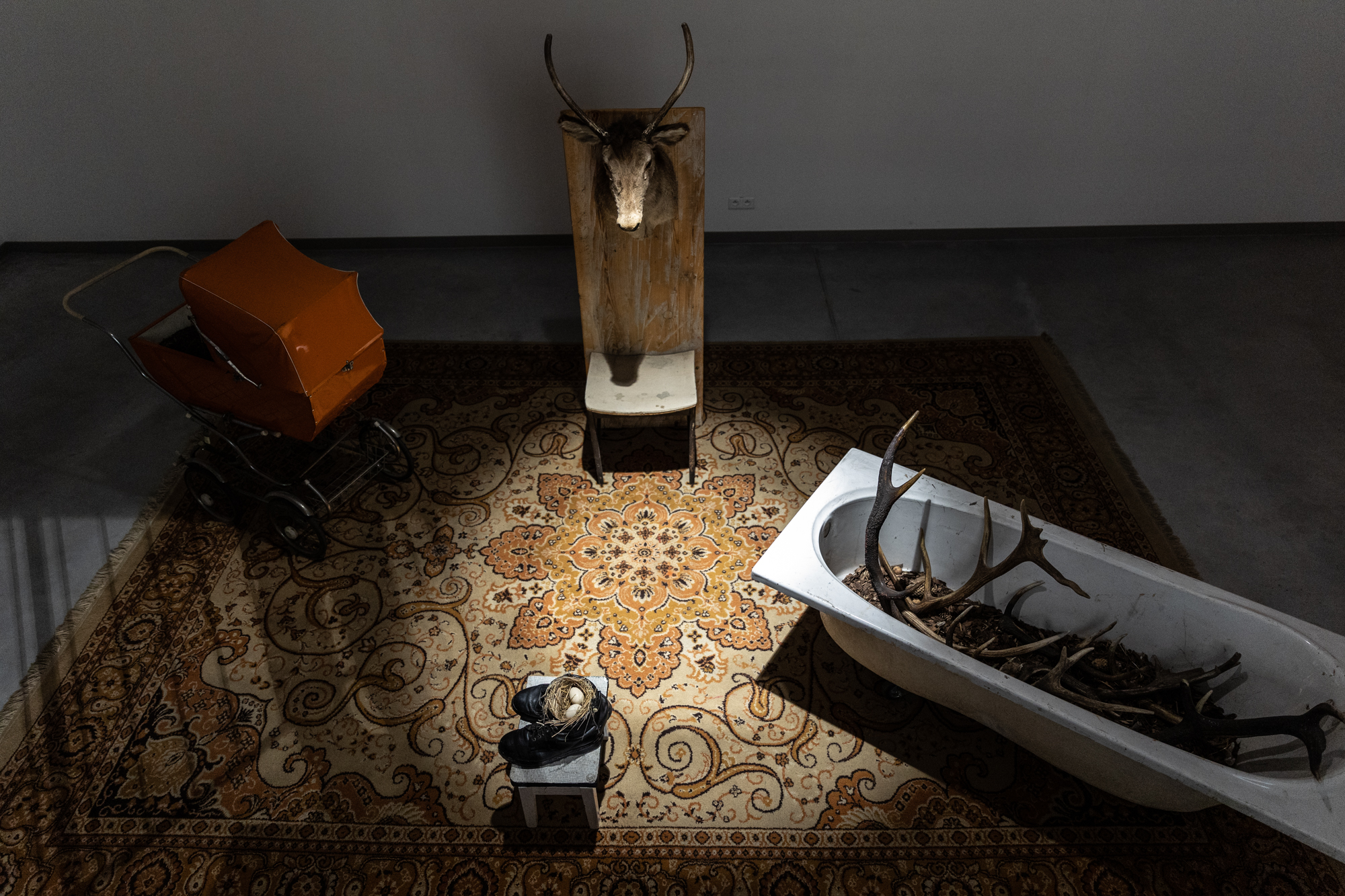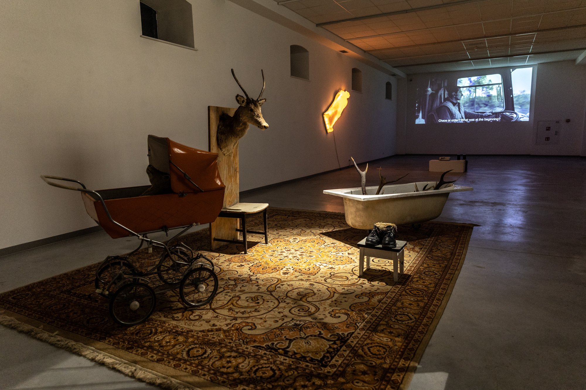 Główne wyznaczniki wystawy to wielowymiarowość, materialność i niematerialność. Artysta eksponuje pięć kategorii tematycznych: materializacja słowa, życie po życiu, obszar świata fauny, pole koloru, współistnienie ludzi i zwierząt.