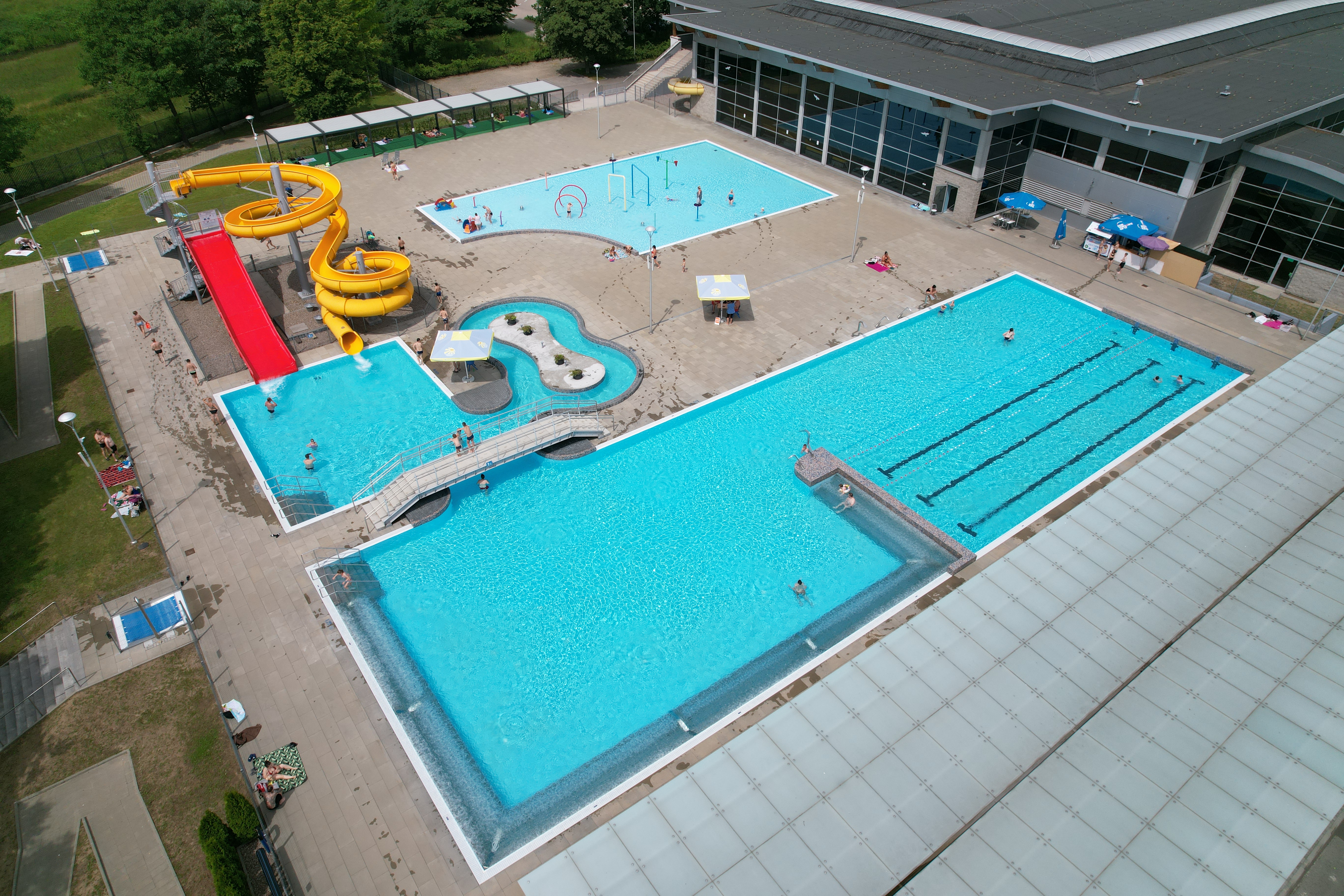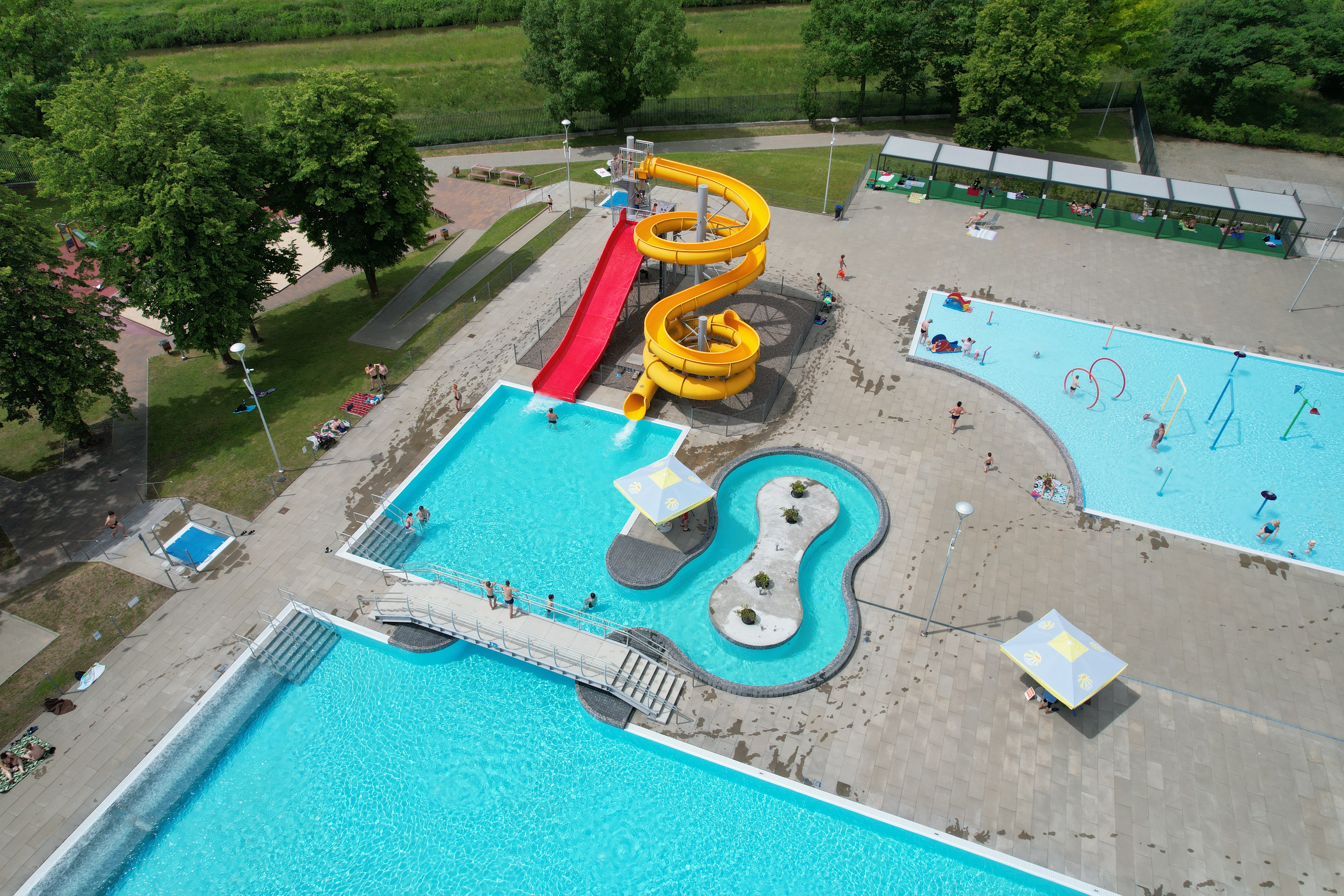 Do dyspozycji miłośników kąpieli pod chmurką są trzy baseny: głęboki, brodzik i sztuczna rzeka oraz strefa z łóżkami wodnymi i zjeżdżalniami. Woda w brodziku i głównym basenie jest podgrzewana do 24 stopni.
