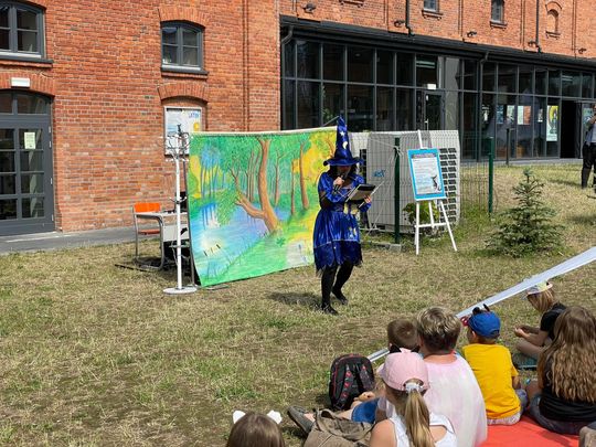 W czwartek (14 lipca) na dziedzińcu Ostrowieckiego Browaru Kultury przed najmłodszymi czytelnikami wystąpili aktorzy z krakowskiego Teatru Maska. Zaprezentowali oni spektakl pt. „Magiczna Księga”. Biblioteka pomysłów na promowanie czytelnictwa wśród dzieci ma jednak więcej. Jednym z nich są zajęcia pod hasłem „Książka pod chmurką” połączone z elementami multisensoryki. (zobacz wideo)