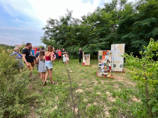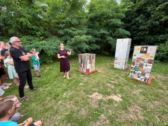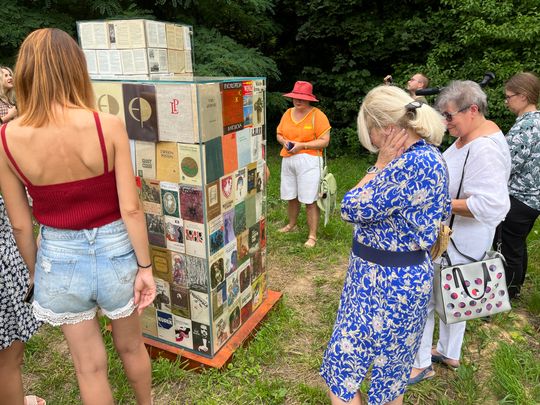 Pomysł na pomnik, to jest realizacja snu. Mojemu ojcu przyśnił się taki pomnik. Wtedy we śnie to były duże zbiorniki szklane, wypełnione po brzegi książkami, które stały na tle lasu