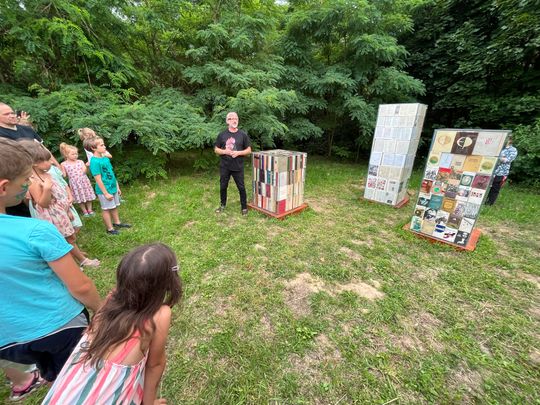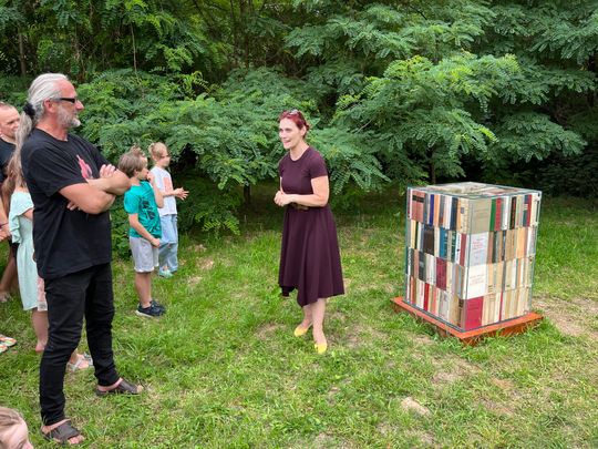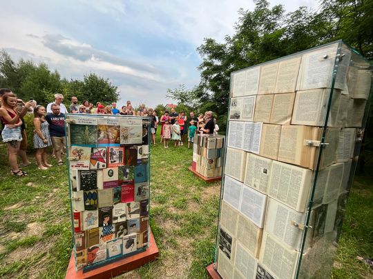 - mówi Piotr Kogut, który senne marzenie swojego ojca postanowił urzeczywistnić. W realizację pomysłu zaangażowali się bardzo szybko przyjaciele państwa Kogutów i miłośnicy książek. W szklanych bryłach znalazło się około 3 tys. książek, dobranych, posortowanych, i uporządkowanych, niczym katalog.