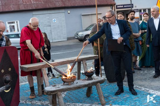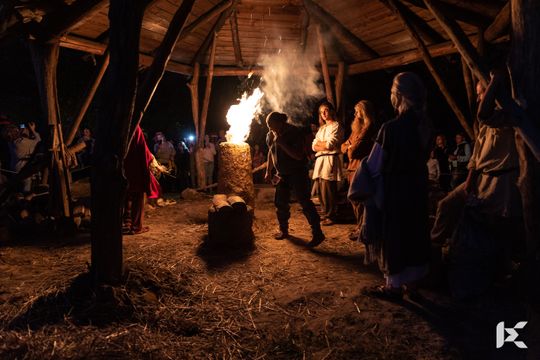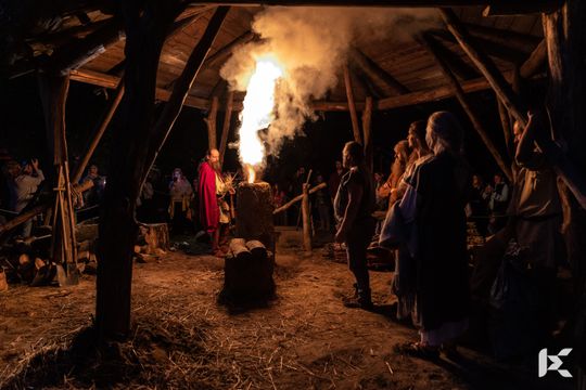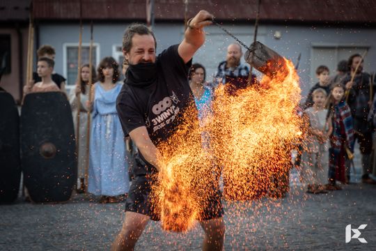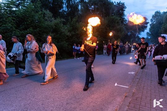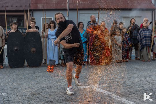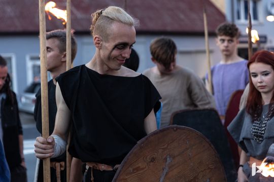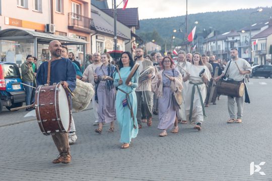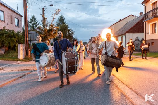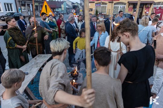 Po krótkim pokazie uczestnicy z Rynku w Nowej Słupi wyruszyli z pochodniami do Centrum Kulturowo-Archeologicznego.