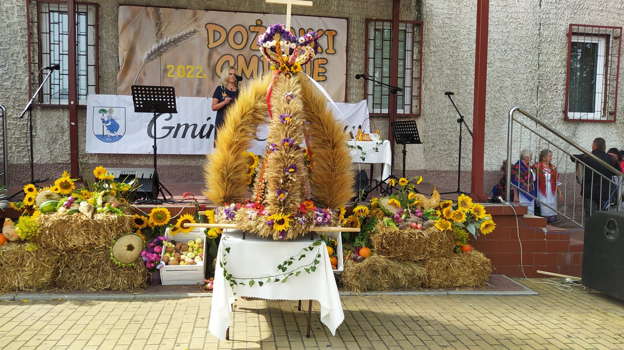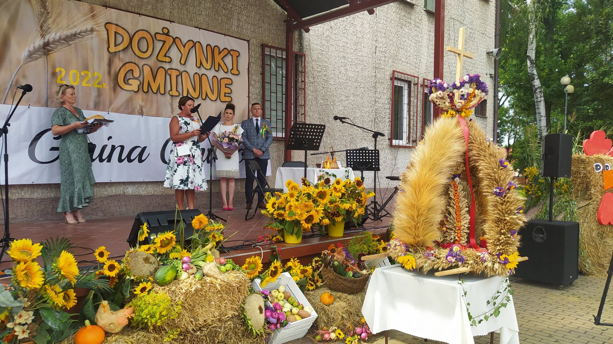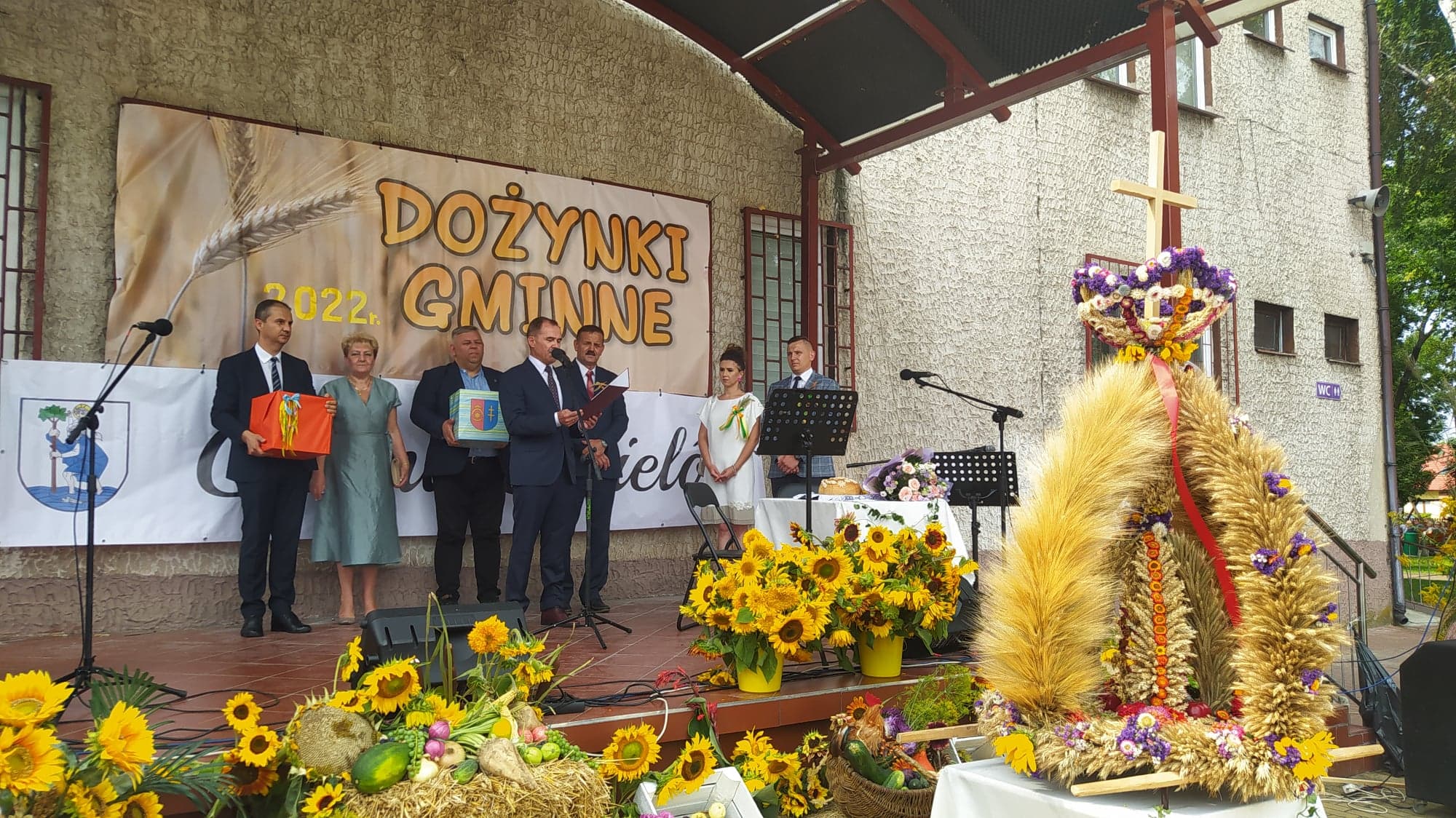 Gminne dożynki, w tym roku zorganizowano na placu w centrum miasteczka. Scena została udekorowana kwiatami, owocami i warzywami. Zaś w centralnym miejscu został postawiony wieniec dożynkowy, wykonany przez panie z KGW Boria. Zaszczyt tradycyjnego ośpiewania wieńca w tym roku przypadł zespołowi „Borowianki” . Na scenie zaprezentował się też chór środowiskowy „Jutrzenka”.