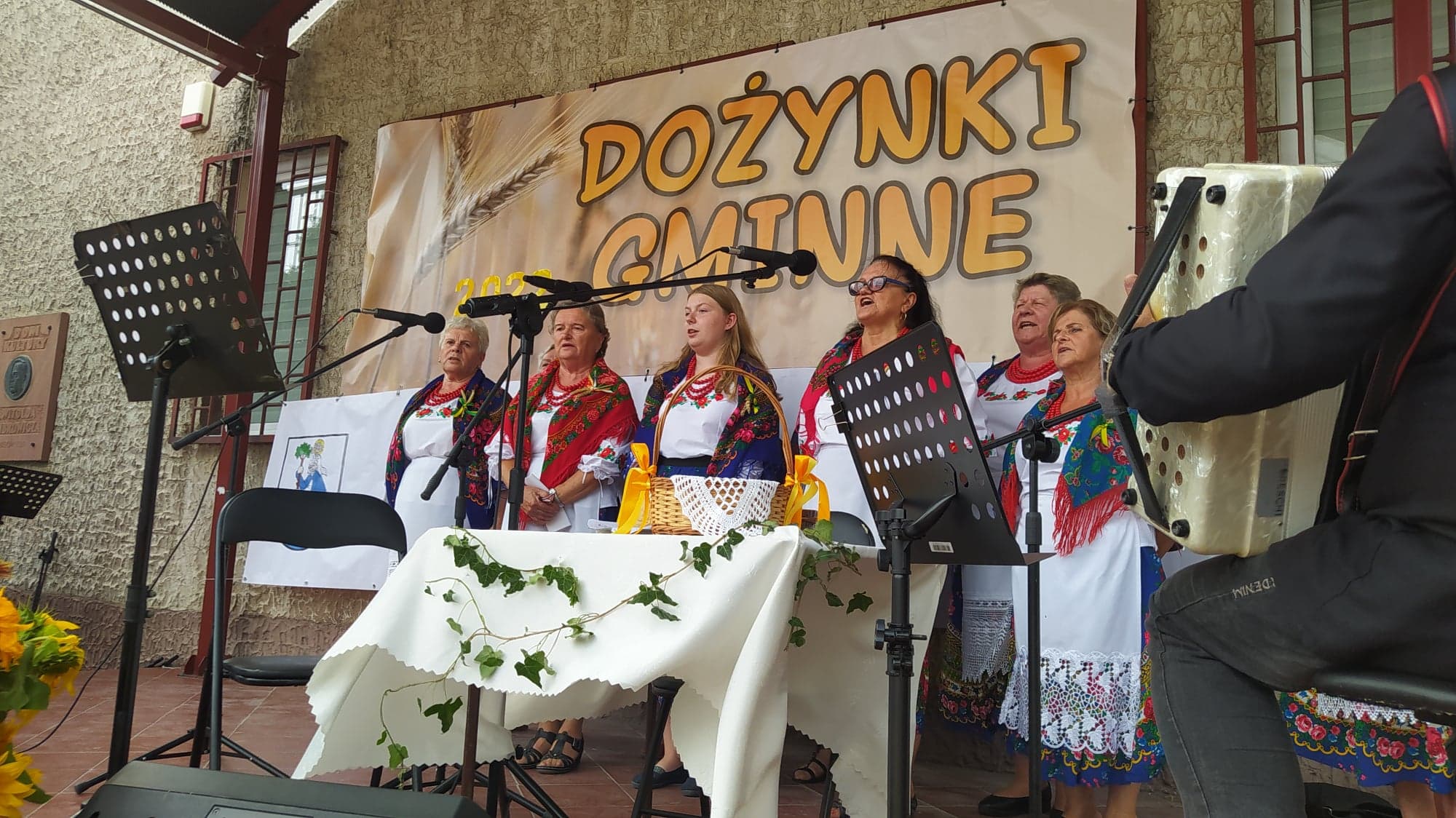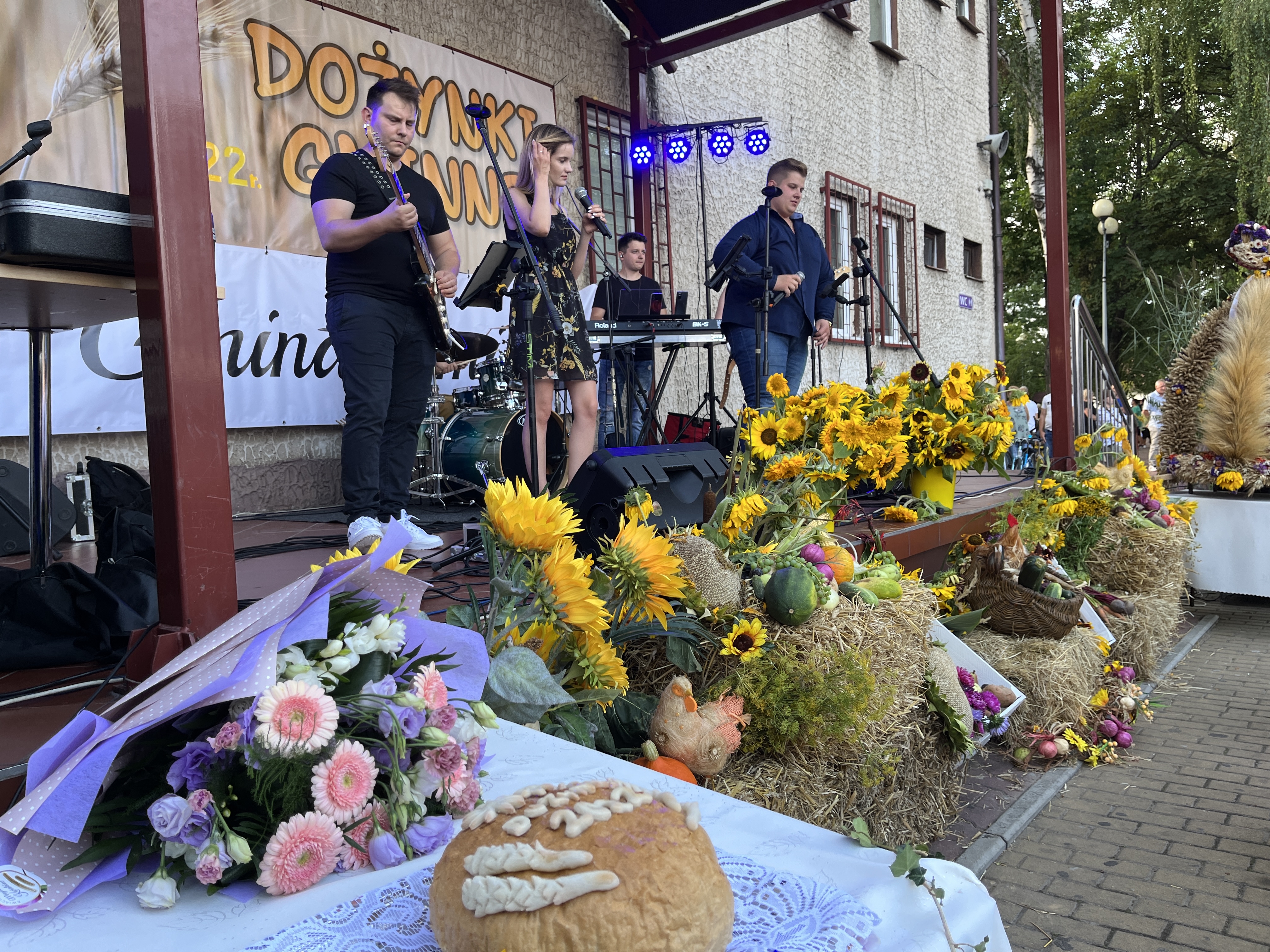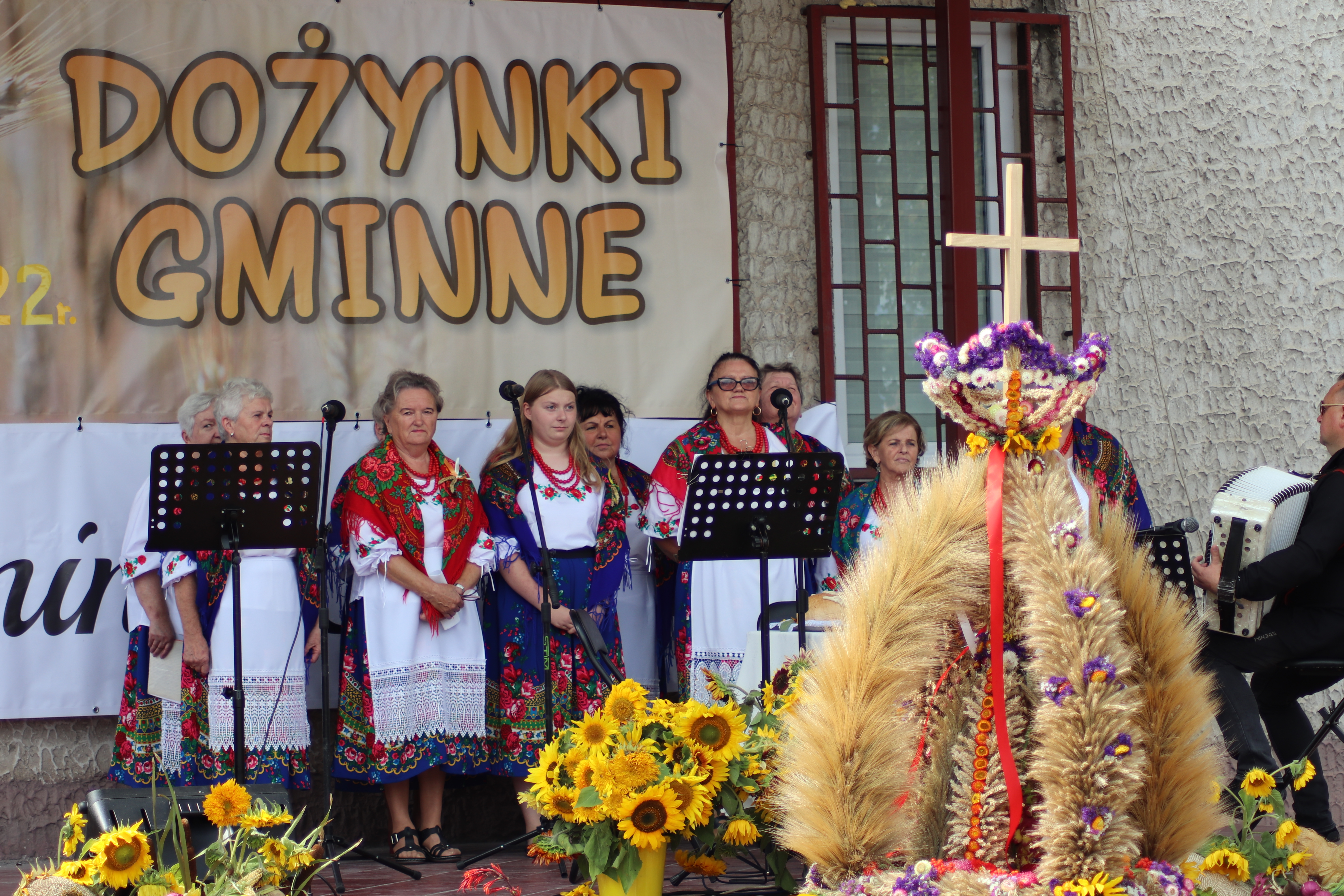 Gminne dożynki, w tym roku zorganizowano na placu w centrum miasteczka. Scena została udekorowana kwiatami, owocami i warzywami. Zaś w centralnym miejscu został postawiony wieniec dożynkowy, wykonany przez panie z KGW Boria. Zaszczyt tradycyjnego ośpiewania wieńca w tym roku przypadł zespołowi „Borowianki” . Na scenie zaprezentował się też chór środowiskowy „Jutrzenka”.
