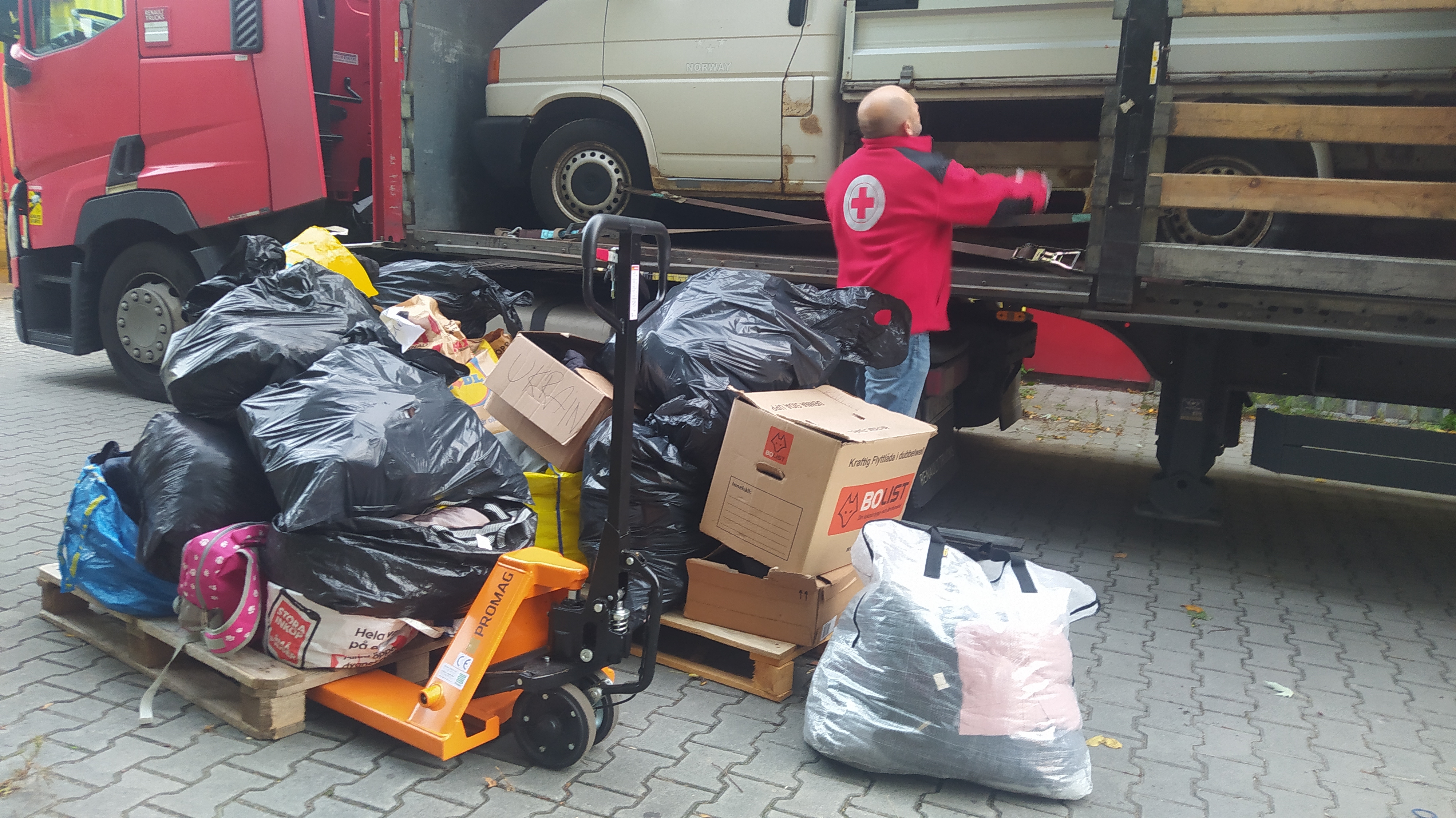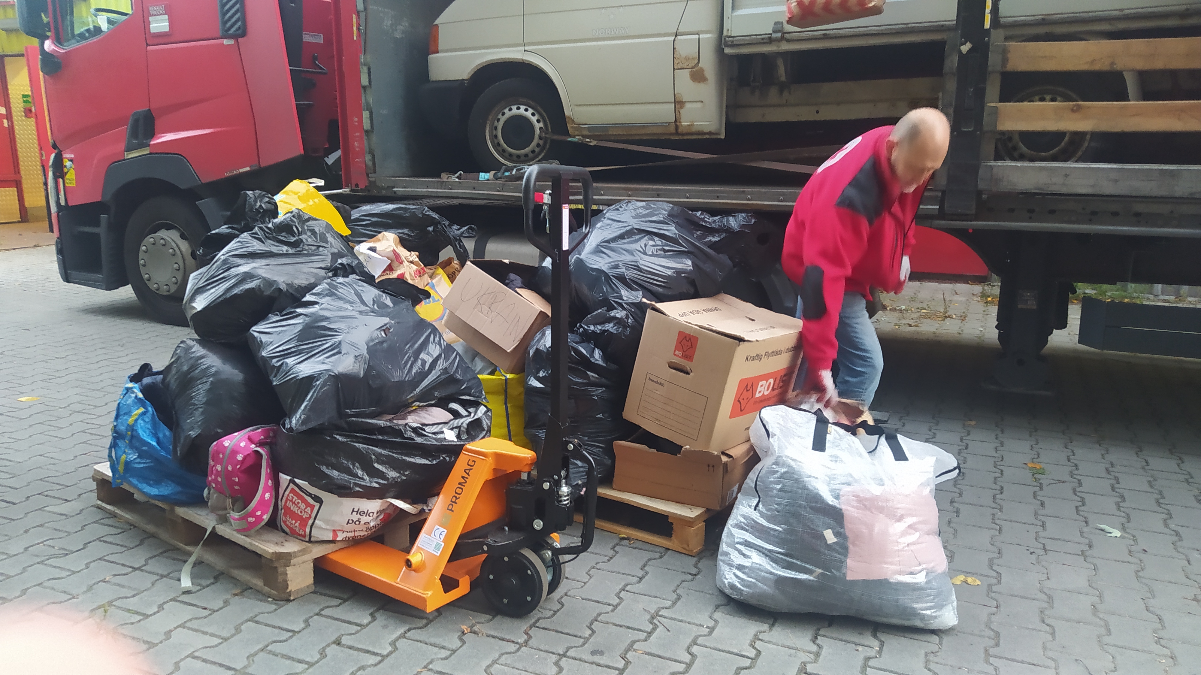 Pan Kris Cebula we wrześniu skontaktował się z nami i zapytał, czego potrzebujemy dla rodzin ukraińskich. Wskazaliśmy, że najbardziej to zimowej odzieży oraz butów dla dzieci. Wspólnie ze swoimi dziećmi, przy współpracy dwóch szwedzkich szkół zorganizował zbiórkę. To już kolejna pomoc, która przyjechała do naszego punktu ze Szwecji