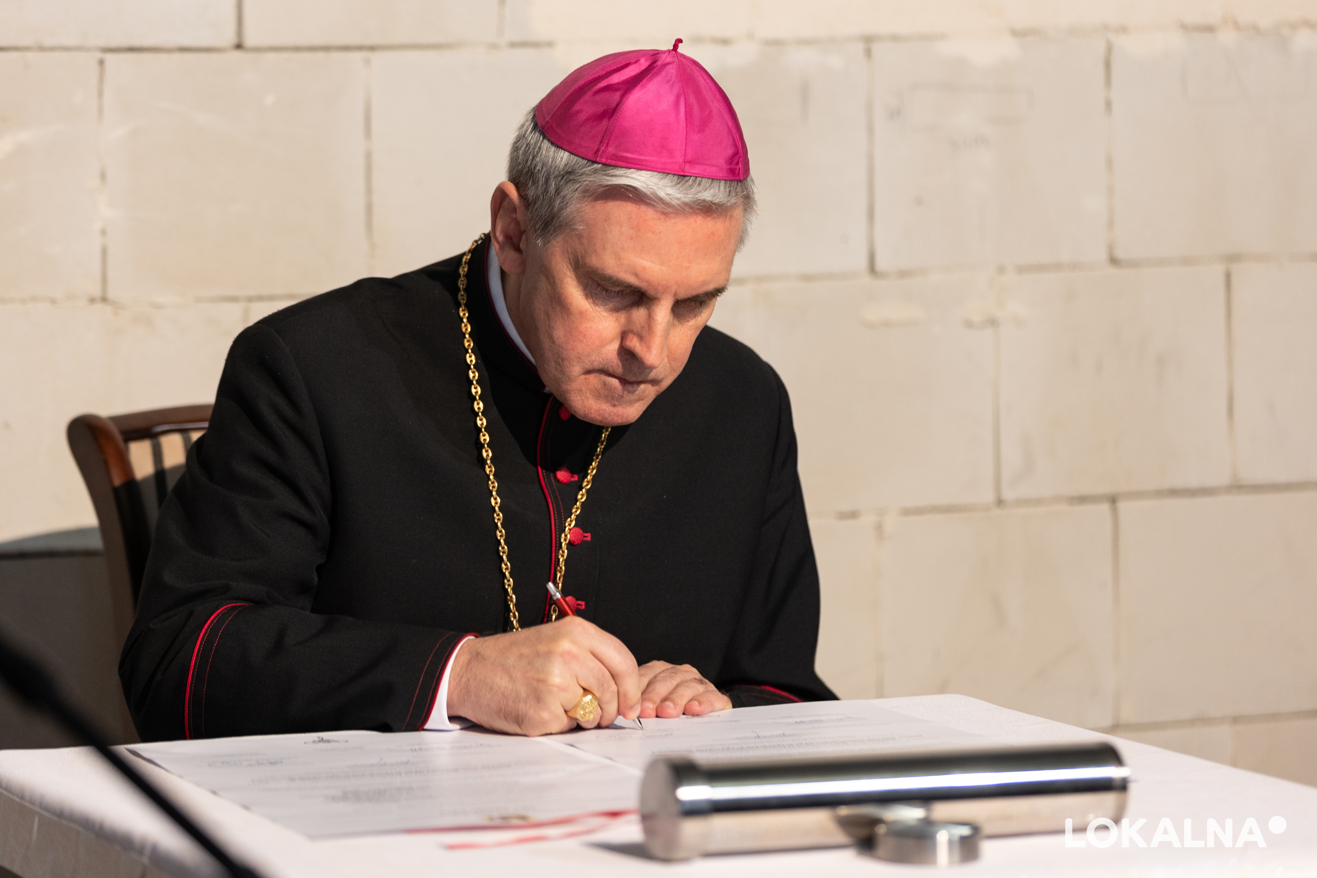 W uroczystości wmurowania aktu erekcyjnego obok ministra kultury - Piotra Glińskiego i parlamentarzystów: senatora Jarosława Rusieckiego i posła Andrzeja Kryja wzięli udział również samorządowcy - starosta ostrowiecki Marzena Dębniak oraz prezydent Ostrowca Świętokrzyskiego Jarosław Górczyński. Poświęcenia dokonał biskup sandomierski Krzysztof Nitkiewicz. Te osoby, obok dyrektor szkoły Ewy Jurkowskiej-Siwiec, złożyły również podpis pod dokumentem aktu erekcyjnego.