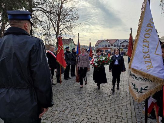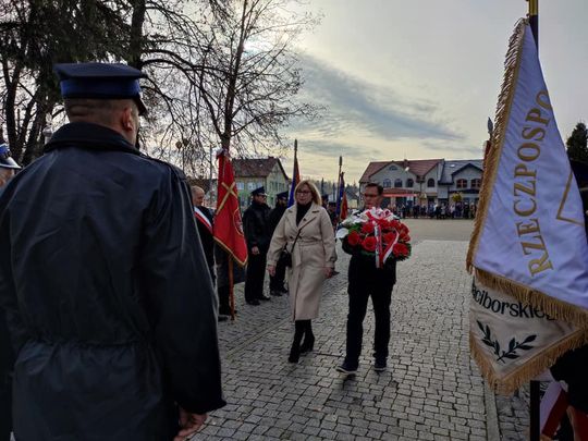 Po nabożeństwie celebrowanym przez księdza Pawła Marka uczestnicy obchodów w asyście orkiestry dętej przeszli na Rynek. Pod pomnikiem Bojowników o Niepodległość odbyła się dalsze część uroczystości.