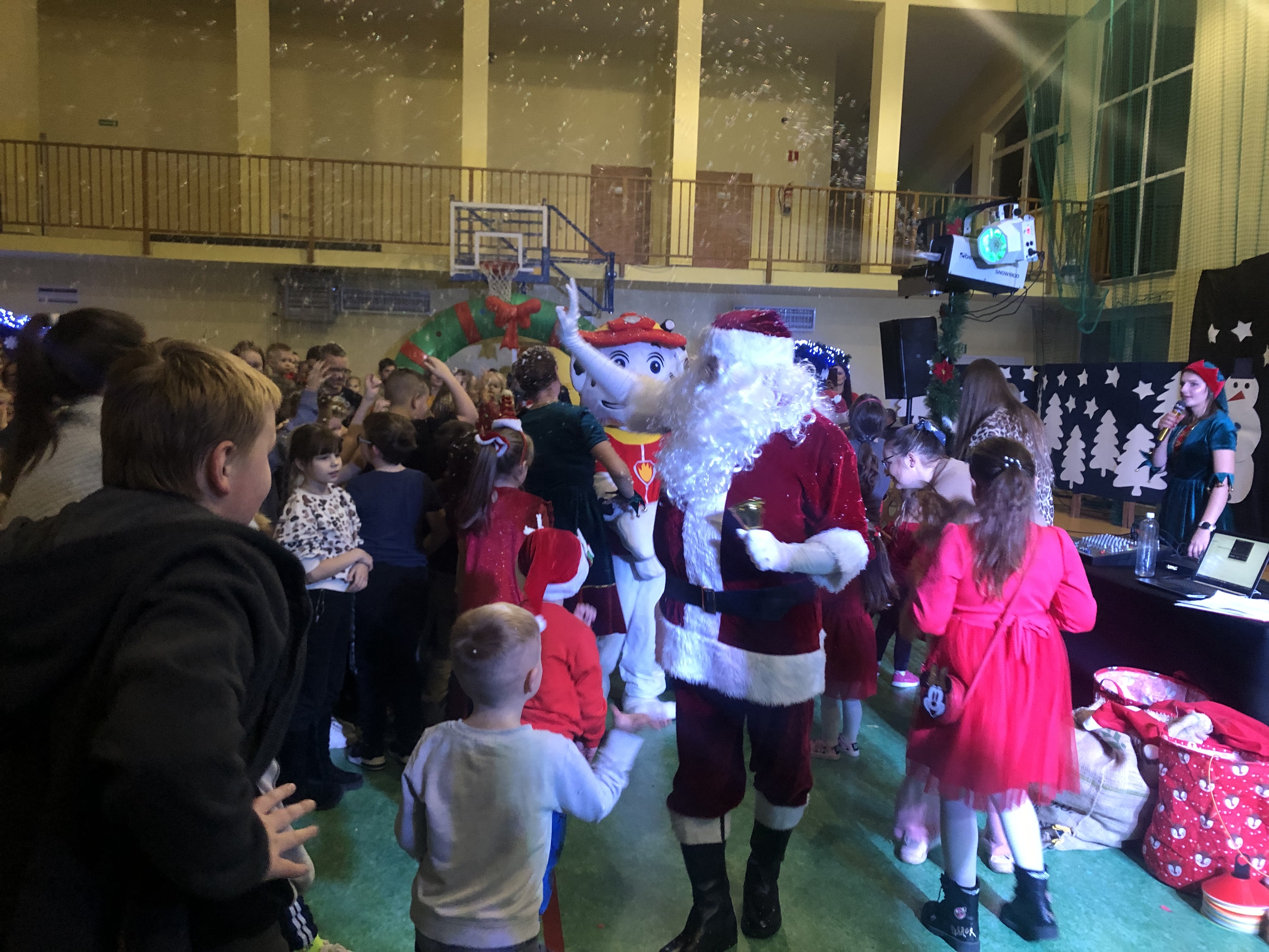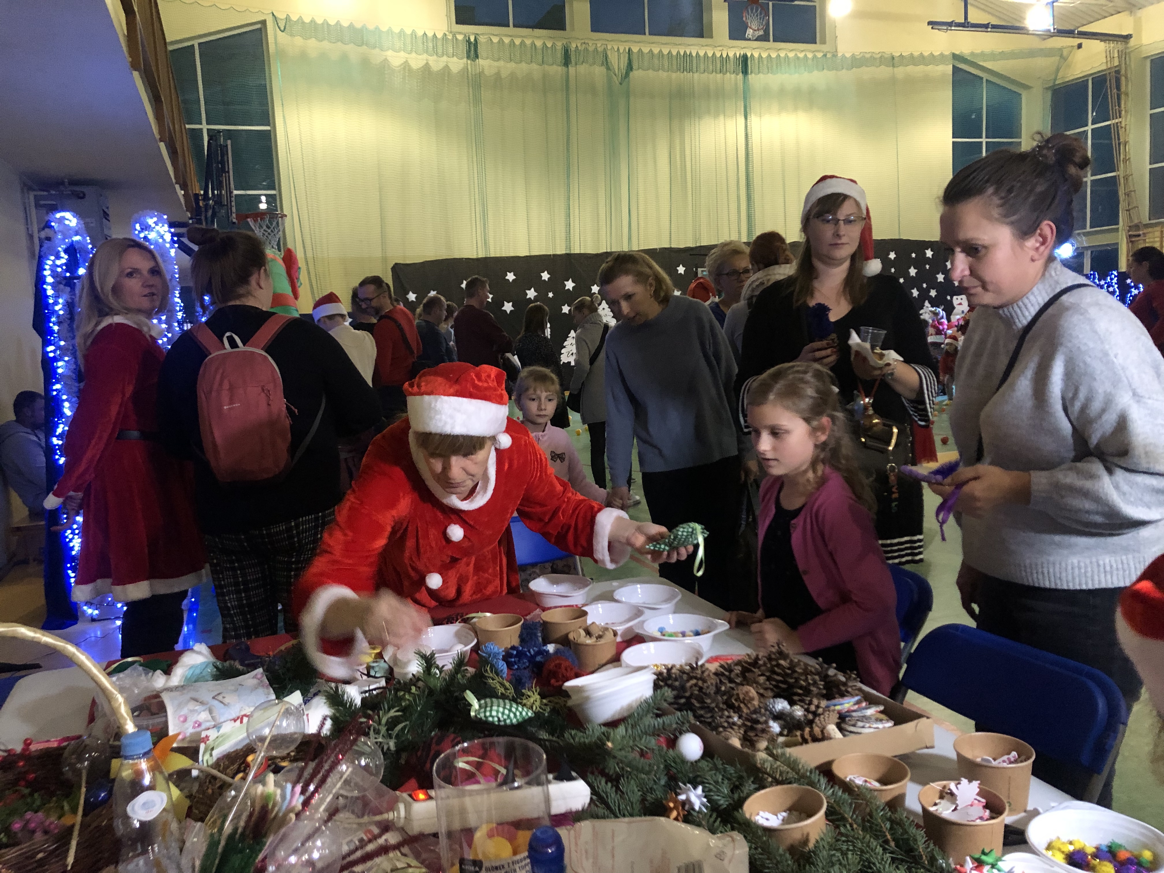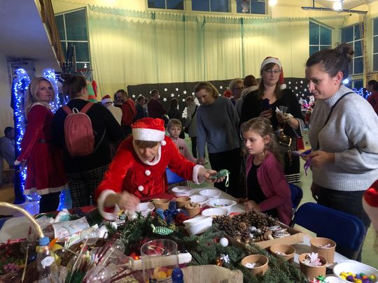 Był bajkowy wystrój i mnóstwo atrakcji dla dzieci. W oczekiwaniu na Mikołaja, maluchów zabawiały śnieżynki. Dzieci pod okiem pań z domu kultury mogły samodzielnie wykonać ozdoby świąteczne lub udekorować ciasteczka, z pomocnicami Mikołaja robiły mydełka, malowały ozdoby choinkowe. Ale atrakcją najbardziej obleganą okazała się dmuchana zjeżdżalnia.