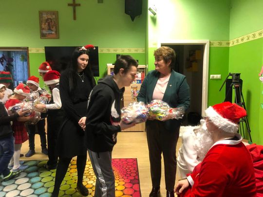 Wspólnie ze starostą, Mikołajowie pomagali Agnieszka Rogalińska i Łukasz Dybiec, członkowie Zarządu Powiatu Ostrowieckiego oraz Joanna Pikus, dyrektor PCPR w Ostrowu Świętokrzyskim.