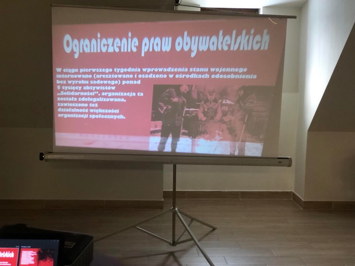 Pokazanie zbiorów ożarowskiej "Solidarności" zostało połączone z prezentacją, którą przygotowali uczniowie Liceum Ogólnokształcącego w Opatowie, a dotyczącą stanu wojennego. Do udziału w tej nietypowej lekcji historii została zaproszona młodzież klas ósmych opatowskich szkół.