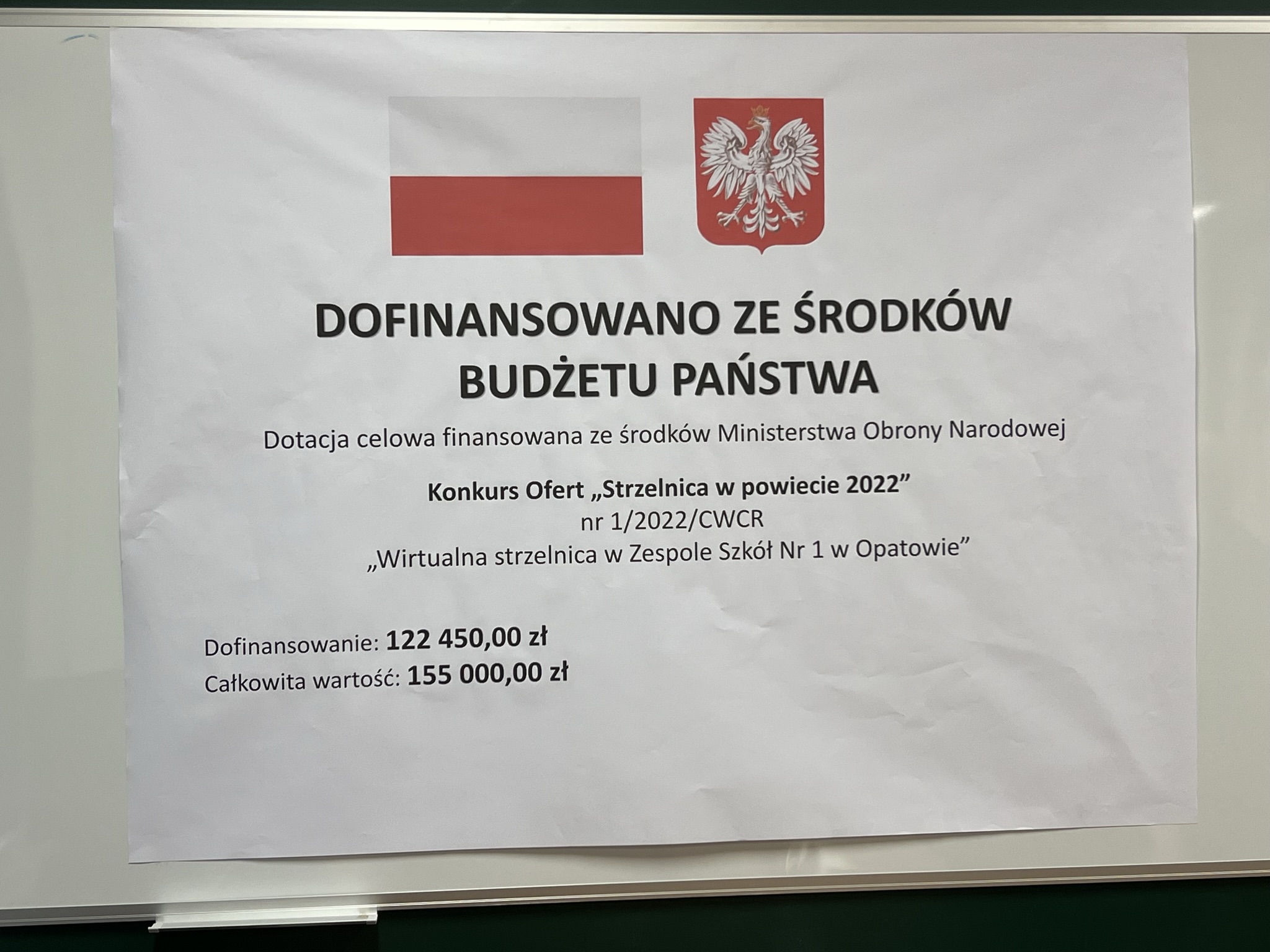 Powiat Opatowski na zorganizowanie wirtualnej strzelnicy w „szkole na górce” otrzymał 122 450 złotych z Ministerstwa Obrony Narodowej. Z własnego budżetu wyłożył 32 550 złotych.