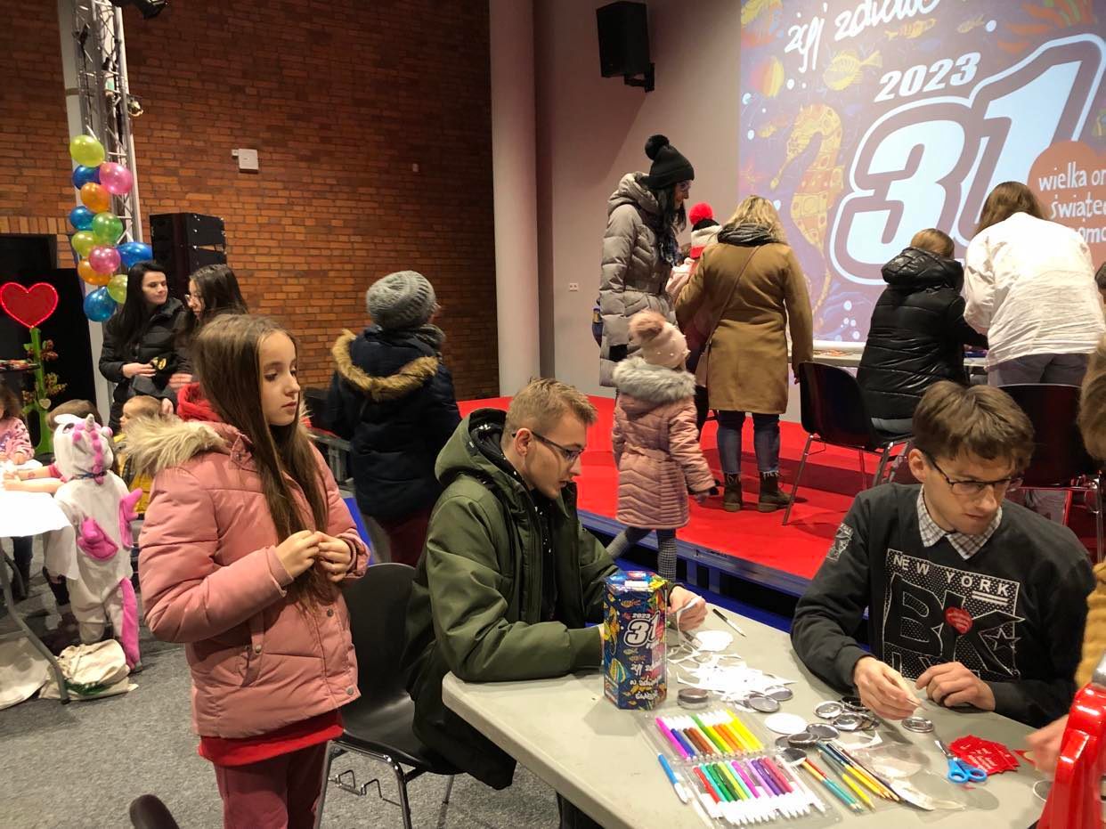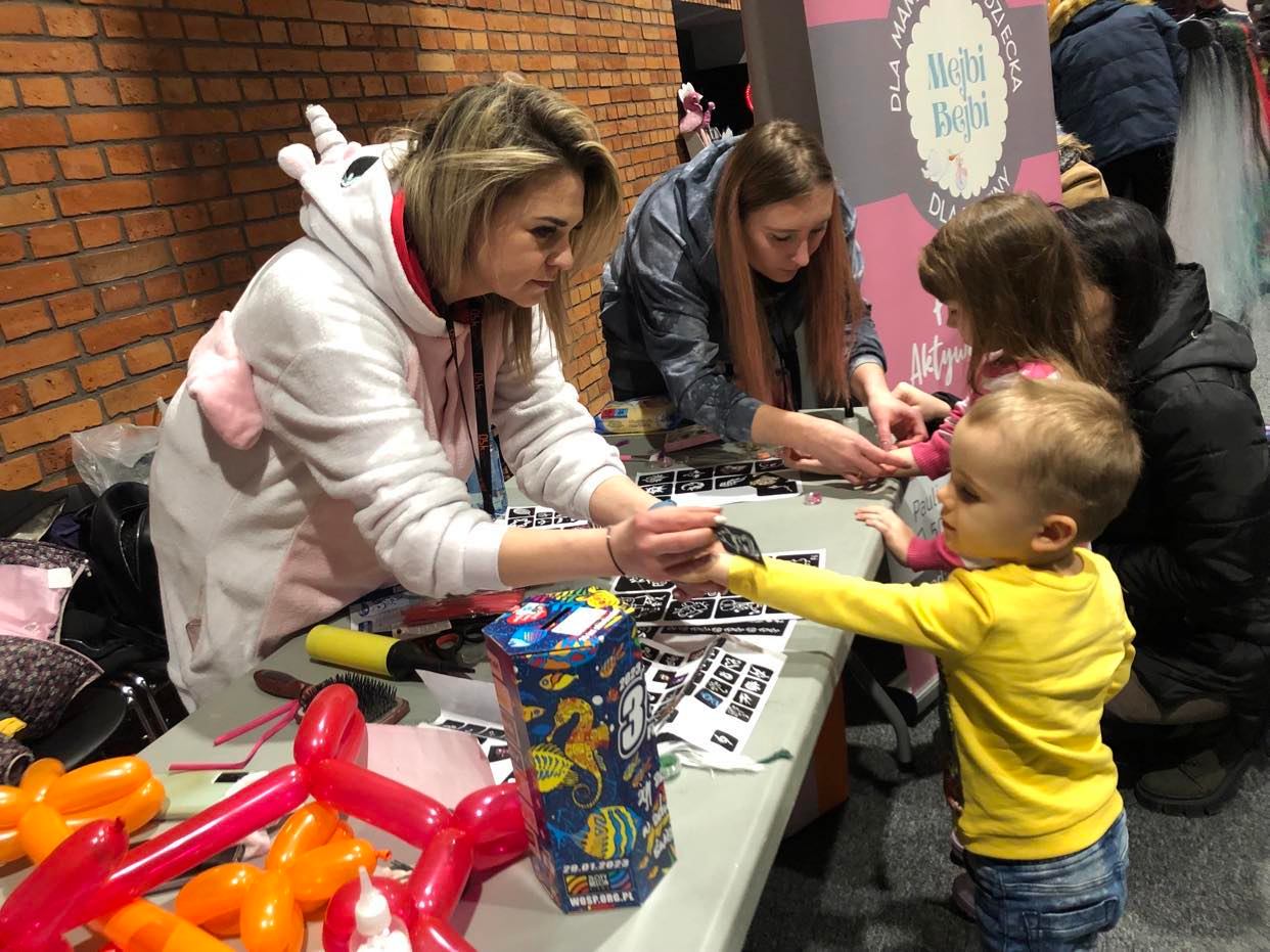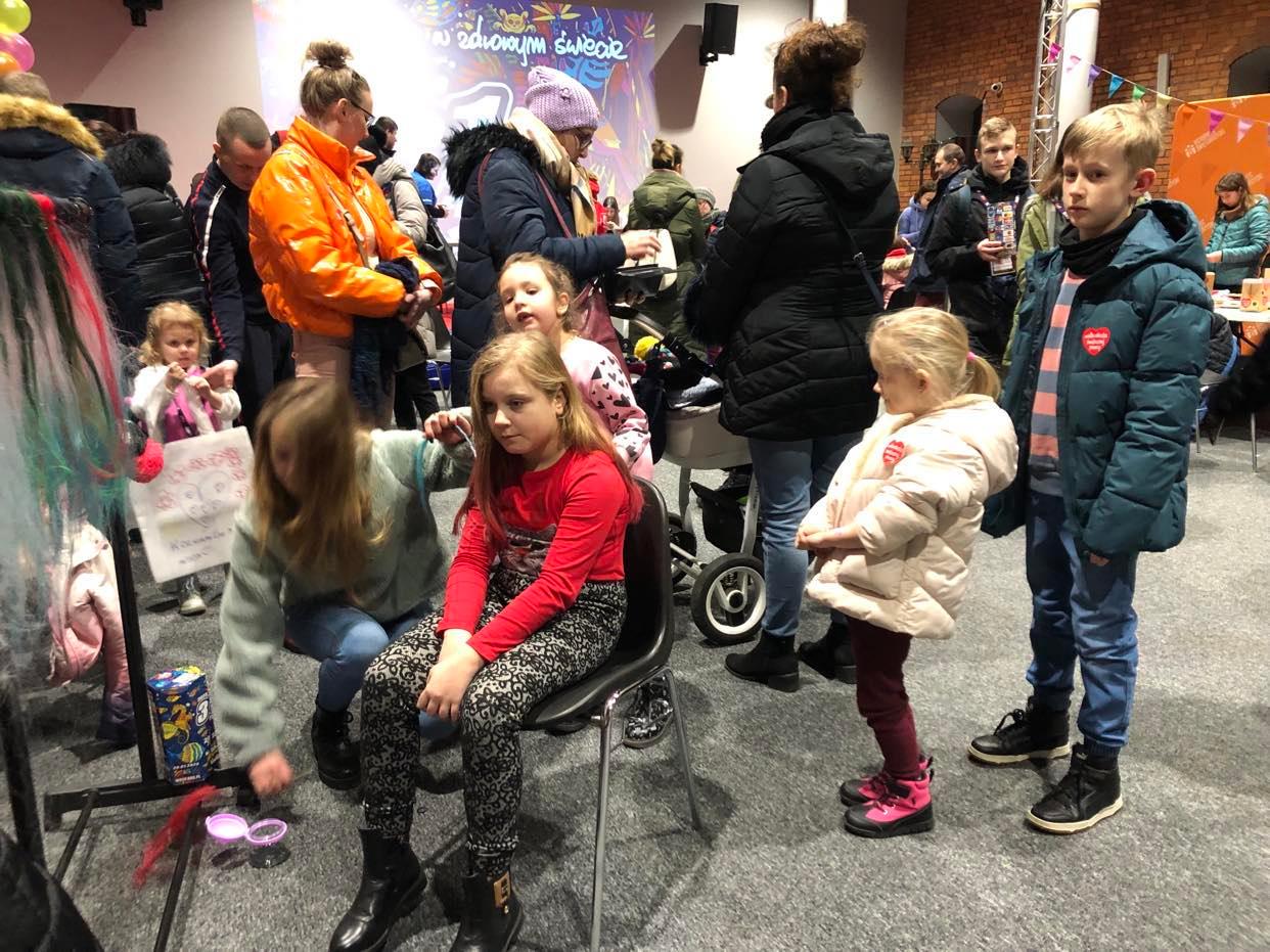 Kiedy jedni bawili się na dziedzińcu WOŚP to inni - przede wszystkim najmłodsi kreatynie upiększali tegoroczny finał. W sali wielofunkcyjnej OBK atrakcje przygotowały: stowarzyszenie Aktywnych Mam, Centrum Wolontariatu MCK, Biuro Wystaw Artystycznych oraz Miejska Biblioteka Publiczna. Dzieci pod okiem instruktorów malowały płócienne torby, robiły bransoletki, zawieszki z logo WOŚP. Można było zrobić zdjęcie w fotobudce, kolorowy tatuaż czy zapleść włosy.