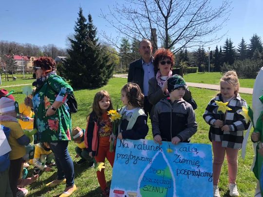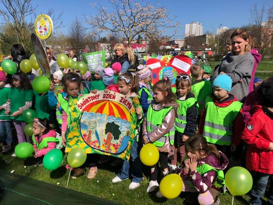 Na zakończenie piątkowego happeningu dzieci przeszły alejkami Parku Miejskiego, niosąc transparenty, plakaty, hasła ekologiczne, kwiaty wykonane ekologicznych materiałów i kolorowe baloniki.