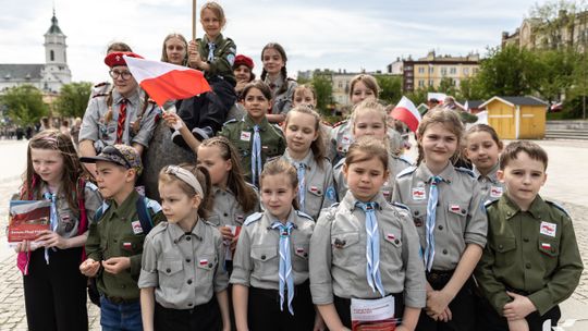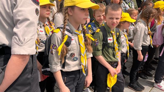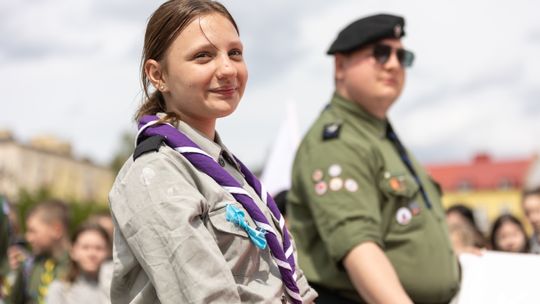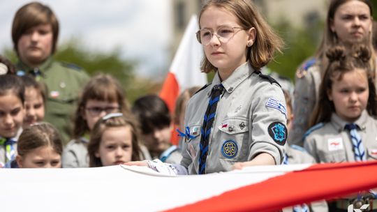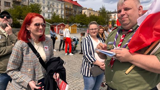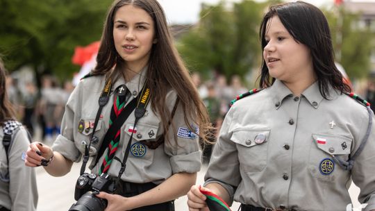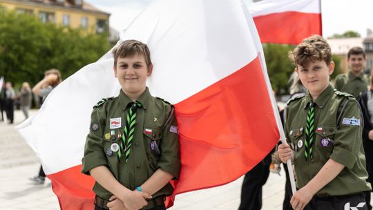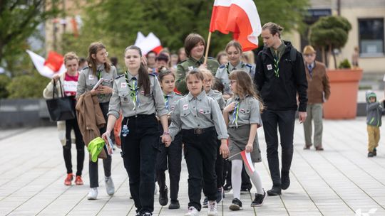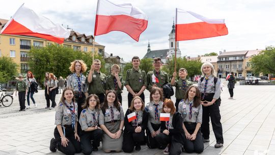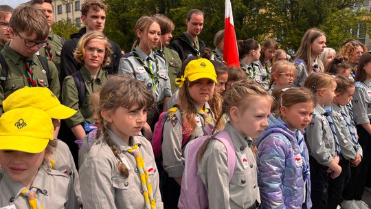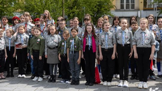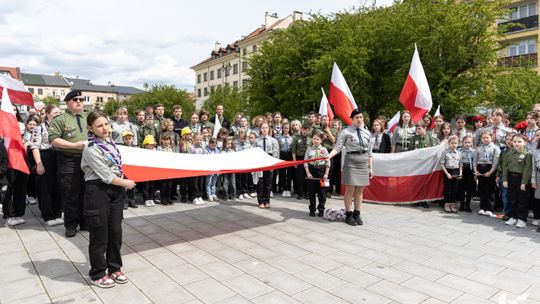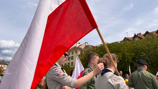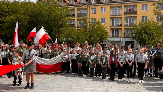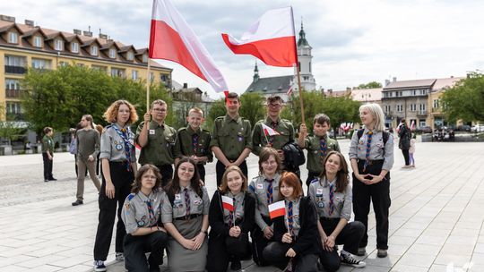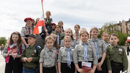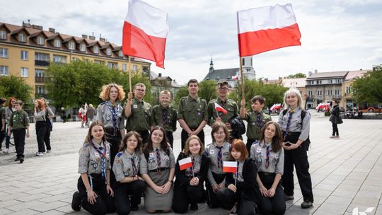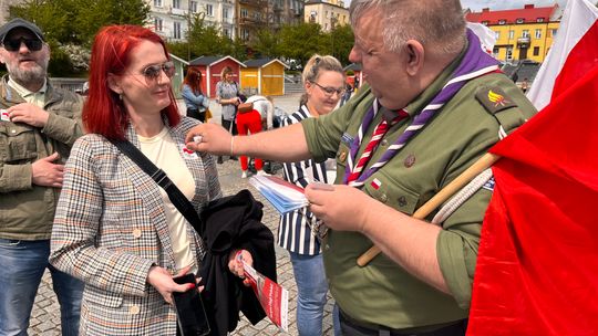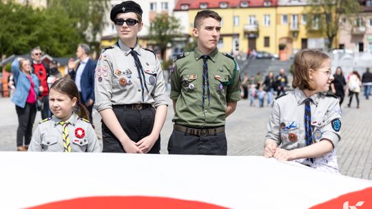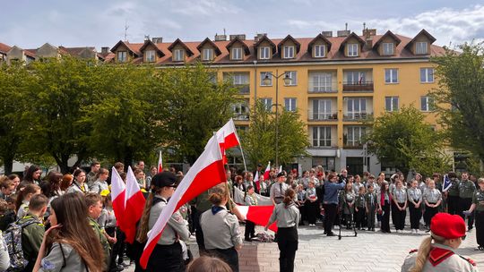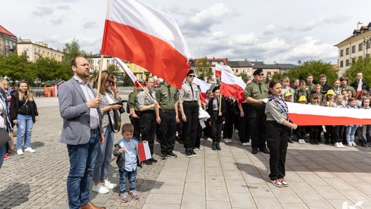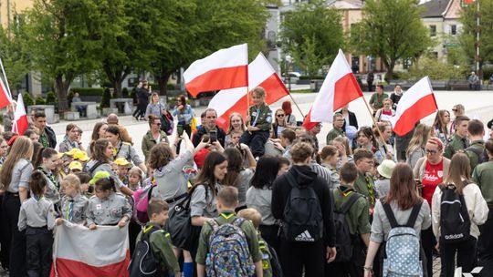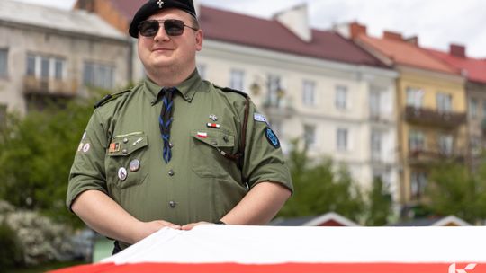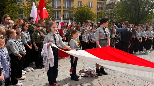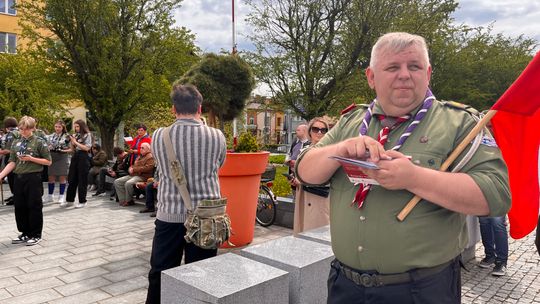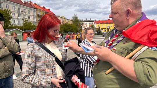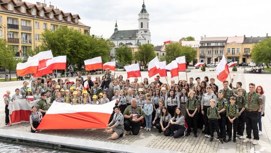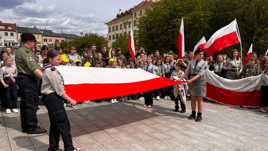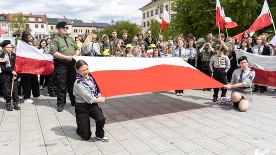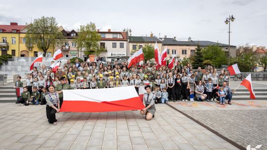 O godzinie 12.00 harcerze odśpiewali hymn państwowy, a obecny na ostrowieckim rynku pan Szymon Lada wyrecytował napisany przez siebie wiersz o biało-czerwonej. Zebrani wysłuchali również harcerskiej gawędy na temat polskiej flagi.