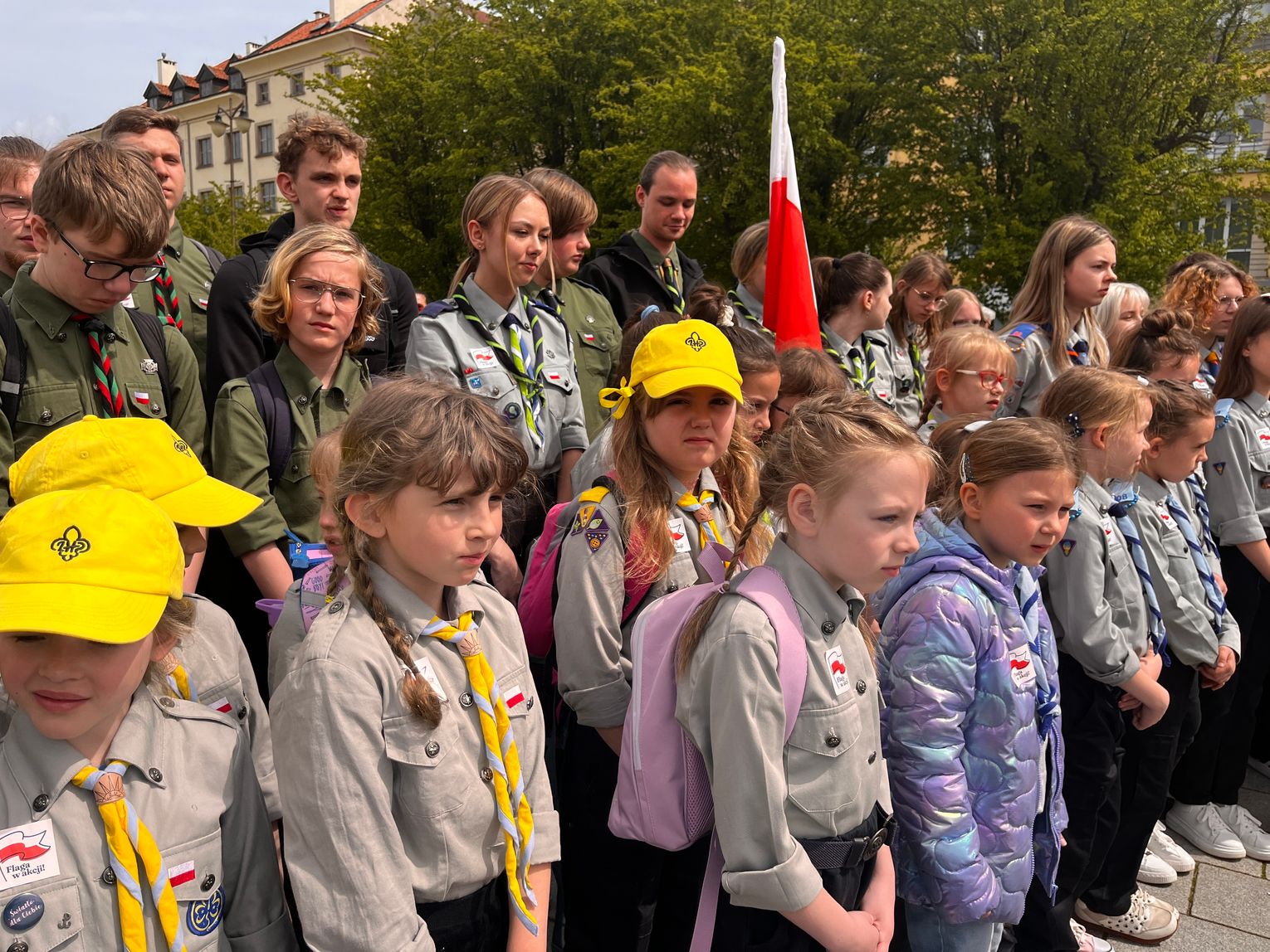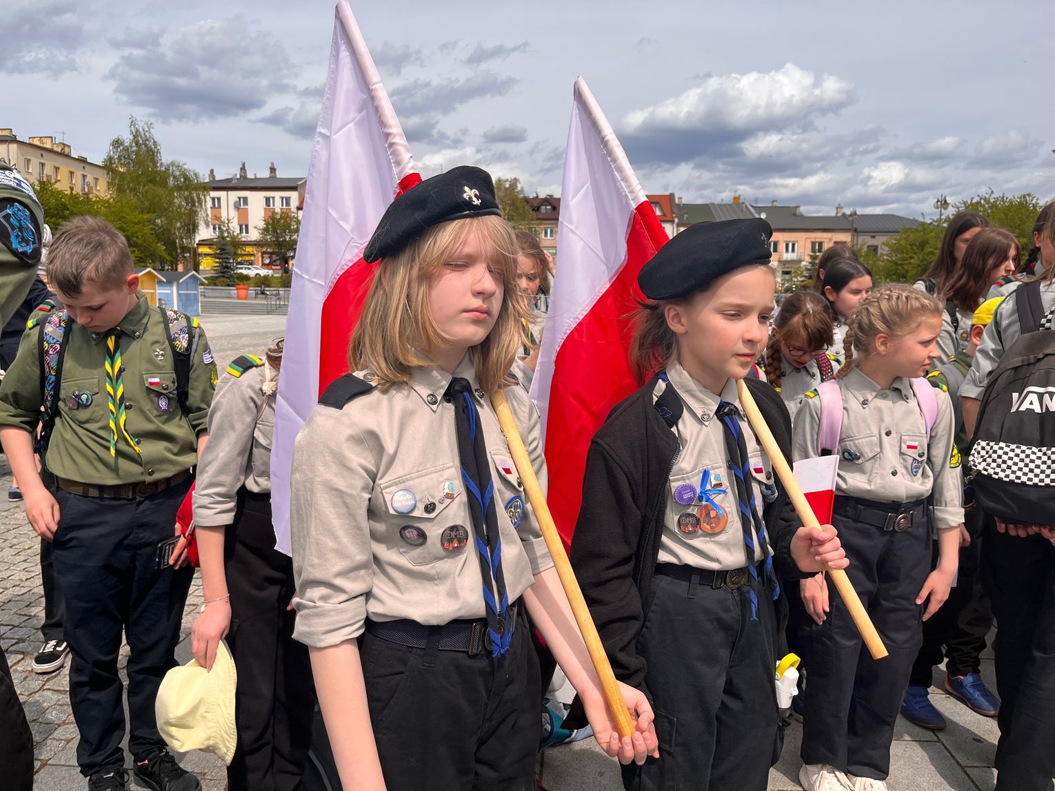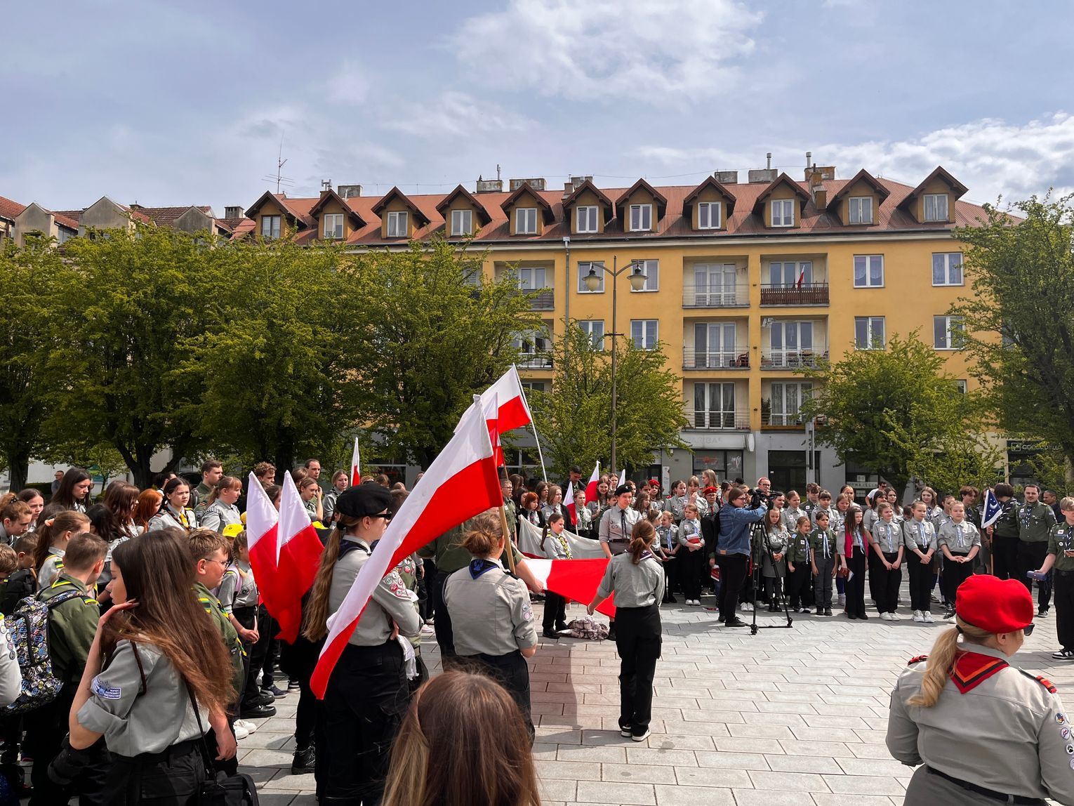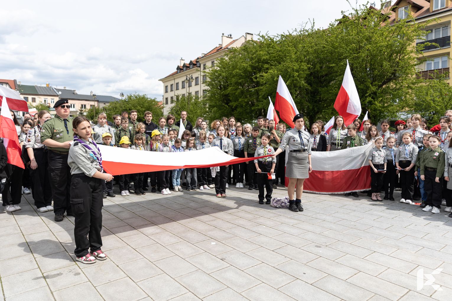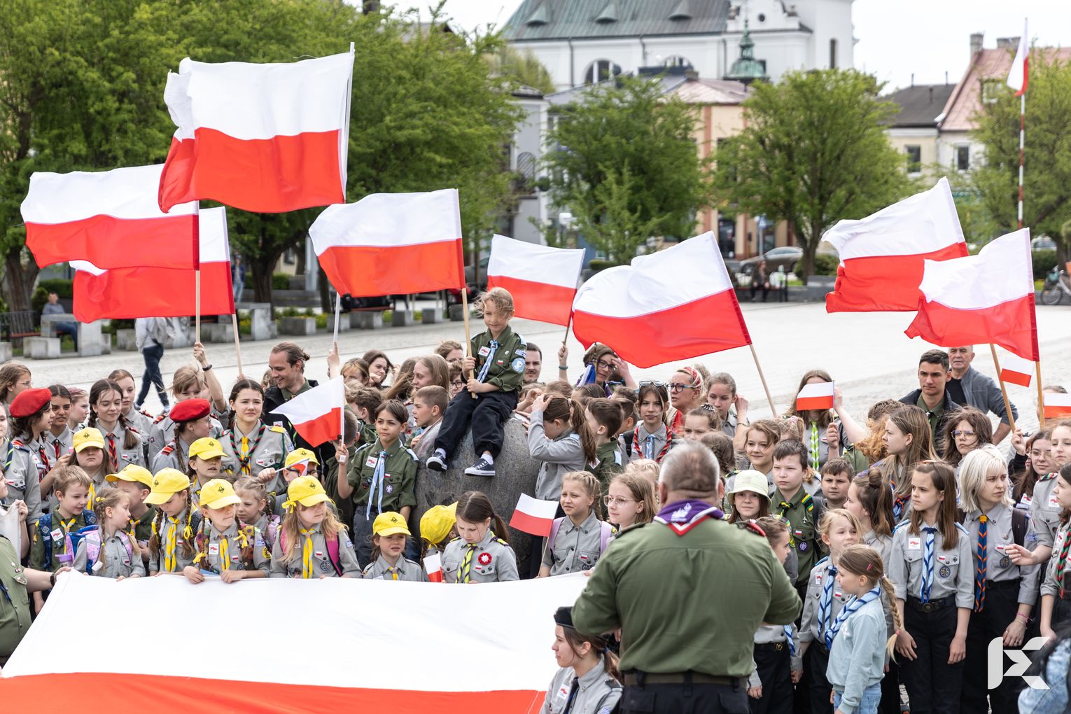 O godzinie 12.00 harcerze odśpiewali hymn państwowy, a obecny na ostrowieckim rynku pan Szymon Lada wyrecytował napisany przez siebie wiersz o biało-czerwonej. Zebrani wysłuchali również harcerskiej gawędy na temat polskiej flagi.