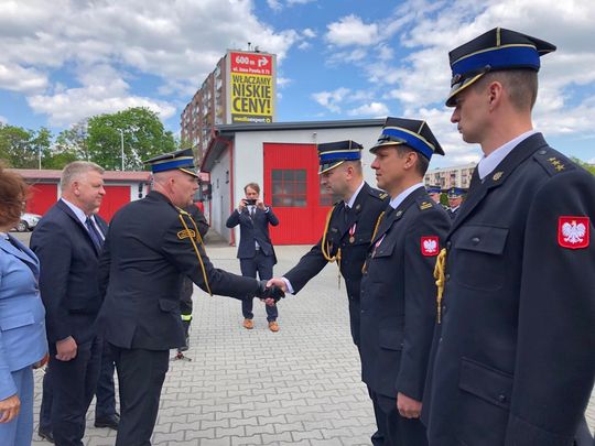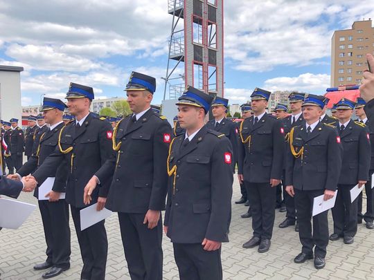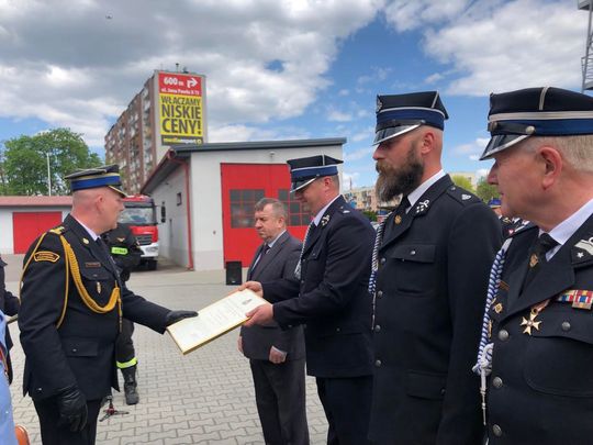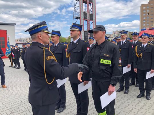 W dniu swojego święta, 29 strażaków odebrało awanse na wyższe stopnie służbowe. 9 osób zostało uhonorowanych medalami "Za zasługi dla pożarnictwa".