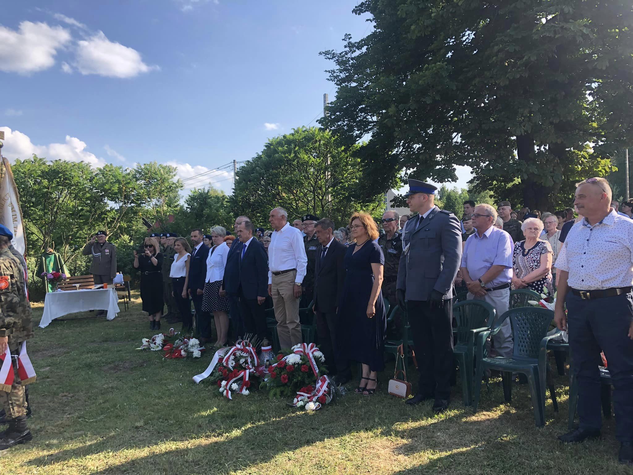 Odsłonięcie pomnika odbyło się w obecności wielu gości. Honorową wartę zaciągnęły poczty sztandarowe szkół i jednostek OSP. W intencji ofiar pacyfikacji odprawiona została polowa msza święta. Przed obeliskiem mieszkańcy wsi zapalili 25 zniczy symbolizujących ofiary niemieckiej zbrodni.