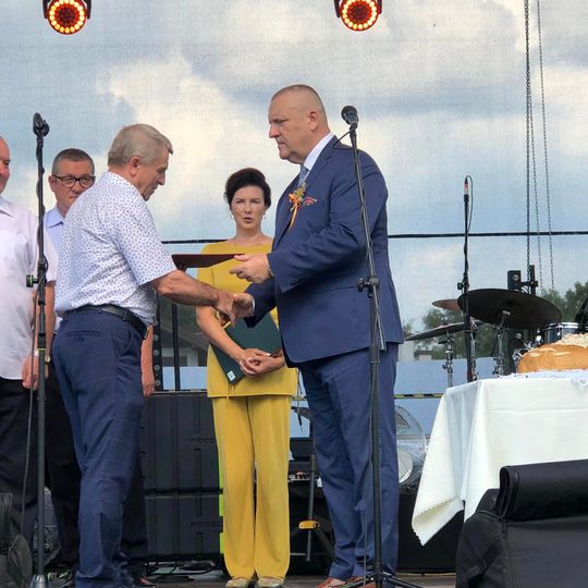 starostów dożynek: Renatę Ćwiklińską i Macieja Gałęzię, przekazywany został na ręce gospodarza gminy.