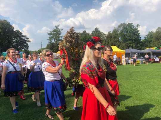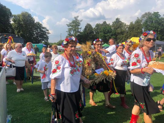 Już na kilka dni przed dożynkami mieszkańcy pracowali nad wieńcami, które w niedzielę opatrzone wizytówkami sołectw zaprezentowano przed sceną. O coś dla ciała zadbały panie z Kół Gospodyń Wiejskich.